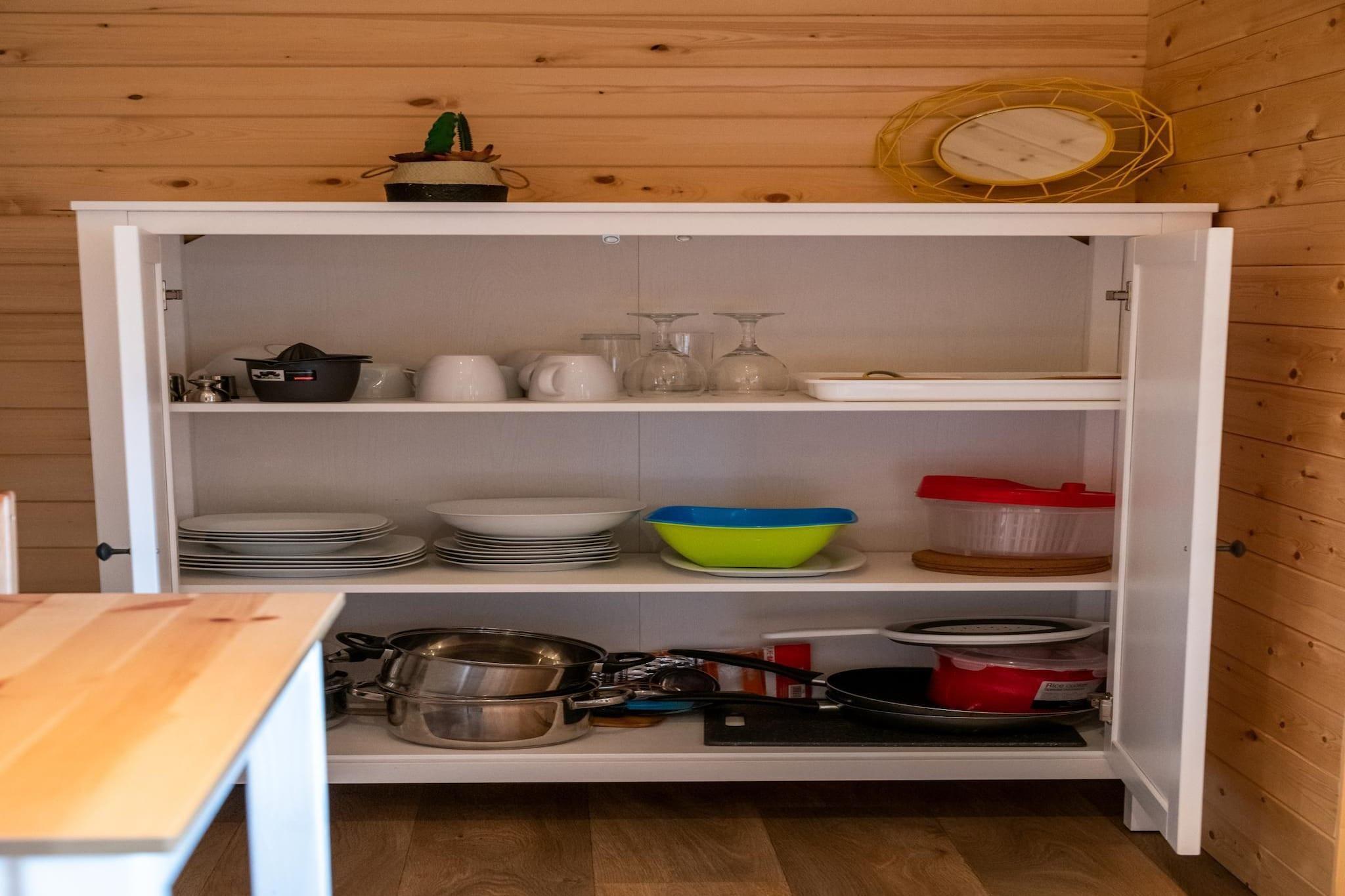 Bottenvåningen: (Öppet kök(vattenkokare, kaffebryggare, mikrovågsugn, kylskåp), Vardags- och sovrum(dubbelsäng, TV(digital)), toalett ) trädgårdsmöbler, parkering, swimmingpool(delas med andra gäster )