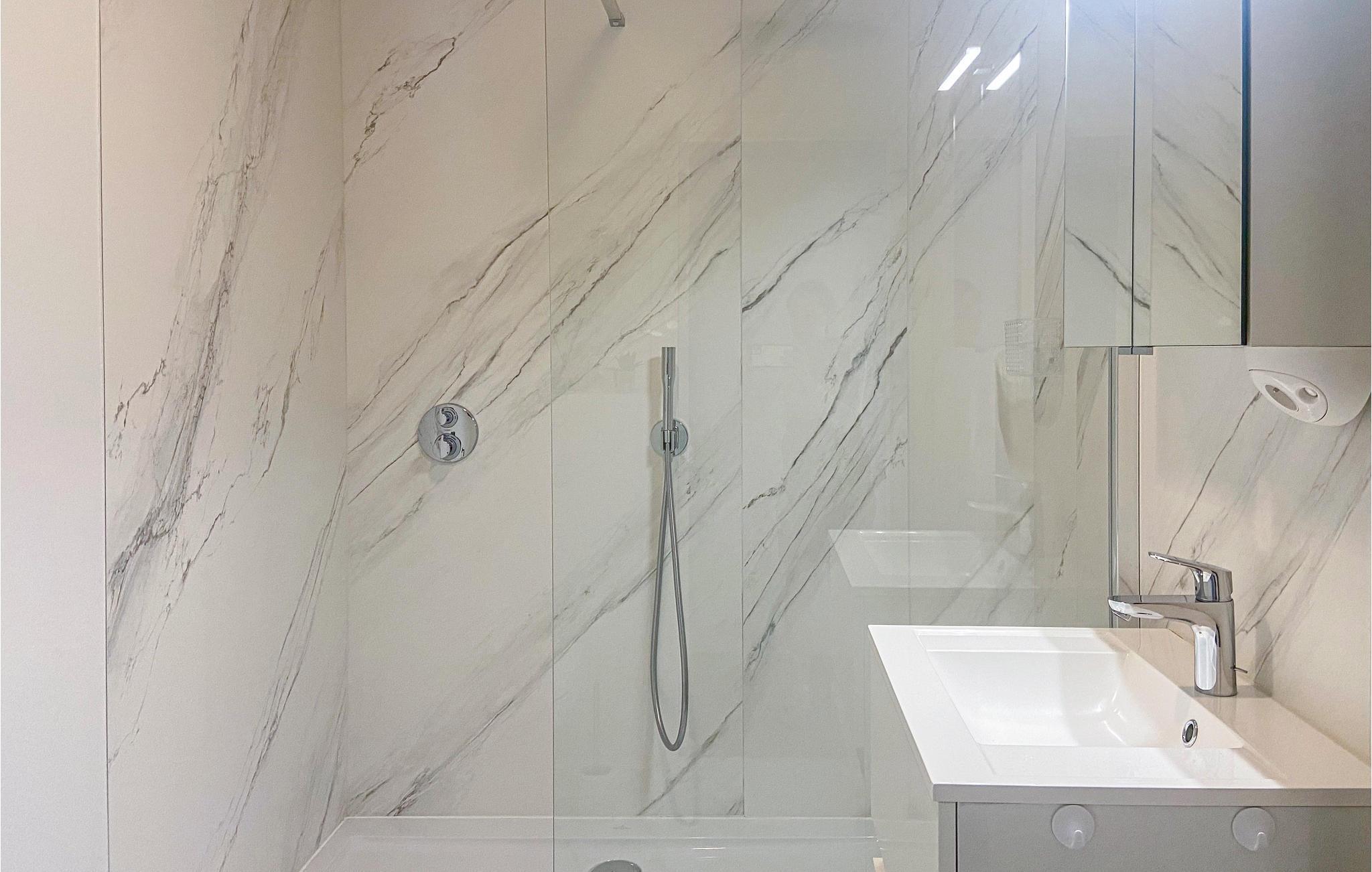 Badrum (nr. 1) - WC: Varmt och kallt vatten. Dusch