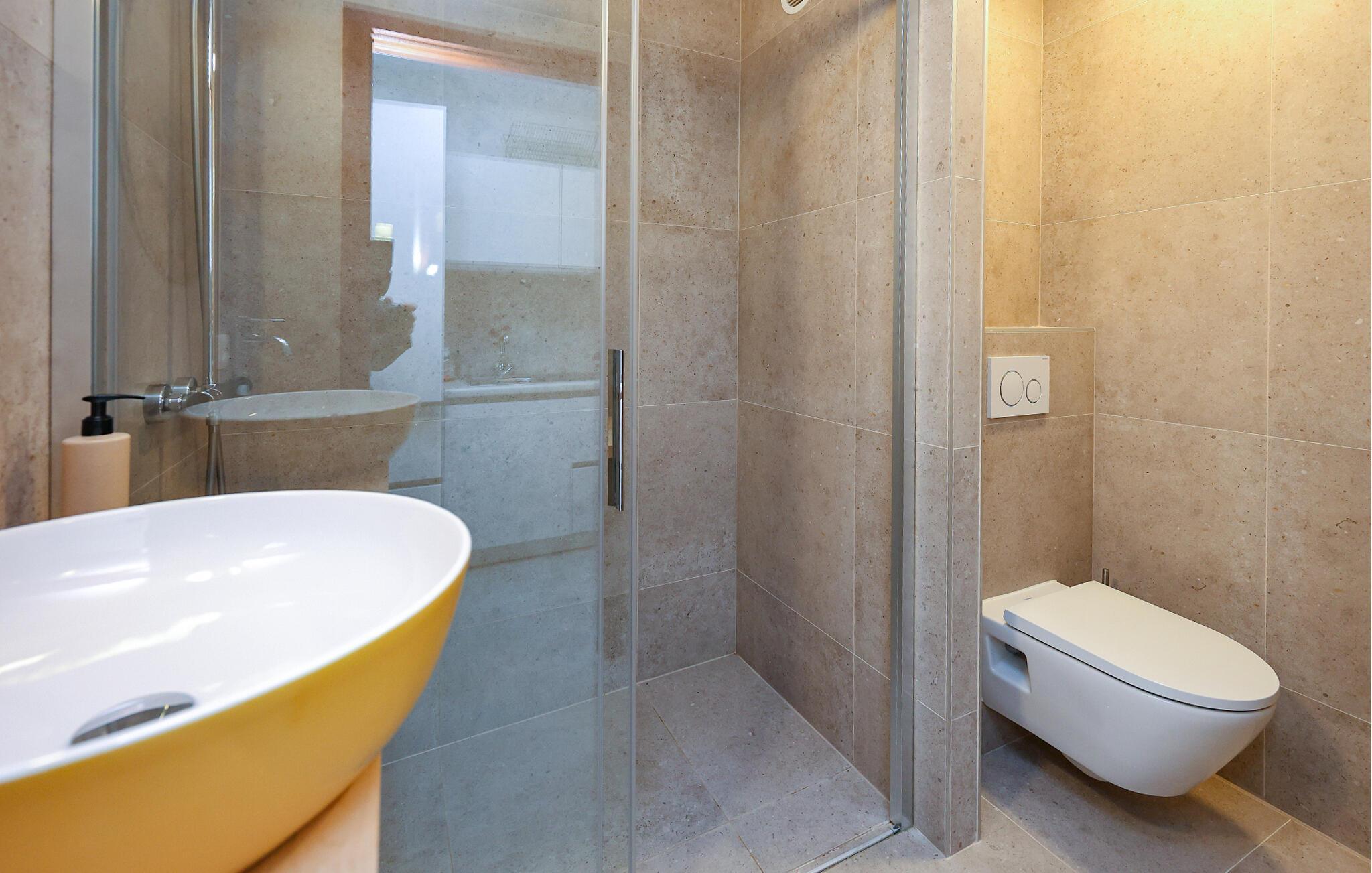 Badrum (nr. 1) - WC: Varmt och kallt vatten. Dusch