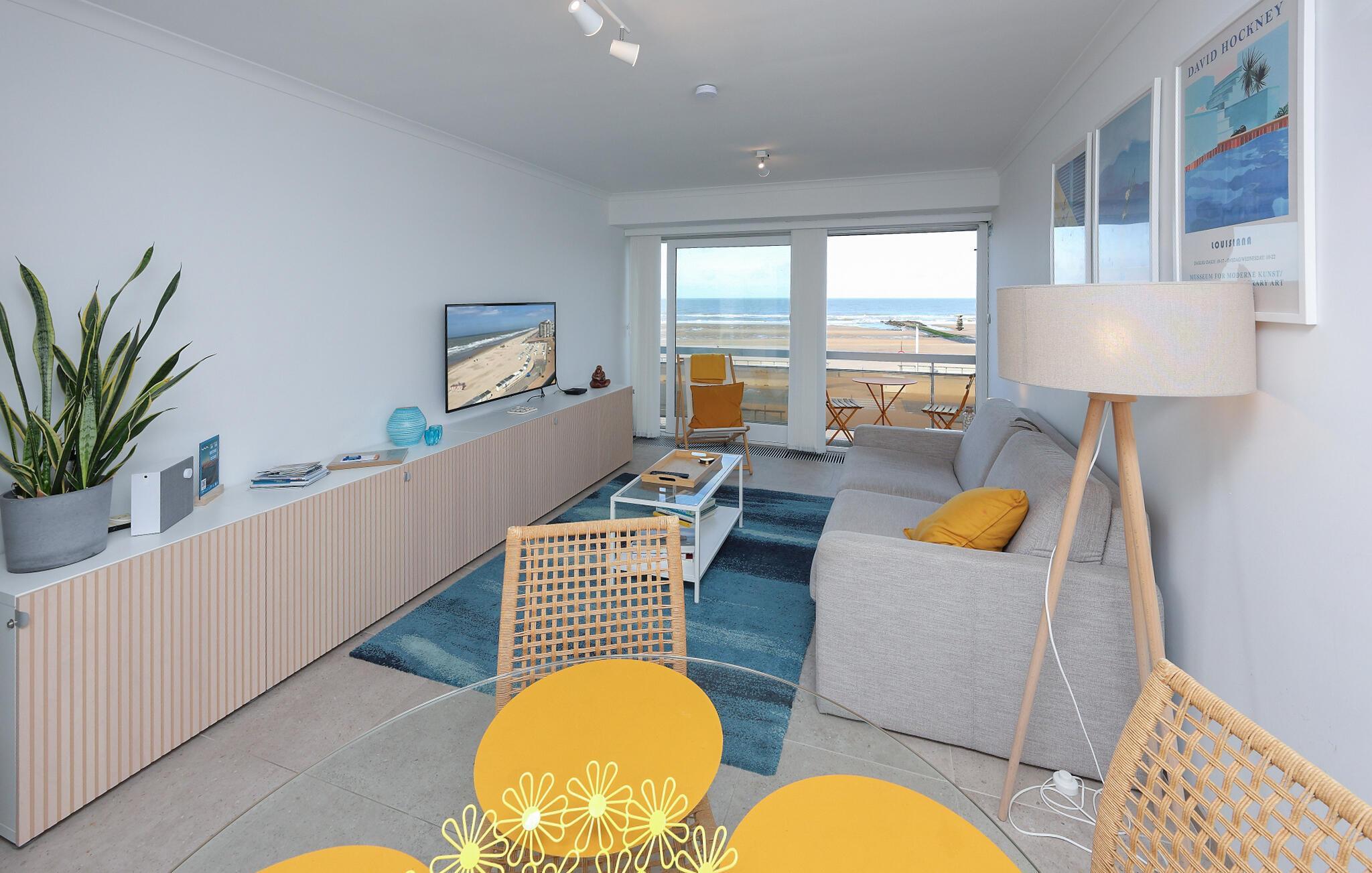 Börja dagen med en hisnande utsikt över havet i denna eleganta semesterlägenhet precis vid sandstranden i Oostende.