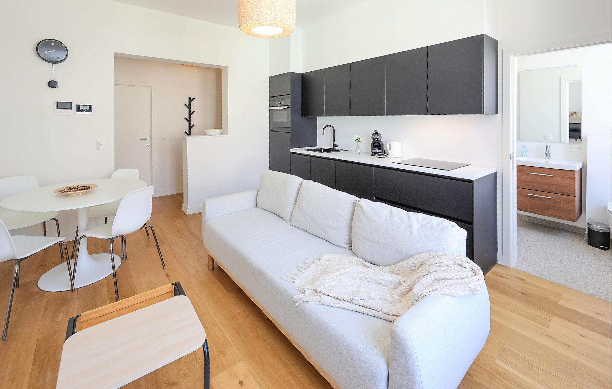 Tillbringa en avkopplande semester i detta praktiskt utformade boende, bara några minuters promenad från havet och många sevärdheter. Koppla av i det bekväma vardagsrummet med TV och mysig soffa. Den angränsande matplatsen är perfekt för gemensamma måltider. Förbered lättare måltider i pentryt och njut av den ljusa atmosfären i din lägenhet.