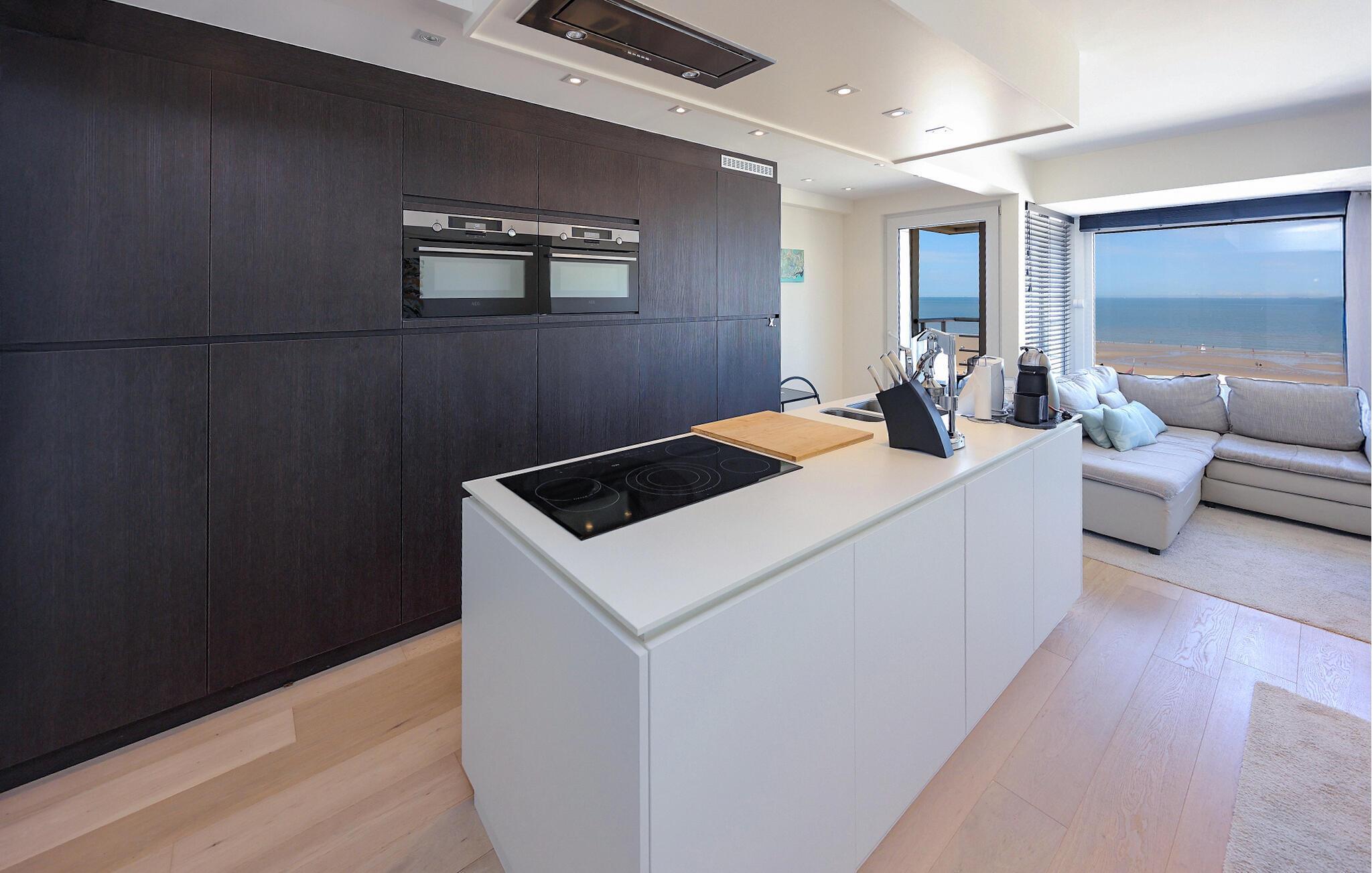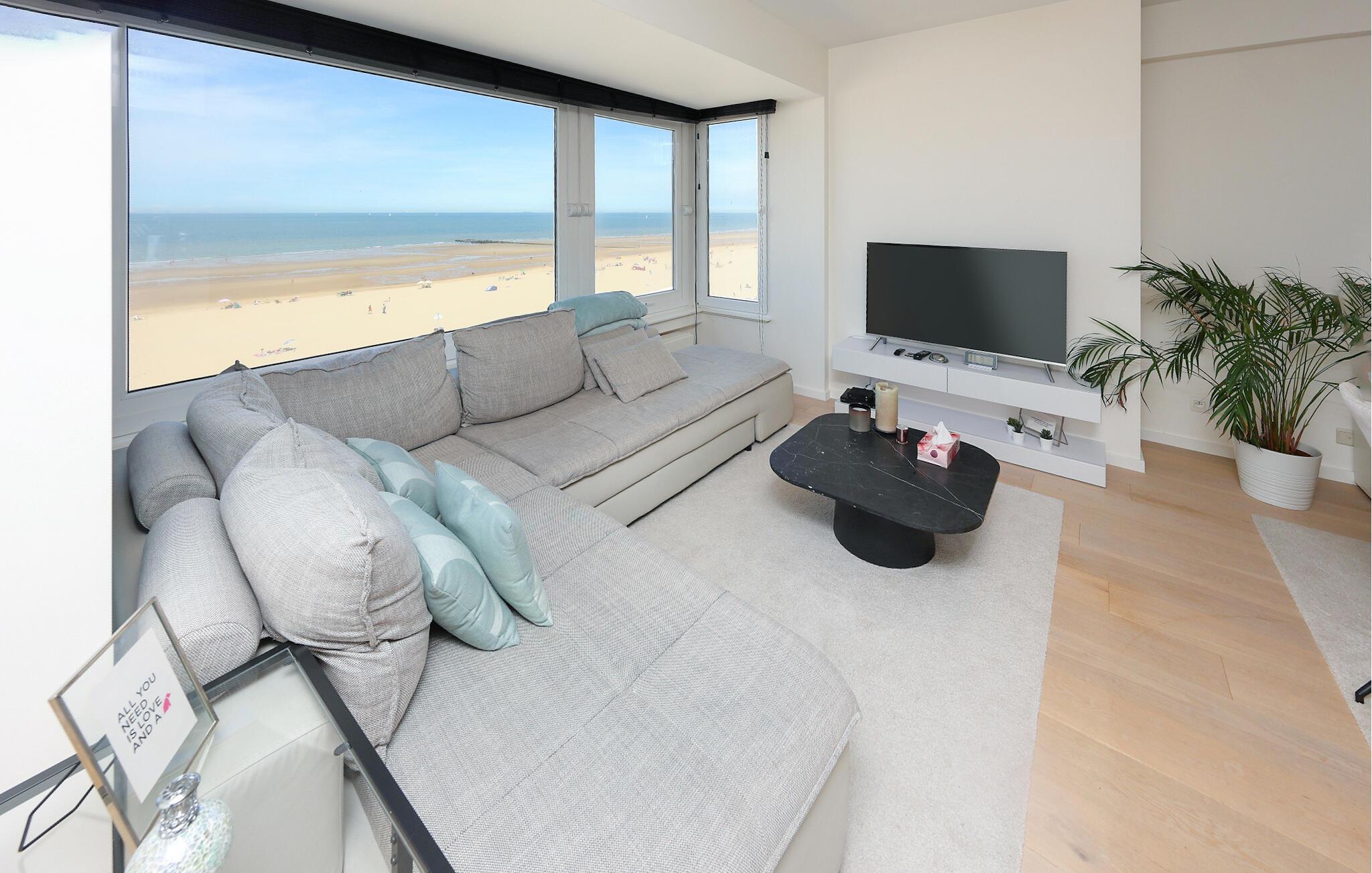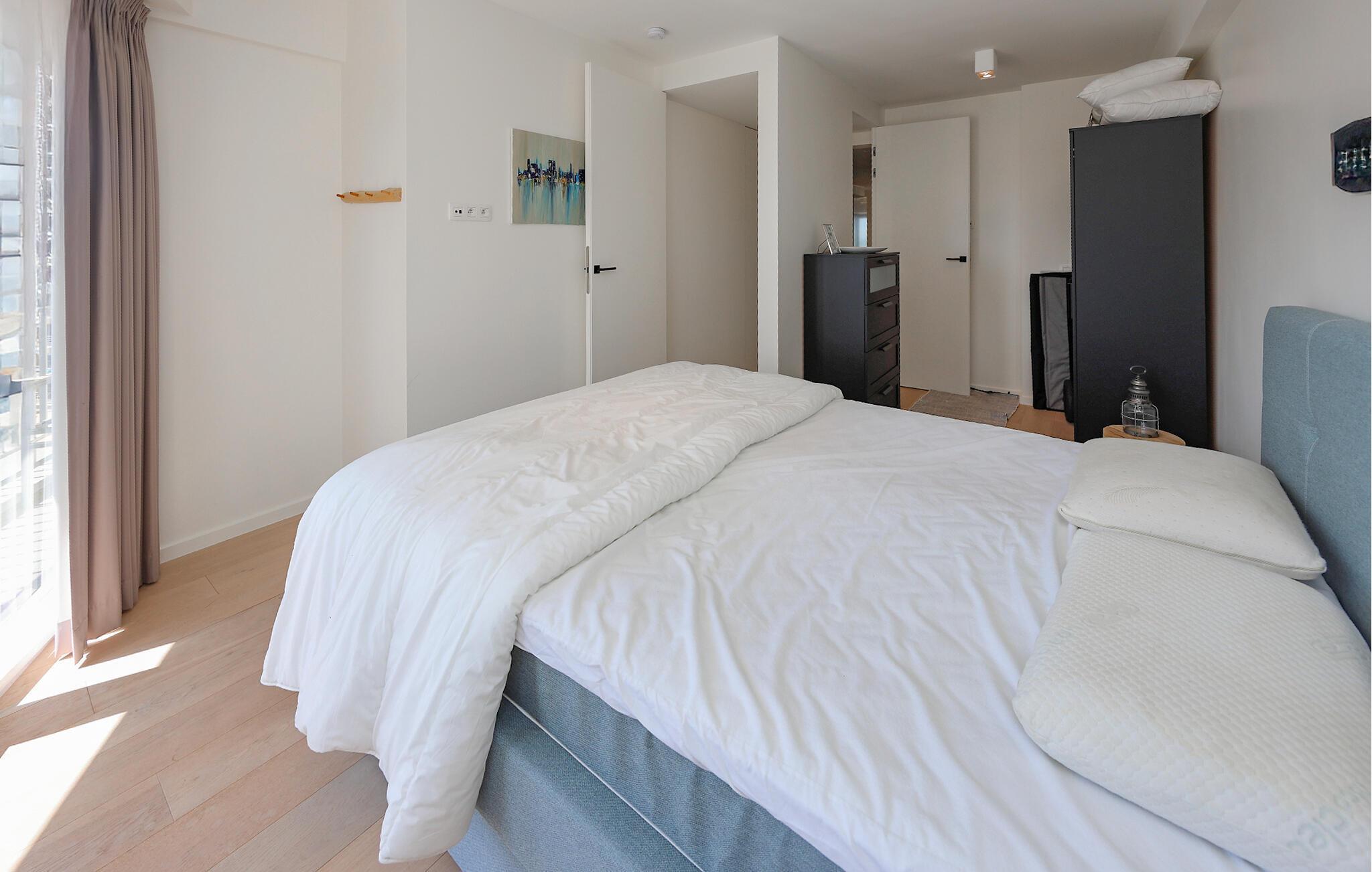 Denna ljusa och moderna semesterlägenhet välkomnar dig med en högkvalitativ och smakfullt möblerad interiör. Här har du en direkt utsikt över stranden medan du gör dig bekväm i soffan med din semesterläsning. Tillaga kulinariska höjdpunkter i köket med öppen planlösning och slå dig ner vid det inbjudande matbordet. Efter en lång dag i den lugnande havsluften kan du streama en film eller koppla av med ett brädspel.
