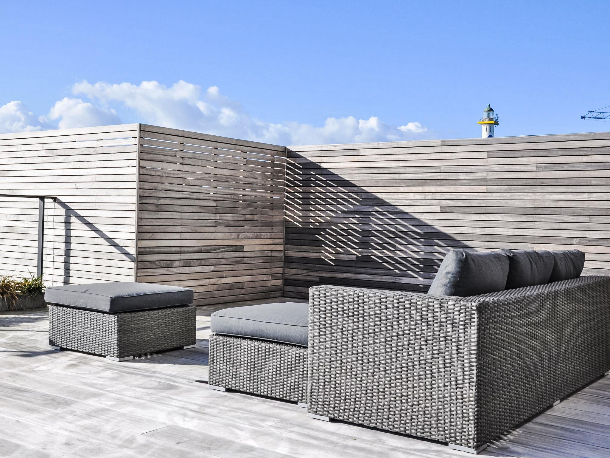 "Havenzicht", 3-room apartment 125 m2 on 6th floor. Modern furnishings: entrance hall with separate WC and gas heating. Living/dining room with dining table, TV, digital TV, international TV channels and hi-fi system. Exit to the terrace. 1 room with 1 x 2 bunk beds (90 cm, length 200 cm). 1 double bedroom with 1 double bed (180 cm, length 200 cm), TV. Open kitchen (dishwasher, 4 ceramic glass hob hotplates, electric coffee machine, combination microwave). Shower, double hand-basin. Large terrace 60 m2. Terrace furniture, sitting area, box-room. Panoramic view of the sea, the port and the city. Facilities: washing machine, hair dryer. Internet (WiFi, free). Garage space n 10 on the property. Please note: non-smoking house. Smoke alarm, fire extinguisher. Project in full development. Be one of the first guests to enjoy this unique location at a low price!