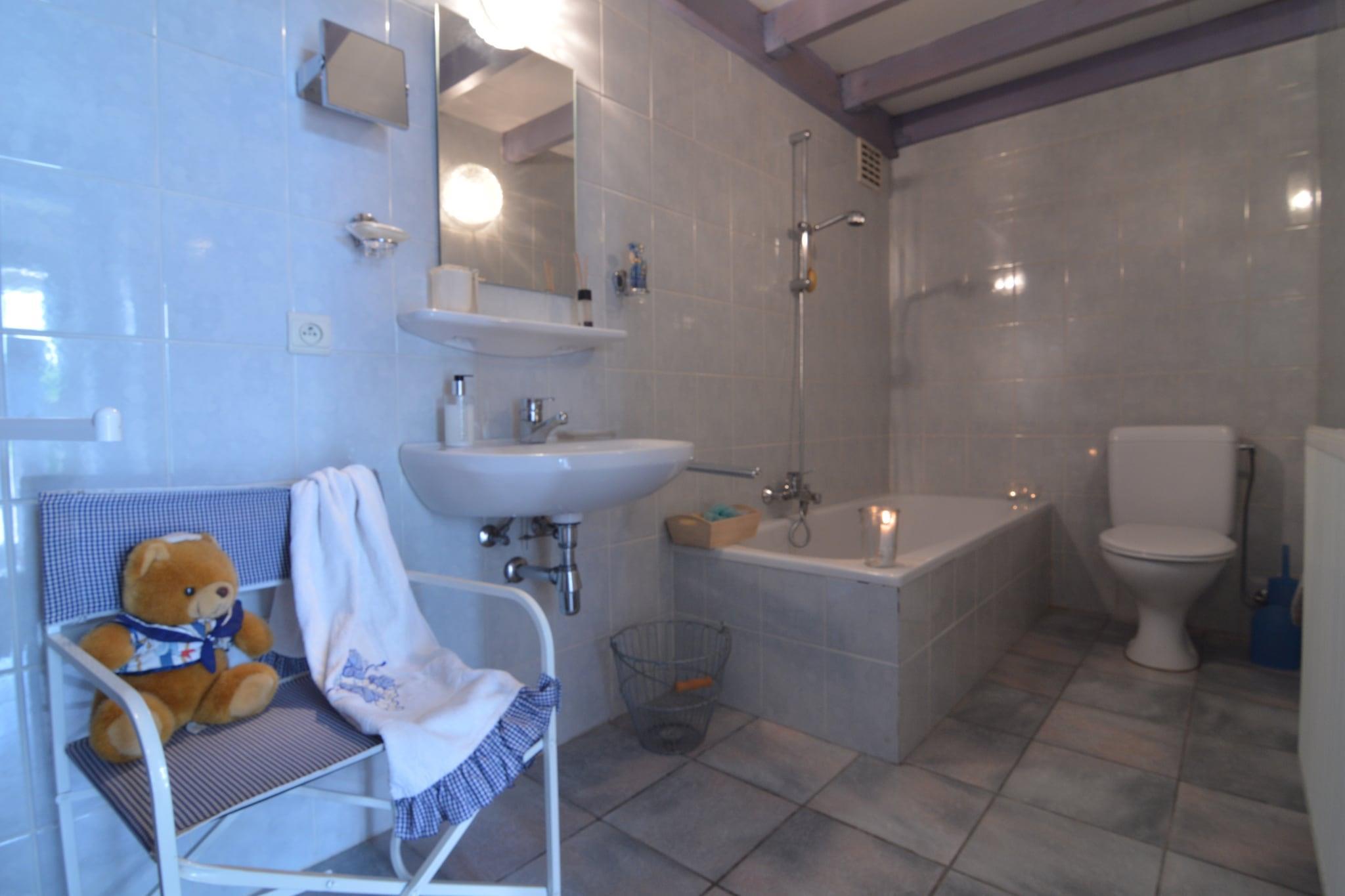 Detta mysiga semesterhus i Oostkamp, Västflandern, välkomnar upp till 6 gäster, perfekt för familjer eller små grupper som söker komfort och bekvämlighet. Bottenvåningen har ett välutrustat kök med kaffebryggare, ugn, mikrovågsugn, diskmaskin, kylskåp och tvättmaskin. Det rymliga vardagsrummet och matsalen har en dubbel bäddsoffa, TV, matbord och stereo. Ett badrum med badkar och dusch, handfat och toalett kompletterar golvet. På övervåningen innehåller sovrummet ett genomgångsrum med en dubbelsäng och ett andra sovrum med två enkelsängar och en barnsäng, vilket ger flexibla sovmöjligheter. Huset har också en terrass och trädgård möblerad för att koppla av utomhus, plus en grill för trevliga måltider. Beläget bara 1 km från centrum och allmänna förnödenheter, med enkel tillgång till tennisbanor, skogar, sjöar och vattensporter, plus kollektivtrafik och bekvämligheter i närheten. Parkering och barnsängar finns, vilket gör detta till en idealisk bas för att utforska den vackra regionen.