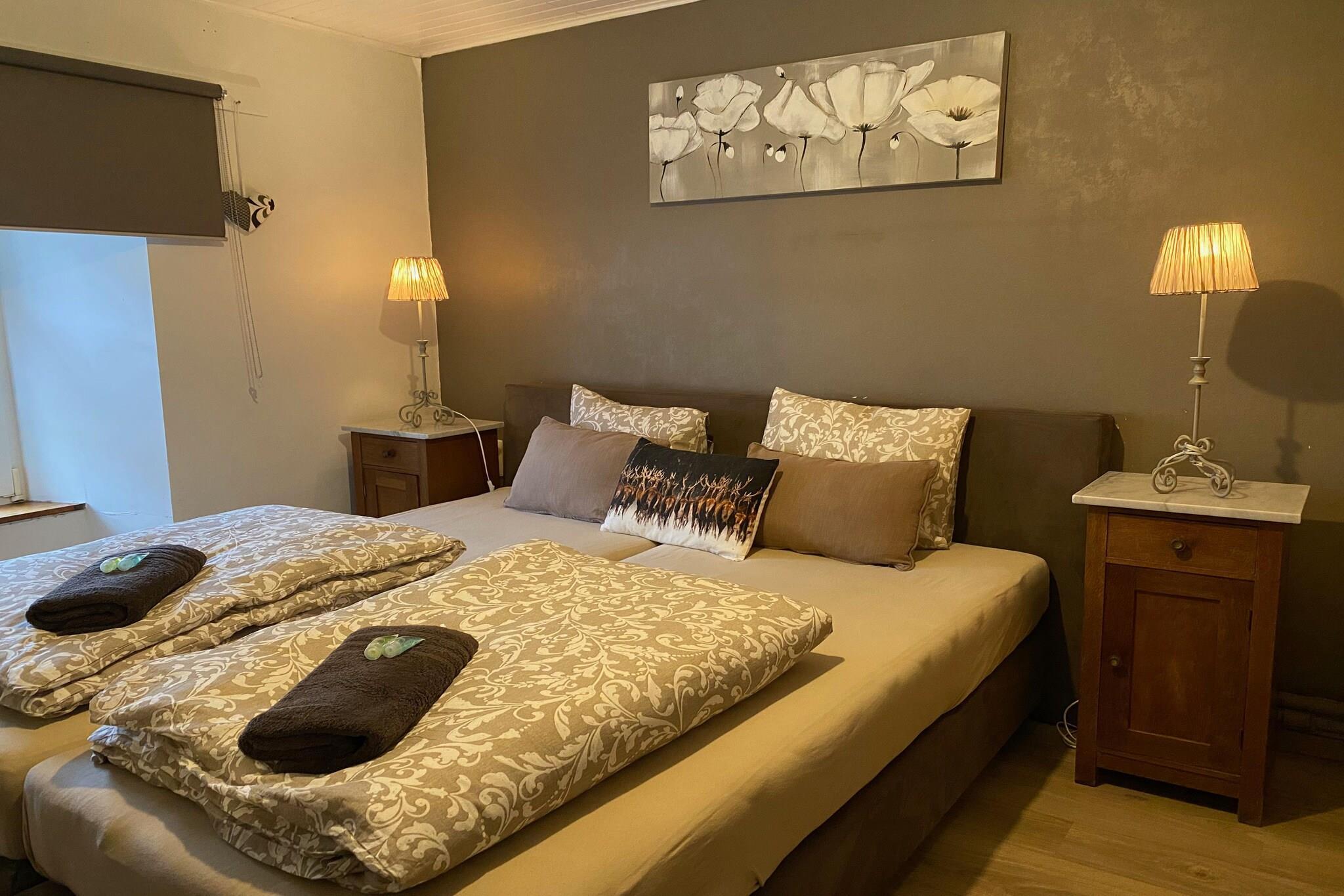Denna rymliga villa med 4 sovrum i Burg-Reuland är perfekt för en avkopplande semester med vänner eller familj. Huset rymmer upp till 8 gäster och har en mysig inredning med en braskamin och moderna bekvämligheter, inklusive två nyrenoverade badrum och en infraröd bastu. Bara 30 meter från villan har gästerna tillgång till en privat 1000 m² stor trädgård med utomhusbastu, bubbelpool, boulebana, grillplats, picknickområde och en lekplats, perfekt för både avkoppling och nöje. Vinden erbjuder underhållning inomhus med fotbollsspel och biljardbord. Inbäddat nära gränserna mellan Tyskland och Luxemburg, är denna plats perfekt för gränsöverskridande dagsutflykter. Naturälskare kommer att njuta av närliggande vandring och cykling i naturreservatet Südeifel och de höga kärren. Slottet Reuland är också värt ett besök, och restauranger ligger bara 500 meter bort. Oavsett om du kopplar av i bastun, badar i bubbelpoolen eller njuter av en grillfest på terrassen, erbjuder denna villa en underbar blandning av lugn, komfort och aktivitet.
