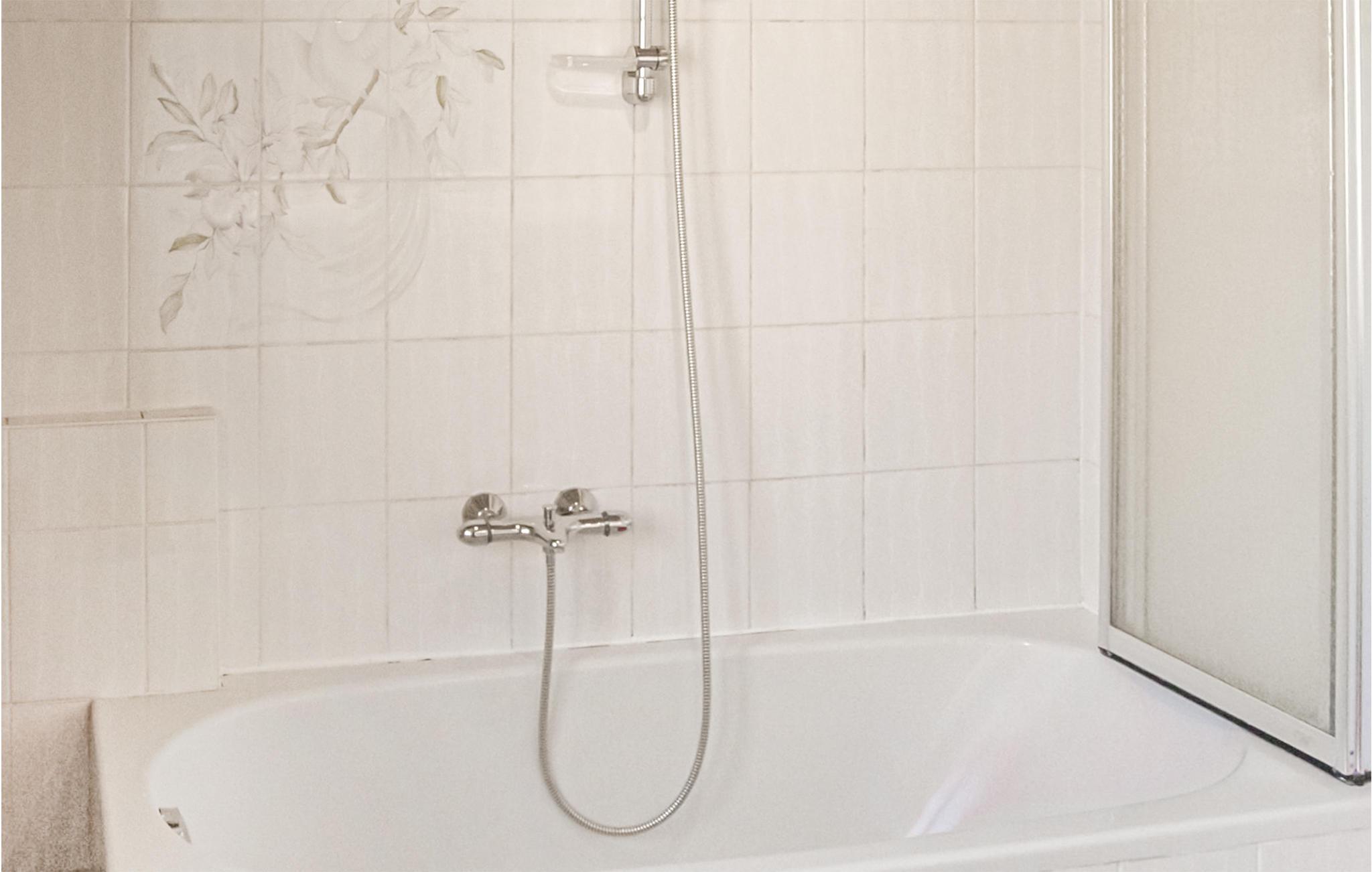 Badrum (nr. 1) - WC: Varmt och kallt vatten. Dusch och badkar