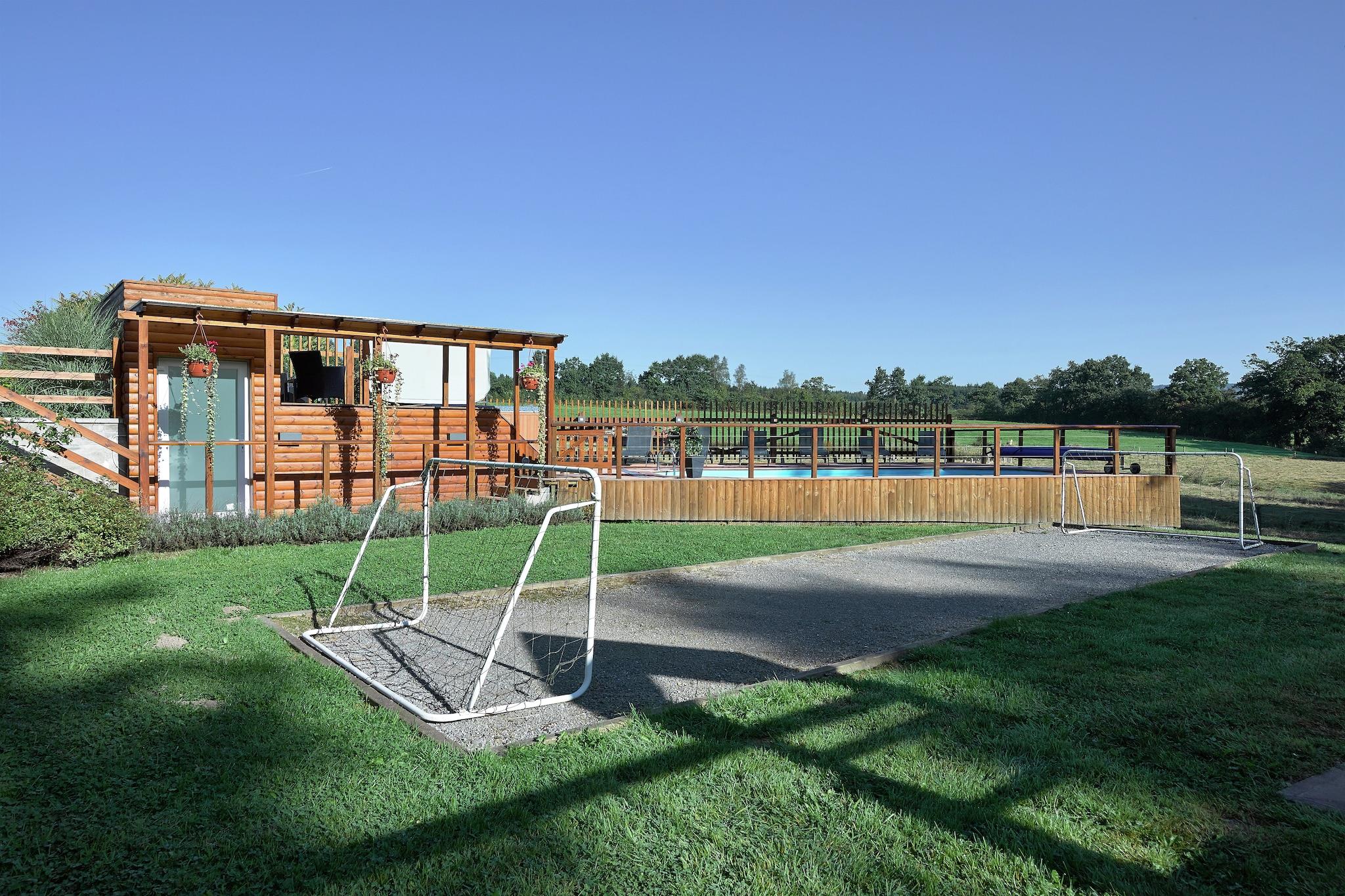 Detta är ett härligt stort semesterhus i Stoumont Ardennes, har 5 sovrum och kan få en grupp på upp till 9 personer att känna sig som hemma. Huset har ett trevligt relaxrum med bastu vilket gör det perfekt för en lång familjesemester. Med skogen, knappt 100 m bort, ger huset möjlighet till många naturvandringar i vildmarken. På kvällarna kan du ge dig ut i stadens centrum, 500 m bort, eller njuta av kulinariska alternativ som erbjuds av restaurangerna, 6 km bort. Du kan också njuta av att laga mat i det välutrustade köket och lagra det från förnödenheter från en lanthandel 6 km bort. Det finns många vandrings- och cykelleder som börjar här. Detta semesterhus ligger i ett perfekt, lugnt läge nära Stoumont och Coos vattenfall. Från poolen, bubbelbadet och trädgården kan du njuta av en panoramautsikt över det kuperade landskapet.