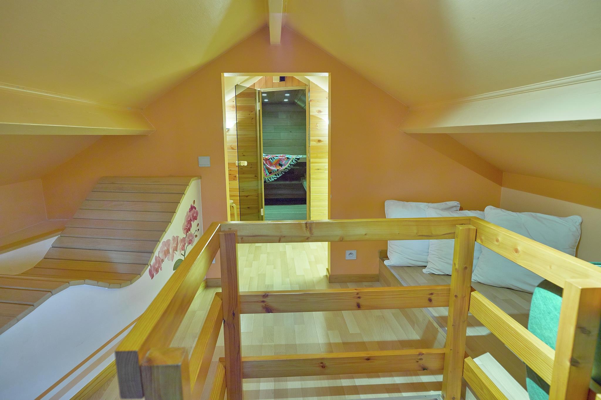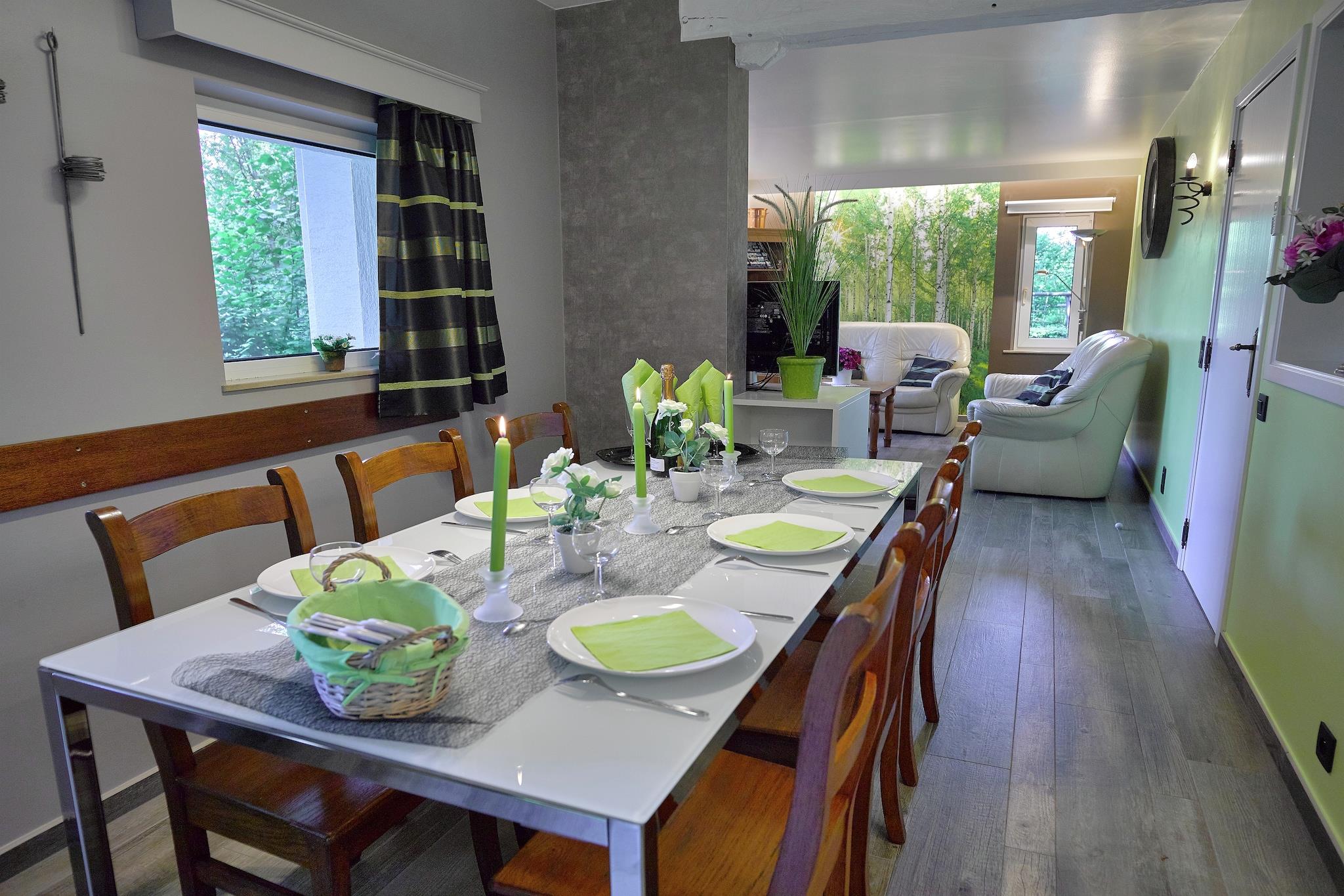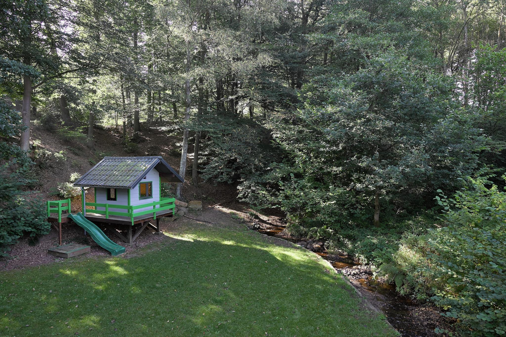 Detta vackra fritidshus med bastu ligger vid kanten av en skog med en grund ström. Du är i det vackra området Stoumont och Coo-vattenfallen med sina många panoramaer. Vardagsrummet har ett trevligt sittområde som utstrålar en varm känsla med en härlig gammal eldstad. Här hittar du också matsalen med matbord och glasskjutdörrar som leder till trädgården, vilket ger mycket ljus. Om du vill slappna av, kan du gå till relaxavdelningen med bastu och solstolar. På orten är det s en trähut och en gunga för barnen. Vidare finns det en terrass med grill, mot söder och en täckt andra terrass nära strömmen. Rahier-byn ligger 500 meter bort och Stoumont 6 kilometer. Du hittar underbara vandrings- och cykelleder som börjar i huset. Regionen erbjuder också många aktiviteter och attraktioner, inklusive Coo (vattenfall, stollyftning, kajakpaddling, PlopsaCoo) Sunparks i Vielsalm, Stavelot (kloster, bilmuseum), Spa (termiska bad, kasino, golf). För vintersportentusiaster finns det längdskidor och skidbackar i regionen. Våra semesterhus är särskilt möblerade för att rymma familjer.