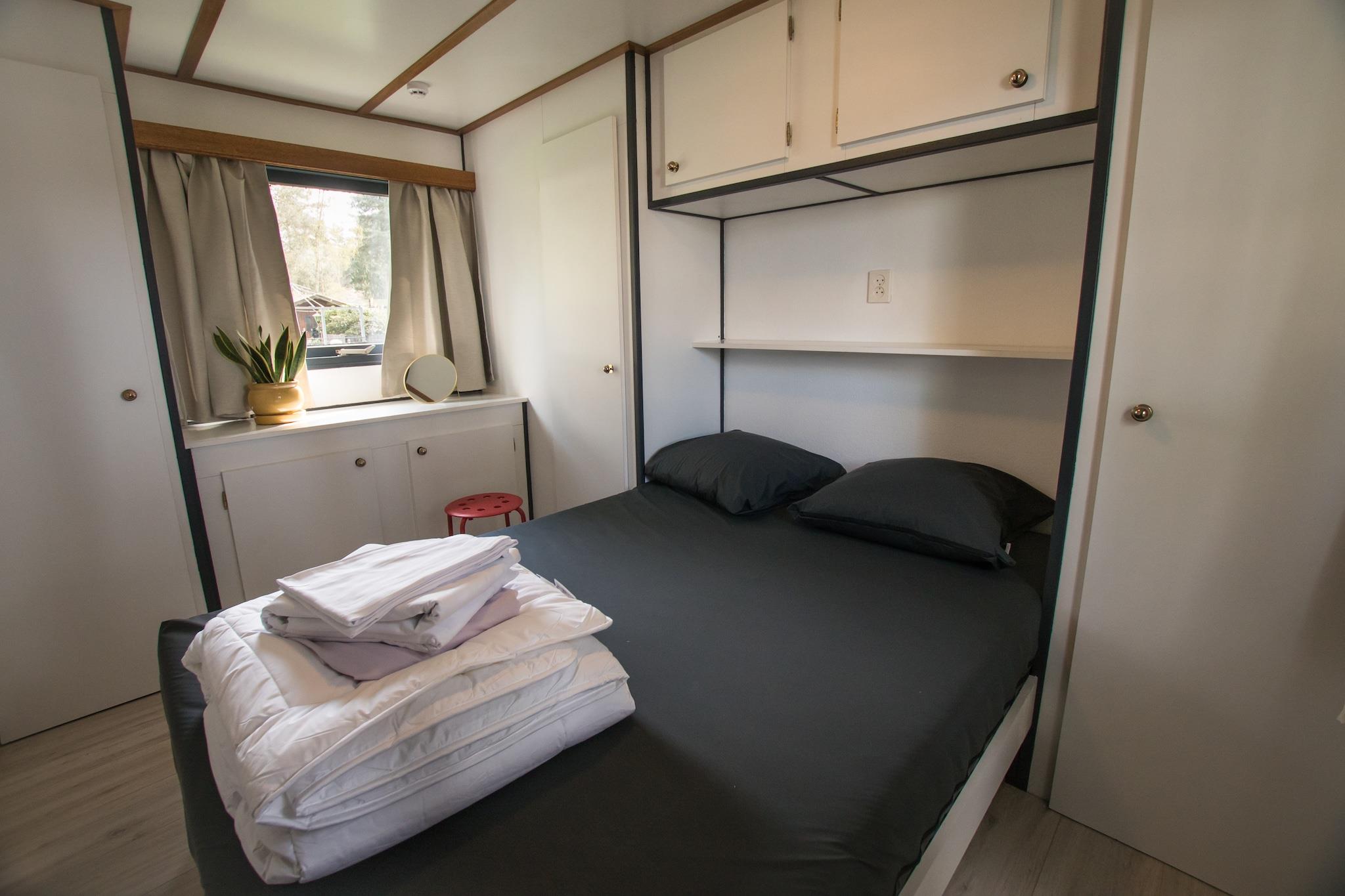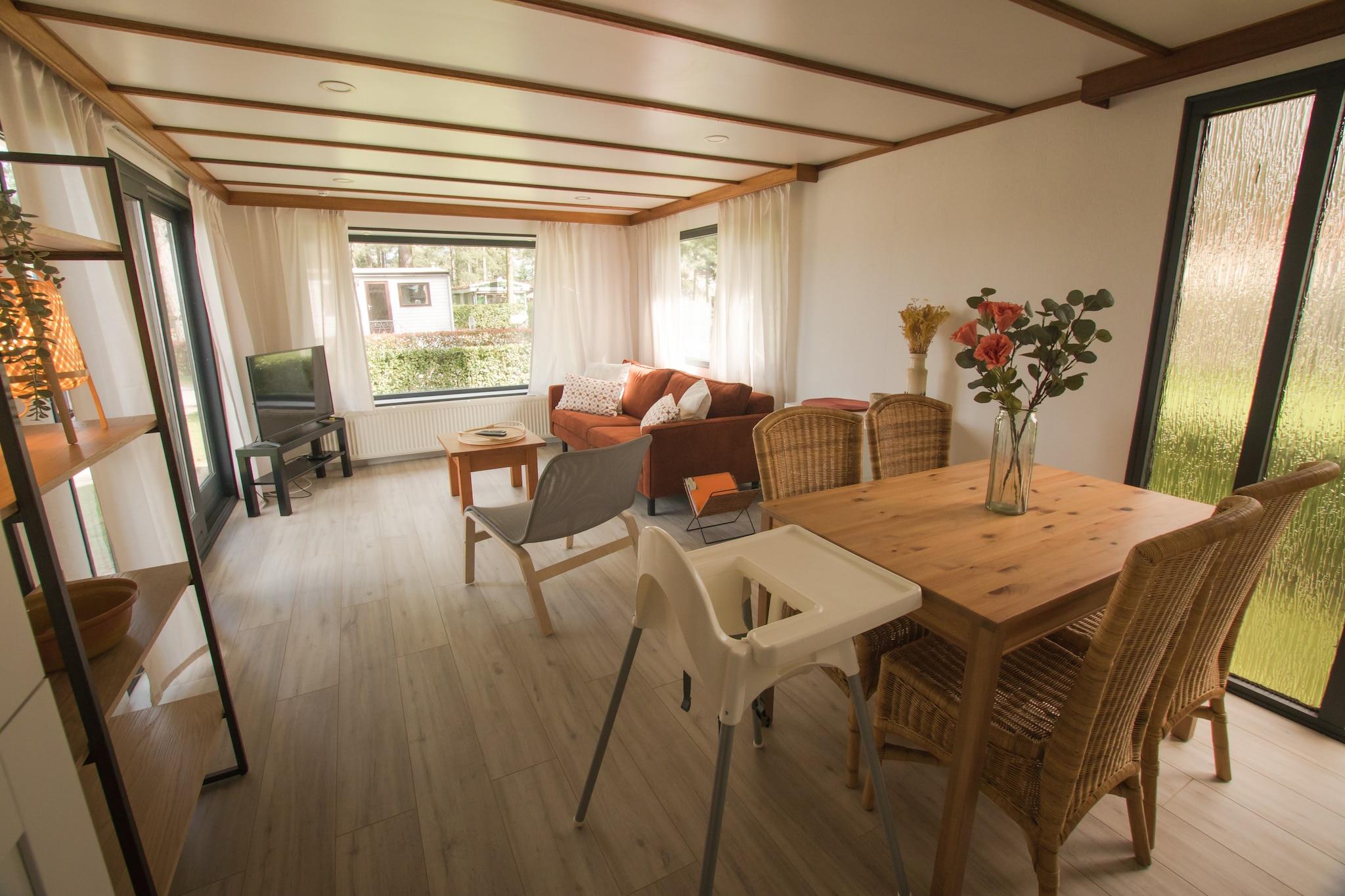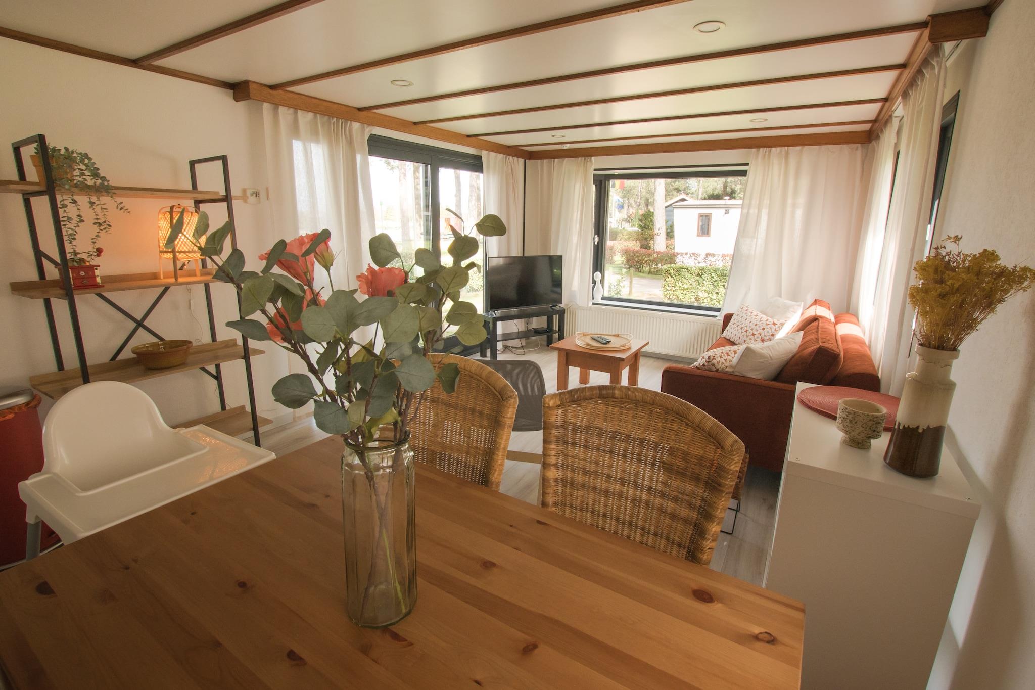 Upplev en härlig semester mitt i parken, där denna charmiga mobilbostad erbjuder en unik utsiktspunkt över sandstranden, fotbollsplanen och minigolfbanan. Perfekt för dig som uppskattar en touch av campingnostalgi i kombination med modern bekvämlighet, erbjuder detta boende en idealisk plats att njuta av solen på din privata terrass. Stugan är omsorgsfullt utformad för att rymma upp till två vuxna och två barn, vilket gör den till ett fantastiskt val för unga familjer som söker en central men ändå lugn hemmabas i Ravels. Inuti hittar du ett mysigt vardagsrum med platt-TV och ett öppet kök utrustat för alla dina behov. Köket inkluderar nödvändiga köksredskap, gasspis, kyl-frys, mikrovågsugn och en Senseo-kaffemaskin – komplett med några förrättskapslar för ett varmt välkomnande. Planlösningen inkluderar två bekväma sovrum, ett med dubbelsäng och ett med två enkelsängar, vilket garanterar en vilsam vistelse för hela familjen. Med privata badrum och effektiv uppvärmning för svalare kvällar erbjuder stugan en bekymmersfri miljö under alla årstider. Utomhusområdet har ett privat trädgårdsbord och stolar, där du kan koppla av medan du tittar på parkens livliga aktiviteter. Observera att detta är en rökfri anläggning där du kan hålla dig uppkopplad via det kostnadsfria allmänna Wi-Fi-nätverket. Gästerna har full tillgång till parkens främsta faciliteter, inklusive den naturliga baddammen, fiskedammen, minigolf, lekplats och olika sportbanor, men en lokal turistskatt eller ytterligare parkavgifter kan tillkomma vid ankomsten. Denna centrala oas balanserar perfekt parkens nöje med bekvämligheterna i ett privat semesterhus.