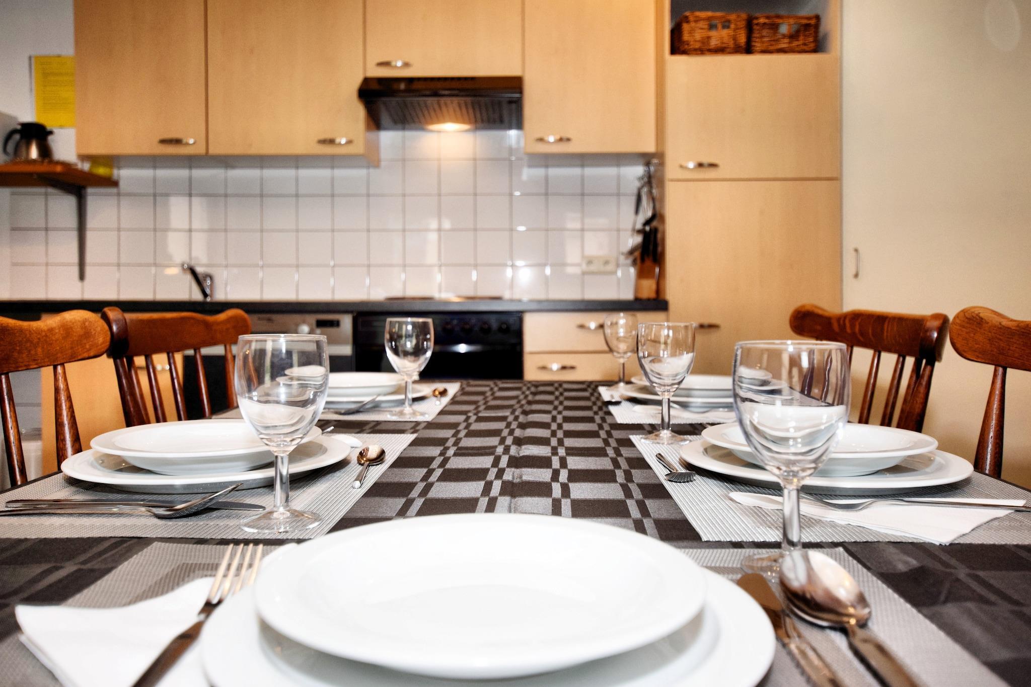 Bottenvåningen: (öppet kök(spis(Spis med 4 kokplattor, elektrisk), kaffebryggare, ugn, mikrovågsugn, diskmaskin, kylskåp), ardags- och matrum(TV, stereo)) På våning 1: (sovrum(2x enkelsäng), badrum(dusch, handfat, toalett )) värme(central), terrass(privat), trädgård(delas med andra gäster ), trädgårdsmöbler, grill, spjälsäng, barnstol, lekhage