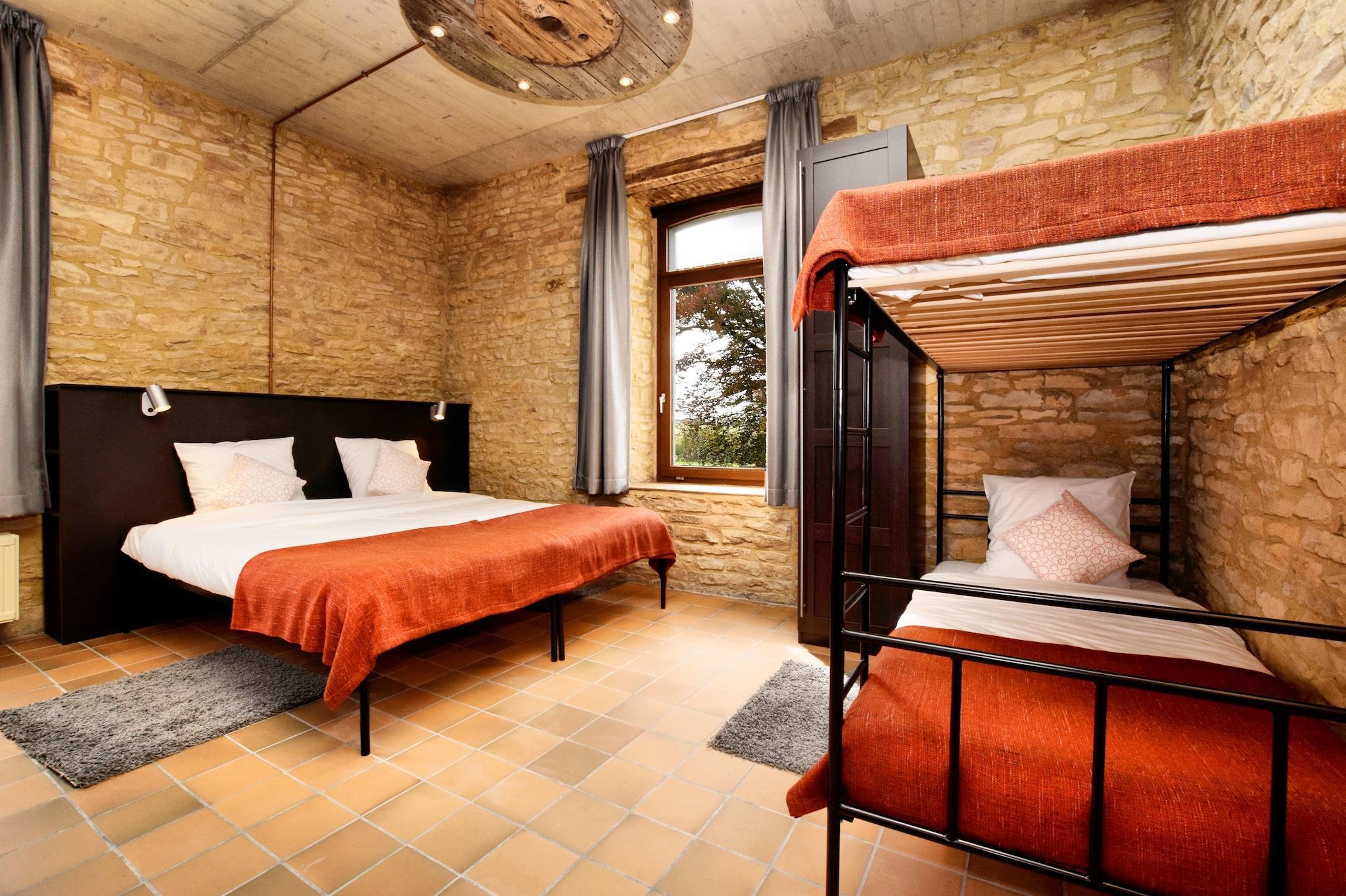 La Grémille – En autentisk reträtt i hjärtat av Gaume La Grémille ligger i den magnifika Gaume-regionen i södra Belgien och är ett stort, charmigt hus som på ett vackert sätt kombinerar komfort, autenticitet och trevlighet. Med plats för upp till 50 gäster är denna exceptionella fastighet perfekt för familjeåterföreningar, bröllop, seminarier, teambuilding-retreater eller privata fester. La Grémille ligger bara 3 km från Chassepierre, en av Valloniens vackraste byar känd för sin internationella gatuteaterfestival, och 8 km från Domaine des Épioux, ett 1 500 hektar stort naturreservat med skogar och dammar. Det är den perfekta basen för att utforska natur, kultur och lokalt arv. Huset har 17 eleganta sovrum, alla med eget badrum, och rymliga gemensamma utrymmen utformade för både avkoppling och gemenskap. Gästerna kan njuta av ett stort, ljust vardagsrum, en mysig matsal och ett litet vardagsrum inspirerat av Orval Abbey, perfekt för lugna stunder. Det professionella köket är fullt utrustat för att laga mat för stora grupper, oavsett om det är för självhushåll eller med en privat kock. För avkoppling och välbefinnande erbjuder La Grémille ett spelrum med biljard, fotbollsspel och pingis, samt en bastu för avkoppling. Från 1 april till 31 oktober kan gästerna också njuta av inomhuspoolen – perfekt för avkoppling i alla väder. Utomhus finns en stor terrass, grillplats och boulebana, omgiven av lugnet i en charmig by.