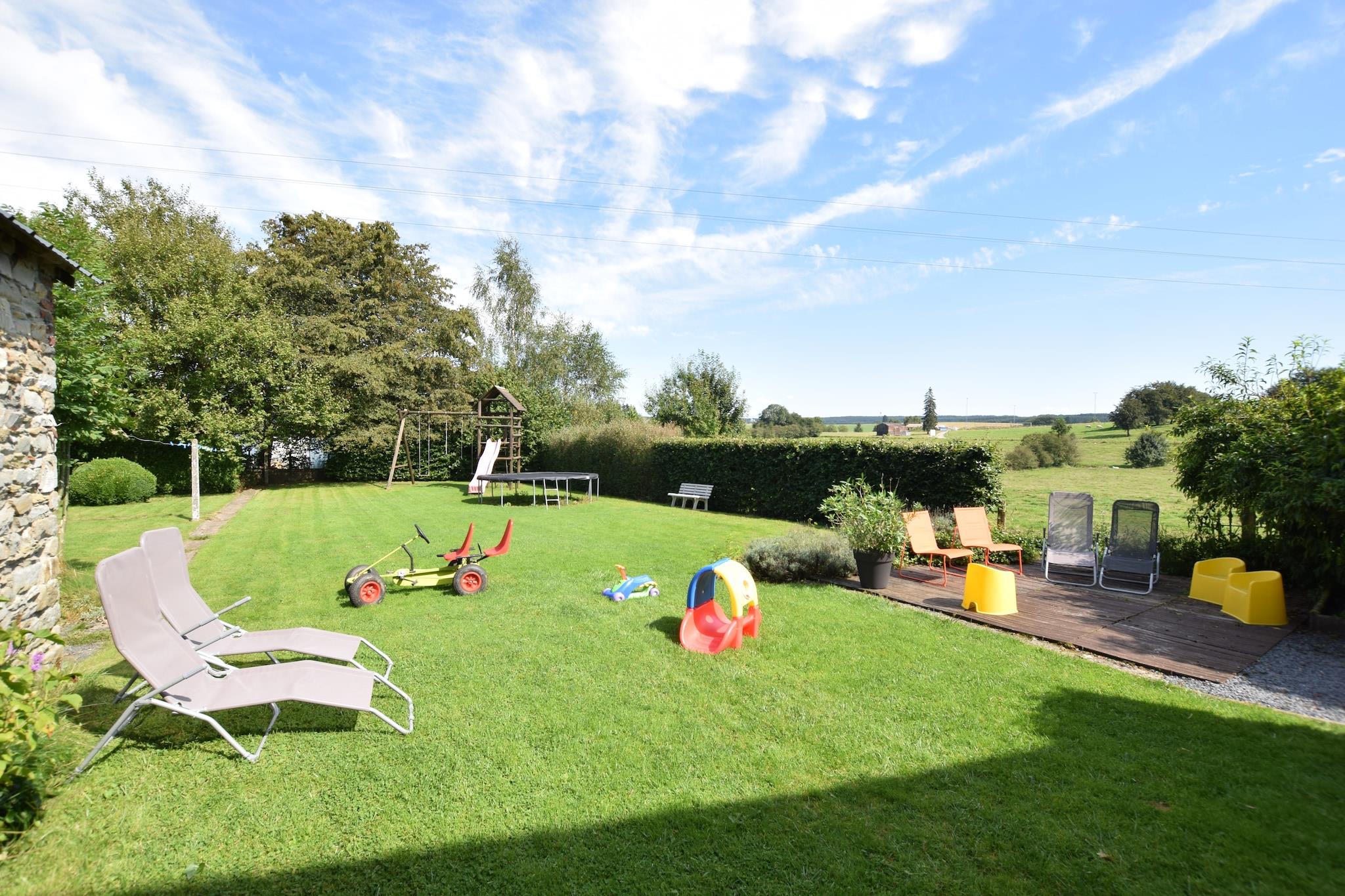 Beläget i den fridfulla byn Sainte-Marie-Chevigny, erbjuder detta vackert renoverade semesterhus med 3 sovrum i Libramont Ardennes en varm och välkomnande tillflyktsort för upp till 9 gäster. Med sin karakteristiska steninteriör, vedeldade spis och vidsträckta trädgård är den idealisk för familjer eller grupper som söker en avkopplande oas på landsbygden. Huset har ett rymligt vardagsrum, en matplats för 14 personer och ett fullt utrustat kök med moderna apparater. Det finns 2 badrum, det ena med badkar och det andra med dusch, samt ett rekreationsrum för nöjen inomhus. Utanför kan du njuta av en grillfest på terrassen, låt barnen leka på studsmattan och lekredskap, eller varva ner med ett glas vin i trädgården. Faciliteterna inkluderar centralvärme, gratis WiFi, träningsutrustning och privat parkering. Bostaden är omgiven av skogar och vandringsleder och ligger inom gångavstånd från en tennisbana, fotbollsplan och basketplan. Utforska närliggande attraktioner som Basilica of Saint-Hubert, Bastogne War Museum och Remouchamps-grottorna. Butiker och restauranger ligger bara 6 km bort, och Charleroi Brussels South Airport ligger 101 km från boendet.