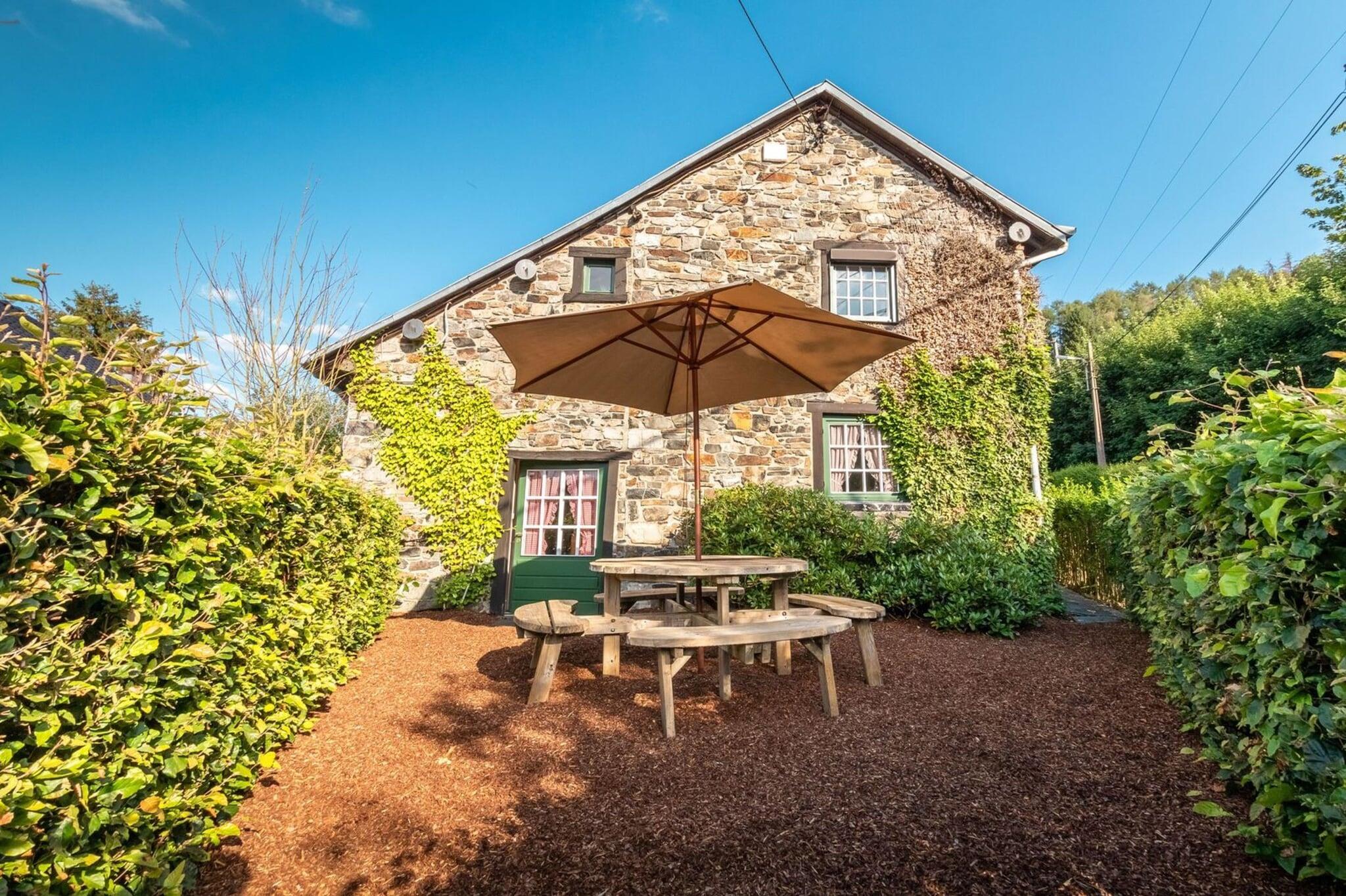 Detta förtrollande korsvirkeshus fångar den typiska charmen i ardennerstil, inbäddat i den pittoreska byn Coo, känd för sina fantastiska vattenfall. Perfekt lämpad för familjer eller små grupper, denna förtjusande tillflyktsort rymmer 4 till 6 gäster, och erbjuder en fridfull tillflyktsort omgiven av natur. Fastighetens exteriör har en möblerad terrass som är idealisk för uteservering och en BBQ, tillsammans med en täckt och uppvärmd jacuzzi tillgänglig året runt, vilket garanterar avkoppling under alla årstider. Inuti välkomnar bottenvåningen gäster med en inbjudande entré som leder till en vinkällare (för närvarande tom), en tvättstuga med tvättmaskin och en bekväm toalett. Det välutrustade köket har nödvändiga apparater, inklusive ugn, gasspis, kylskåp, diskmaskin och mikrovågsugn, med enkel tillgång till trädgården. Den mysiga matsalen, prydd med en vedspis, skapar en varm atmosfär för gemensamma måltider, medan det bekväma vardagsrummet har en TV, vilket ger det perfekta utrymmet att varva ner efter en dag av utforskning. På första våningen hittar gästerna två rymliga sovrum. Det första sovrummet har en dubbelsäng på 160x200 cm och ett eget badrum med badkar, toalett och handfat. Det andra sovrummet innehåller också en dubbelsäng på 160x200 cm, kompletterad med en charmig mezzanin med ytterligare en dubbelsäng och ett omklädningsrum, samt ett eget badrum med en italiensk dusch. Bekvämt beläget nära de berömda Coo-vattenfallen, ett sportcenter, en nöjespark, en djurpark, små restauranger och den berömda Spa-Francorchamps-banan, erbjuder detta charmiga hem en perfekt blandning av lugn och äventyr, vilket gör det till en idealisk tillflyktsort i hjärtat av Ardennerna.