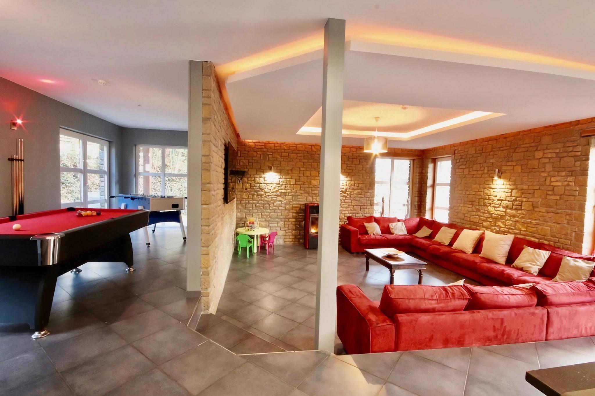Detta är ett lyxigt husdjursvänligt semesterhus med 7 sovrum i Stoumont för att bo nära skogen. Här finns en privat bastu och bubbelbad där du kan varva ner och en privat pool för ett uppfriskande dopp. Vistelsen är perfekt för en grupp på 24 eller familjer med barn. Det vackra läget har en härlig skog på 300 m och en flod på 500 m. Den offentliga poolen, skidliften, sjön och längdåkningen garanterar många spännande aktiviteter. Du kan utforska Coo vattenfall och städerna Spa och Malmedy. Stadens centrum ligger 5 km bort, medan snabbköpet och restaurangerna ligger 1 km bort. Vardagsmatsalen har en pelletskamin för kvällen. För underhållning finns det bordsfotboll och biljard. Du kan laga mat över grillen på terrassen. I den möblerade trädgården kan du njuta av solen. Det finns barnsäng, barnstol, studsmatta och lekredskap för barn. Parkering och plats för 3 husdjur mot avgift finns. Incheckningstiderna är 16.00 till 18.00 och utcheckningstiderna är 09.00 till 10.00. Obs: Vi ber gästerna att noggrant fylla i gruppsammansättningen när de gör en bokning, med särskild uppmärksamhet på antalet vuxna, barn och spädbarn eftersom grupper av personer under 30 år inte accepteras.
