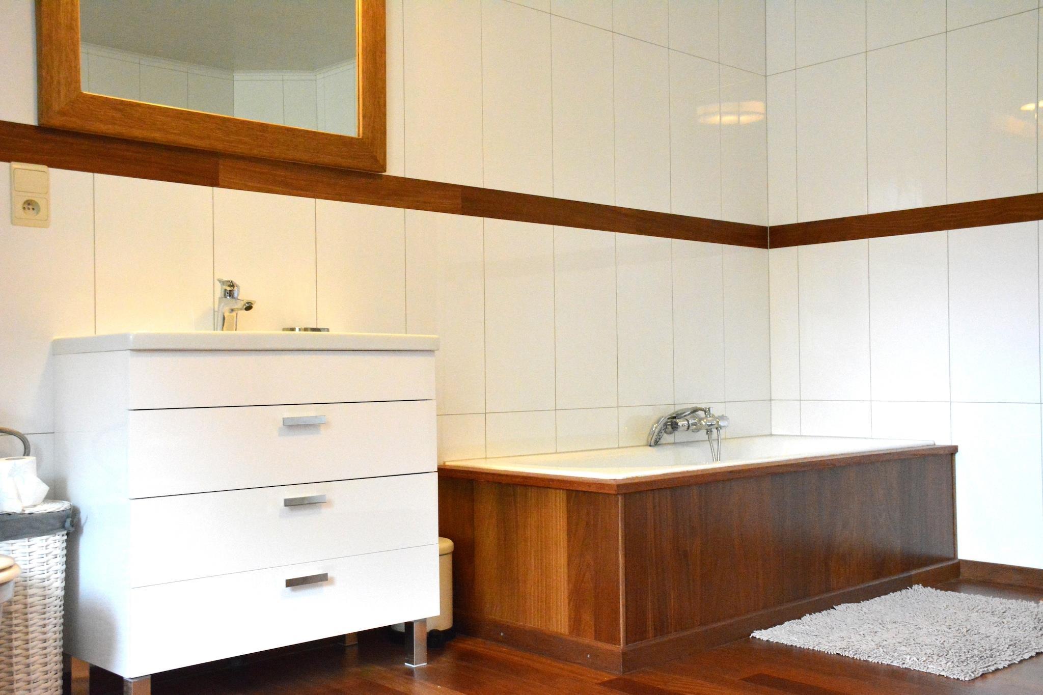 Bottenvåningen: (Hall, Vardagsrum(TV, öppen spis, sitthörna), Matplats i köket(Kokplattor(keramisk), vattenkokare, brödrost, kaffebryggare(kaffetratt), ugn, mikrovågsugn, diskmaskin, kylskåp), WC(toalett )) På våning 1: (sovrum(enkelsäng, enkelsäng), Bedroom with bathroom(dubbelsäng, badkar, dusch, handfat, toalett , hårfön)) vagga, terrass, trädgård, cykelförvaring, trädgårdsmöbler, grill, parkering, barnstol, loungemöbel, Stekbord/stekhäll