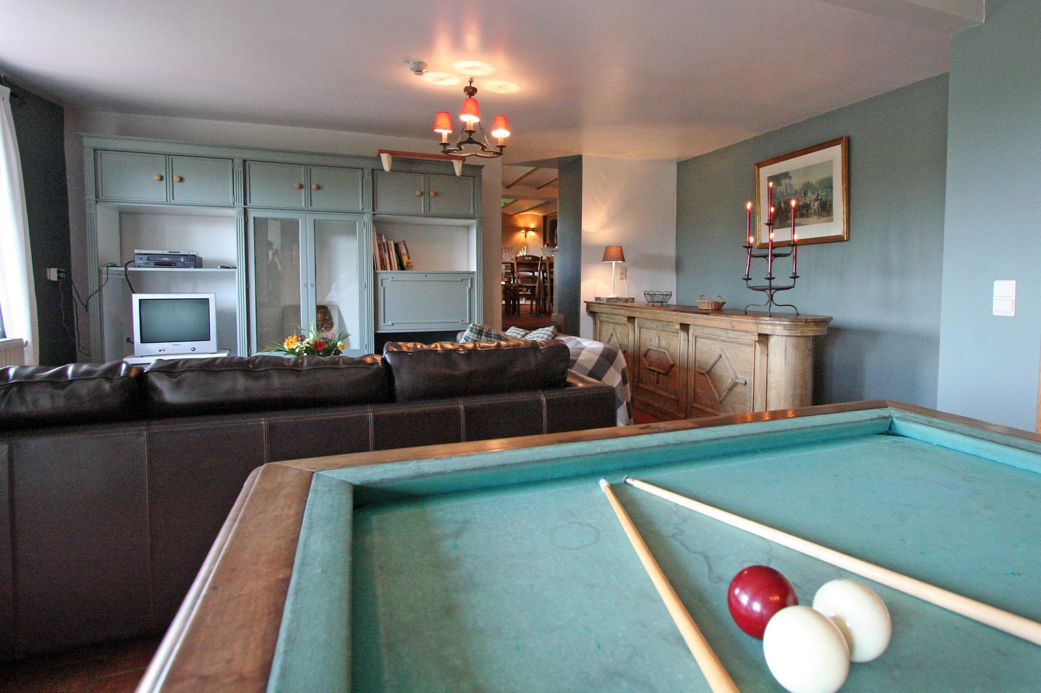Denna rymliga, husdjursvänliga villa i Vlessart är perfekt för stora familjer eller grupper som söker komfort och underhållning i hjärtat av Ardennerna. Med 12 sovrum och 14 badrum fördelade på fyra våningar erbjuder fastigheten avskildhet och komfort för upp till 24 gäster. De mysiga vardagsrummen har öppen spis, DVD-spelare och radio, medan det fullt utrustade köket är utrustat med ugn, mikrovågsugn, diskmaskin och kyl-frys. Ett privat rekreationsrum med bar, bastu, dusch och biljard garanterar avkoppling och nöje för både unga och gamla. Gästerna har tillgång till två rekreationsrum, varav ett har ett bordtennisbord, samt utomhusfaciliteter som terrass, trädgård med trädgårdsmöbler, grill, boulebana och lekplatsutrustning. Centralvärme, tvättmaskin, barnstol och spjälsäng ger ytterligare komfort. Oavsett om du är värd för en fest eller njuter av en fridfull reträtt, är denna villa perfekt för oförglömliga gruppvistelser. I närheten kan du utforska den pittoreska Anlier-skogen, perfekt för vandring och cykling, eller ta en naturpromenad längs Vlessart-leden. 2 För att äta middag, besök Les Plats Canailles de la Bleue Maison i Habay-la-Neuve för belgiska klassiker eller Hôtel Restaurant N4 i Martelange för regionala specialiteter. Rökning är inte tillåten på boendet.
