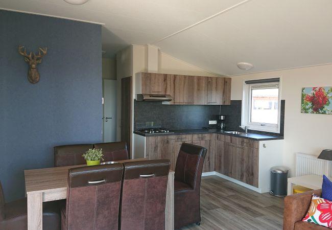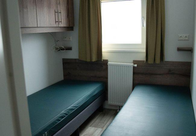 This royal chalet at Camping Naturally Limburg accommodates six people and is ideal for families or small groups who want to enjoy peace and nature together. Here you experience complete relaxation with the sound of whistling birds and the soft rustling of trees in the background.