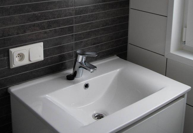 Inside, the chalet is equipped with all comforts, with an area of approximately 50 m². Thanks to good insulation, central heating and air conditioning, it is delightful to stay here in every season. The living space is cosily furnished and features satellite television and Wi-Fi. The kitchen is fully equipped so you can cook carefree. The bathroom is modern and includes a walk-in shower and washbasin. The toilet is located separately, which offers extra comfort for families or multiple guests. There are two bedrooms with comfortable box spring beds and a cosy alcove serves as a third sleeping area – a favourite with children and adults who love a snug sleeping spot..