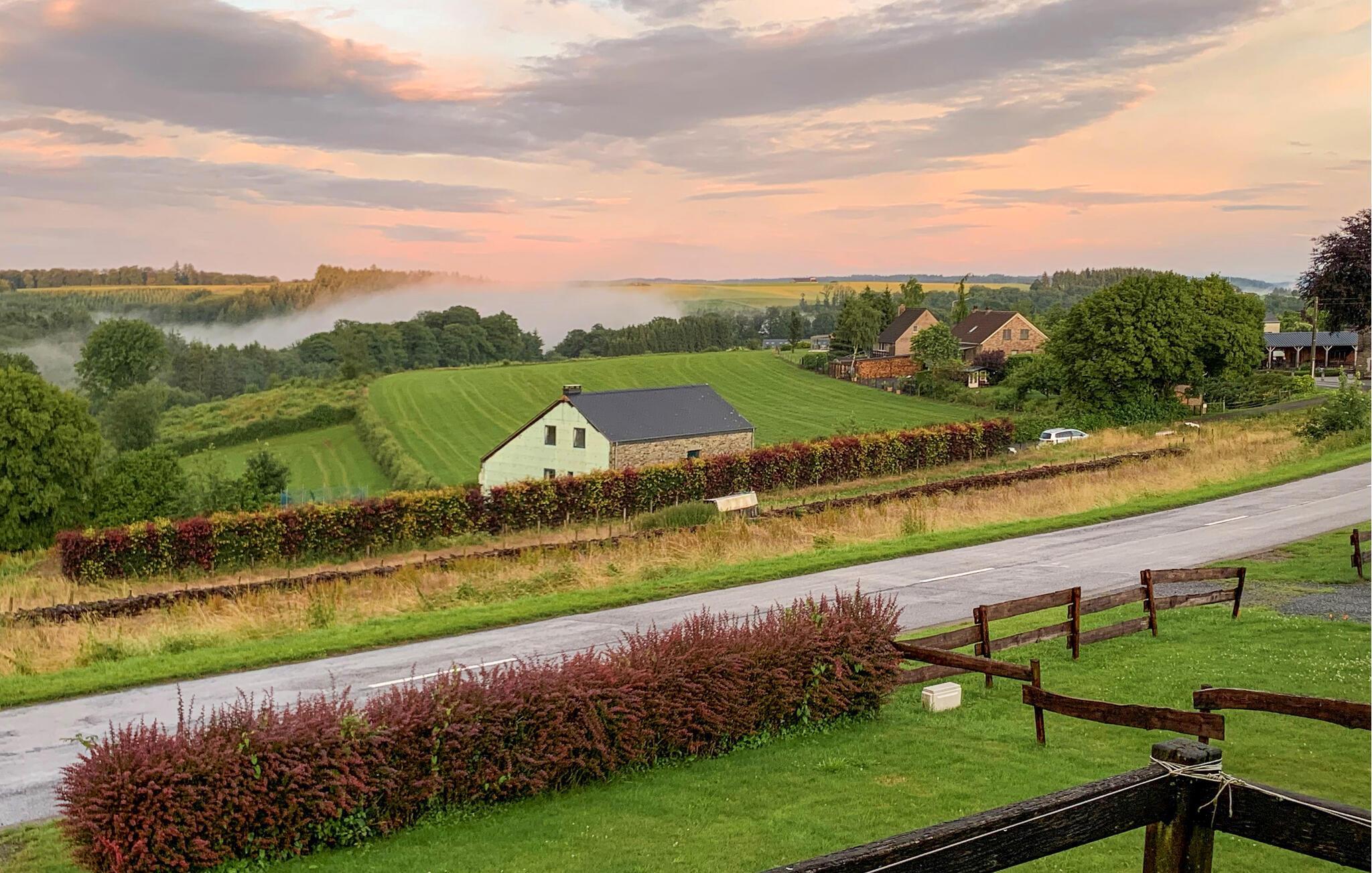 Från detta mysiga semesterhus har du en vacker utsikt över landsbygden.