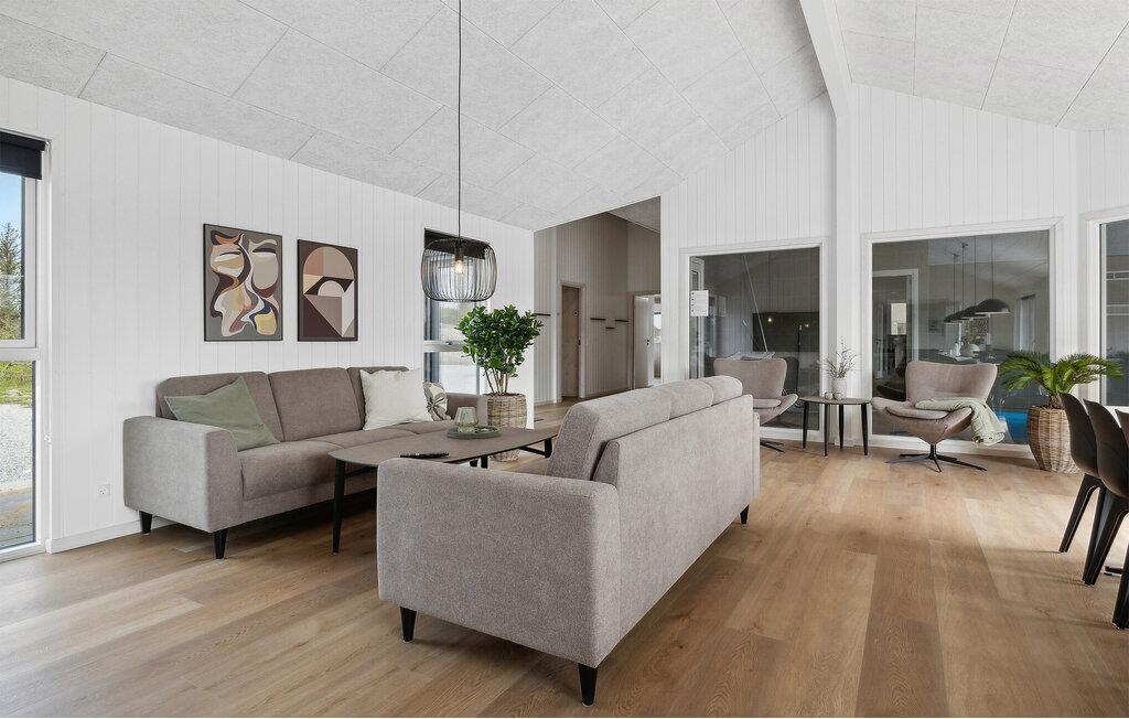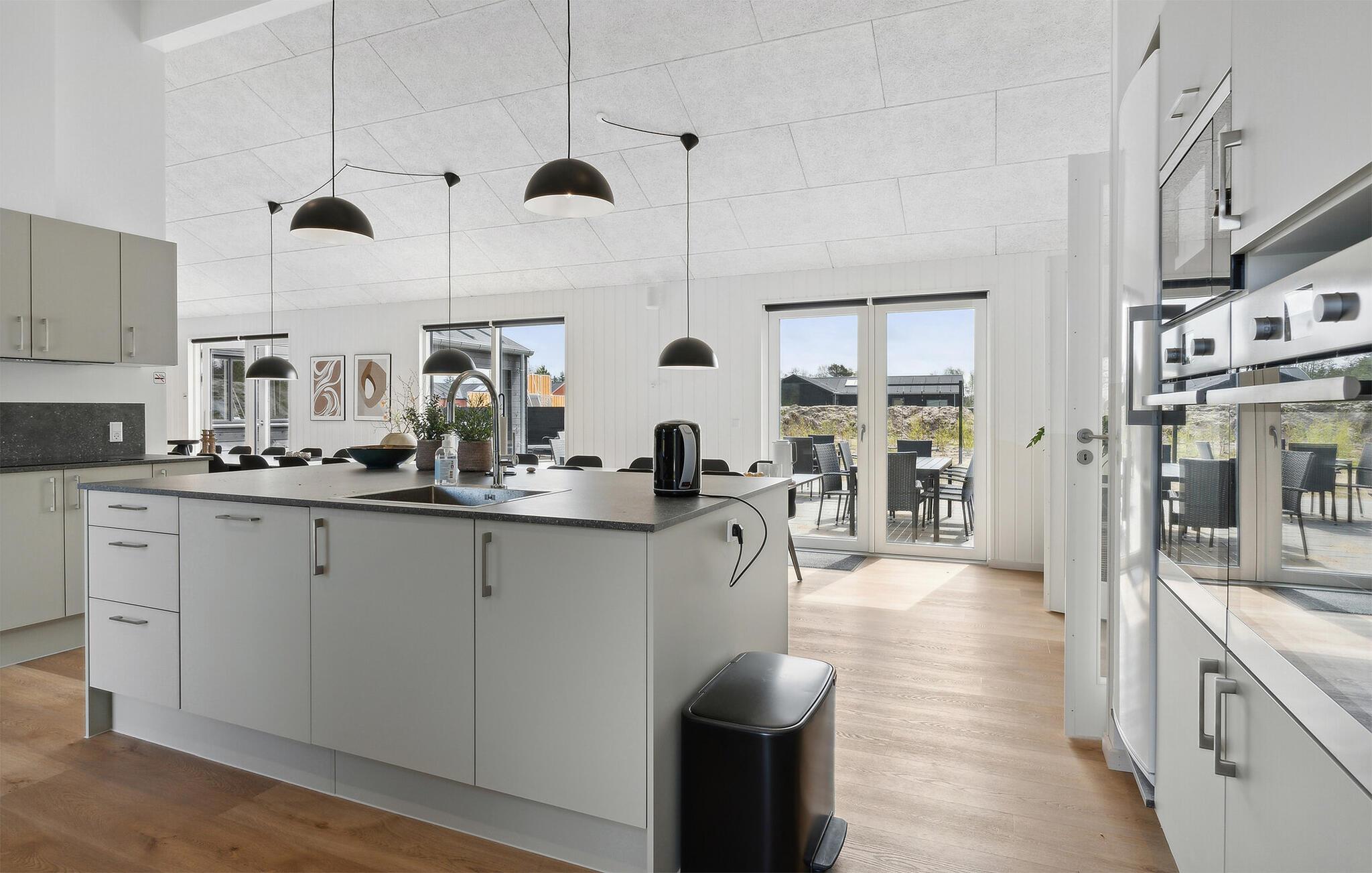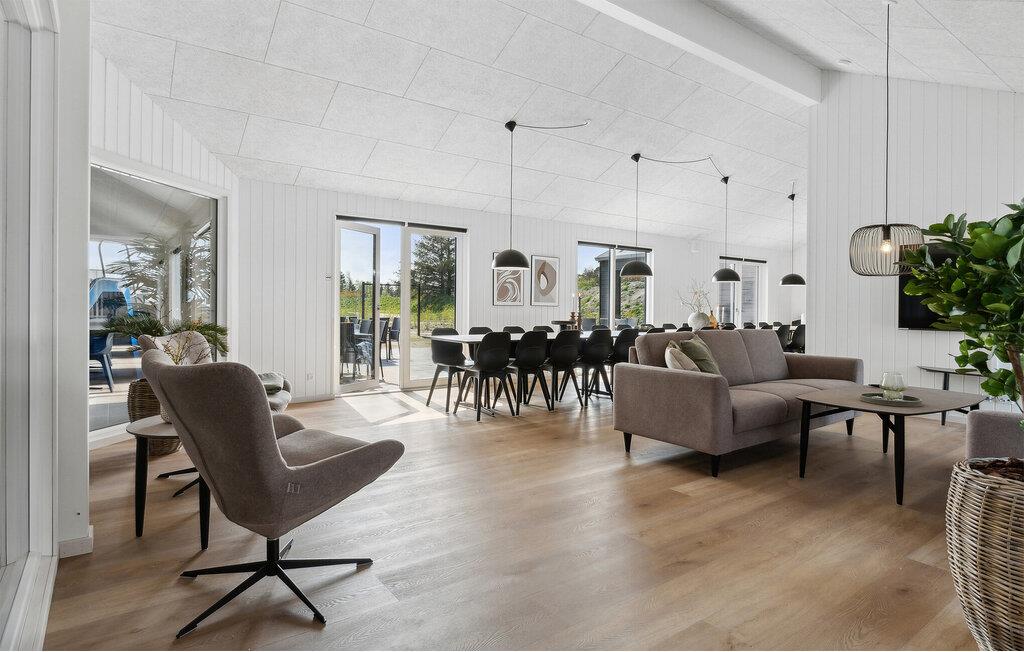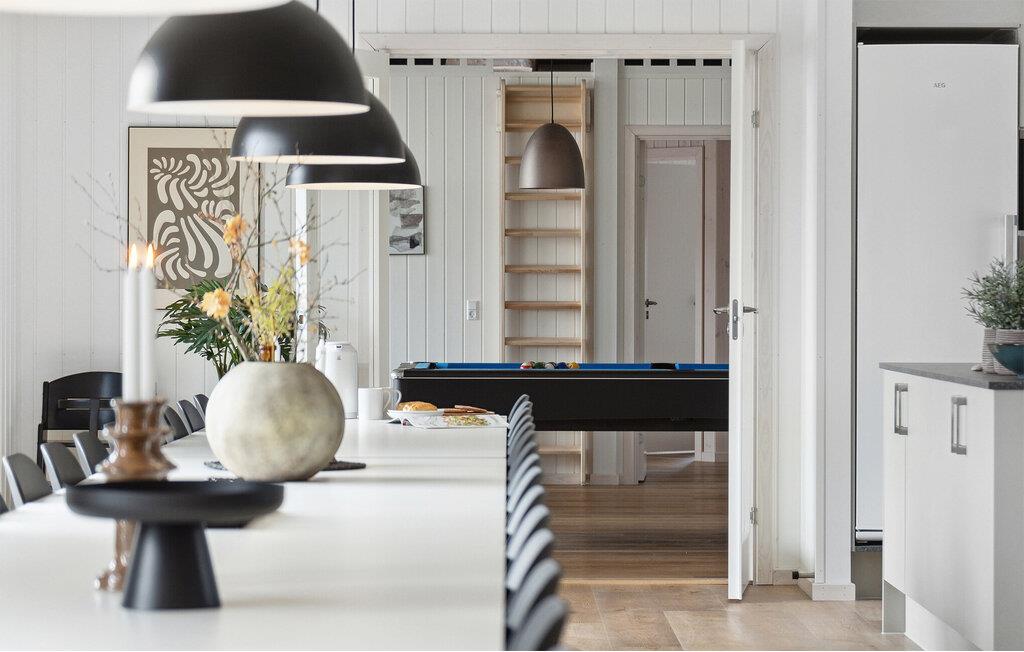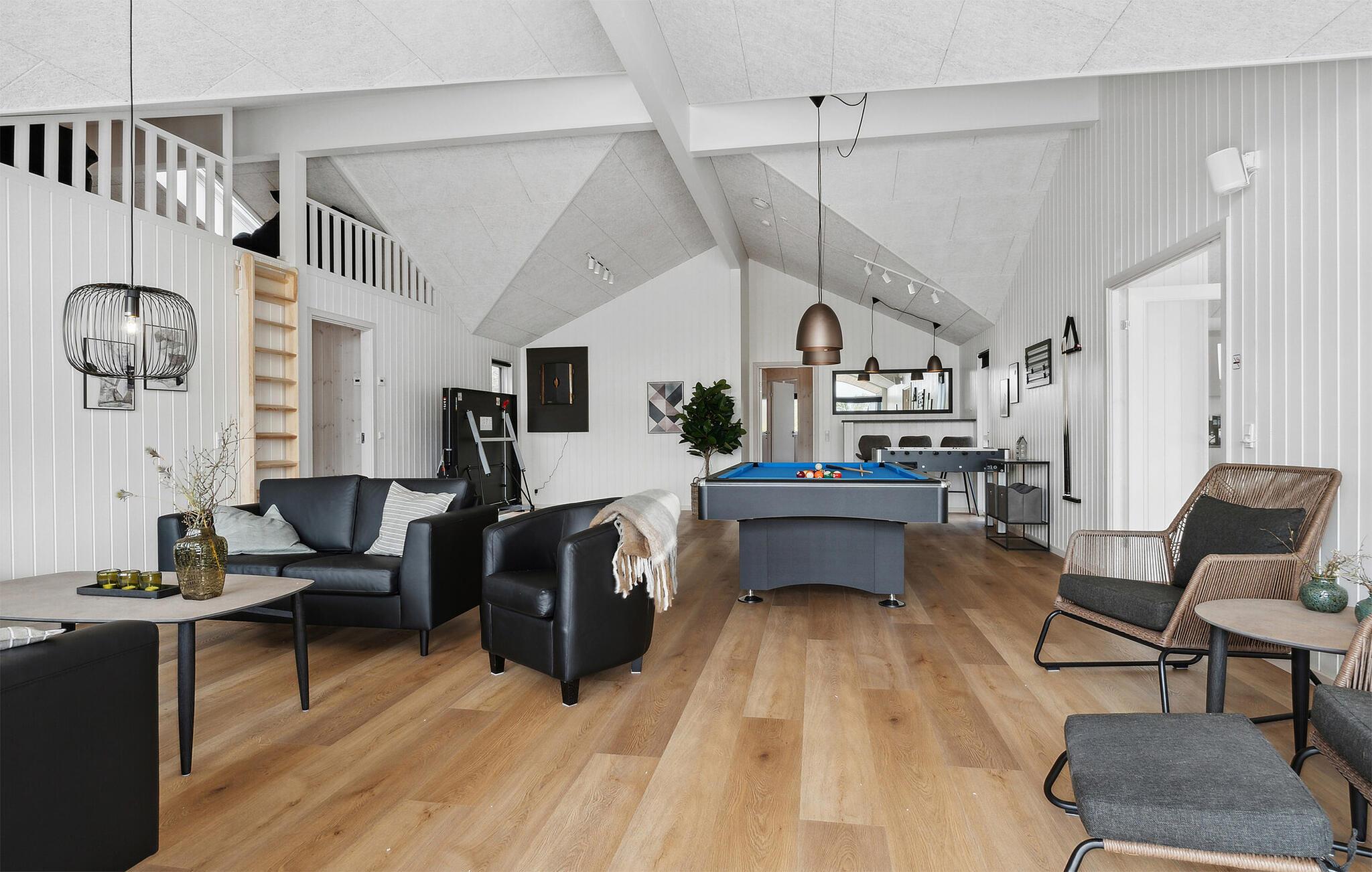 Med sina många aktivitetsmöjligheter och många bäddar är detta semesterhus perfekt för en stor grupp eller flera familjer som reser tillsammans. Här i norra Jylland kommer ni att få en oförglömlig semester. Bestäm på morgonen vem i semestergruppen som ska förbereda frukosten tillsammans. Det eleganta köket med öppen planlösning erbjuder gott om utrymme för matlagning och livliga diskussioner om dagens planer. Den eleganta interiören utstrålar också en inbjudande atmosfär. Organisera en biljardturnering här och koppla sedan av i poolen och bastun.