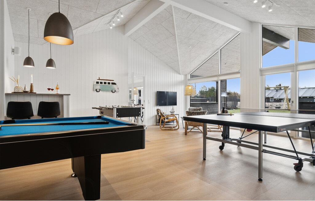 Den rymliga terrassen är den perfekta platsen för mysiga grillkvällar medan barnen studsar på studsmattan eller använder de andra lekredskapen utomhus. Det finns också utrymme för att spela fotboll eller badminton. För underhållning inomhus finns biljard, bordtennis, bordsfotboll och dart.