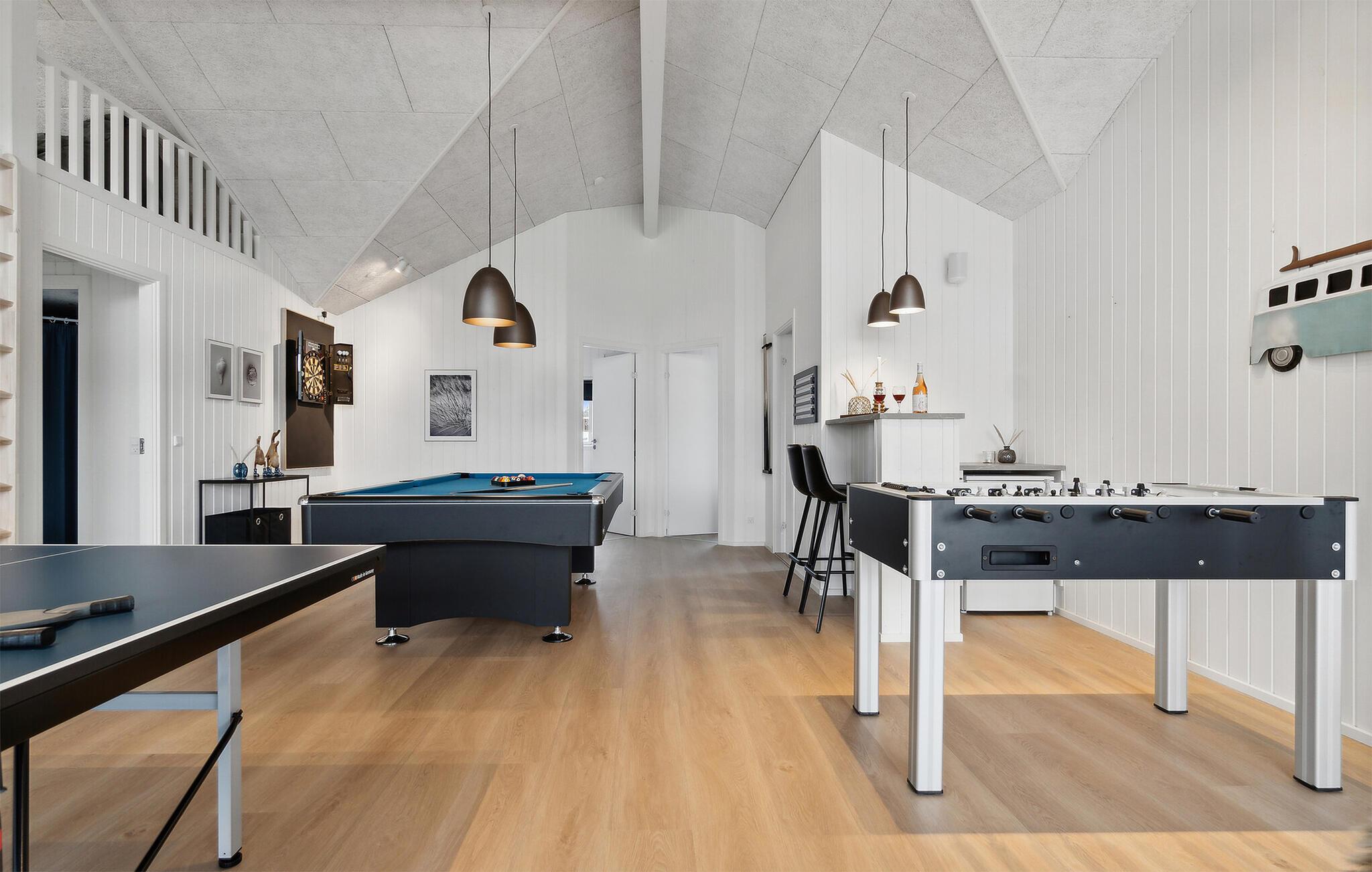 Välkommen till Ålbæk Strand i den nordligaste delen av Jylland. Börja dagen här med en rejäl frukost vid matbordet, som ligger i direkt anslutning till det öppna, moderna köket. Här kan ni diskutera dagens planer i en mysig atmosfär och se fram emot de äventyr som ligger framför er. Vardagsrummet inbjuder till avkoppling i sofforna och fåtöljerna medan barnen målar eller ni spelar spel tillsammans. Inomhuspoolen erbjuder vattenglädje hela dagen, medan bubbelpoolen och bastun ger avkopplande stunder.