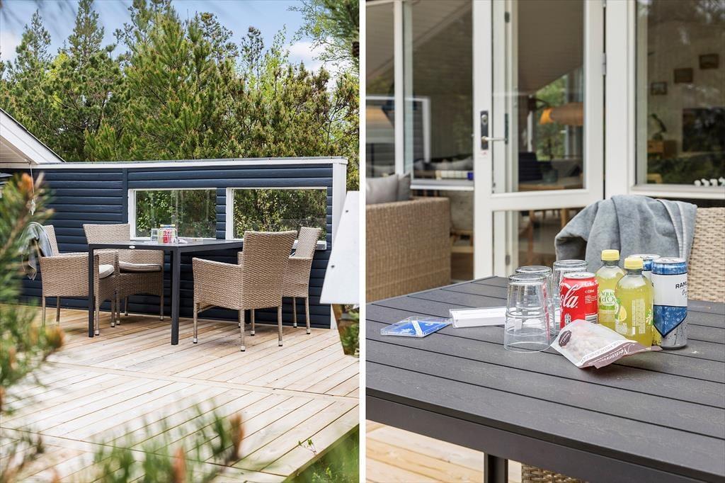 Bei den drei Terrassenbereichen, die rund um das Ferienhaus zur Verfügung stehen, kannst du dir sicher sein, dass du immer ein perfektes Plätzchen finden wirst. Die nach Süden ausgerichtete Terrasse ist die größte und liegt völlig abgeschieden, mit Blick auf den Garten hinter dem Haus - eine ruhige und sonnige Oase, in der du mit deiner Familie eine tolle Zeit verbringen kannst. Der Gasgrill macht es dir leicht, dein Abendessen im Freien zuzubereiten, und auf der anderen Seite des Hauses kannst du dein Auto sicher im Carport parken.