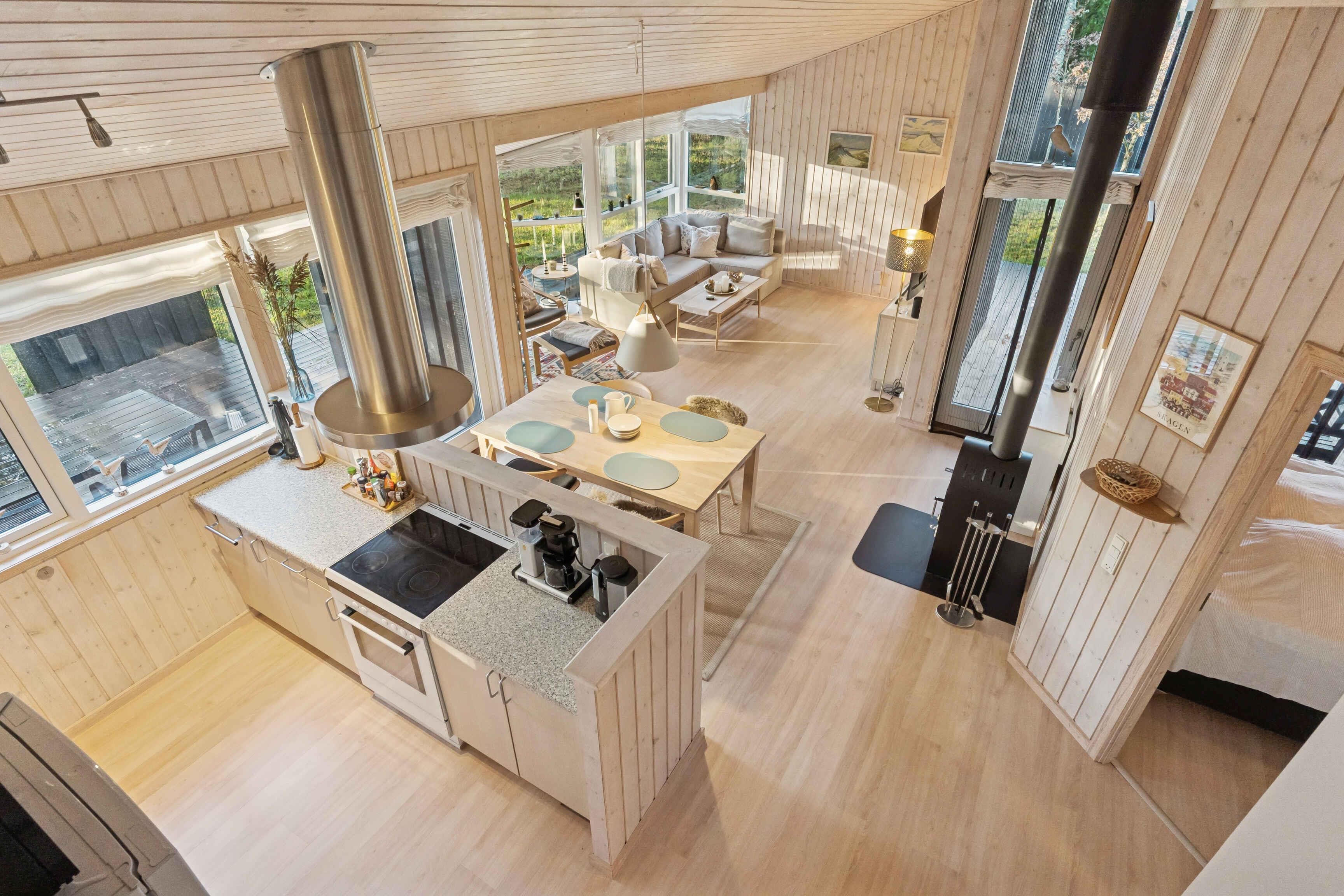 Escape the stress of everyday life and unwind in our charming summerhouse, perfectly situated in a calm, wooded area. Here, you can relax surrounded by nature, whether you prefer a quiet morning coffee on the terrace or a refreshing walk among the trees. Recharge at the nearby beach, go for a hike or bike ride through the forest, or visit Råbjerg Mile, one of Europe’s largest moving sand dunes, an unforgettable natural wonder. If the weather turns, cozy up by the fireplace or enjoy a soothing session in the sauna. Being nestled between two oceans gives this area its unique, ever-changing light. The same magical atmosphere that once inspired the painters of Skagen, only a short drive away. And don’t miss the unforgettable sight of the North Sea meeting the Baltic Sea, a truly special experience that captures the beauty and power of nature.
