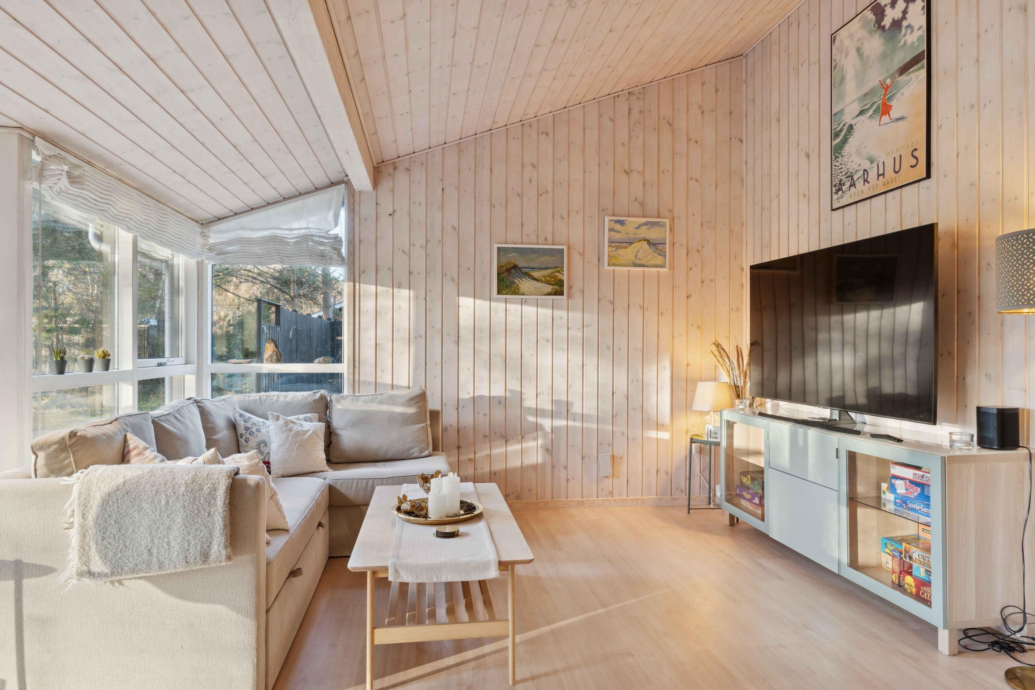 Escape the daily stress in our peaceful summerhouse surrounded by nature. Enjoy the beaches, forests or sauna, and fireplace. Perfect for biking, running, or golfing in the beautiful environment of northern Denmark.