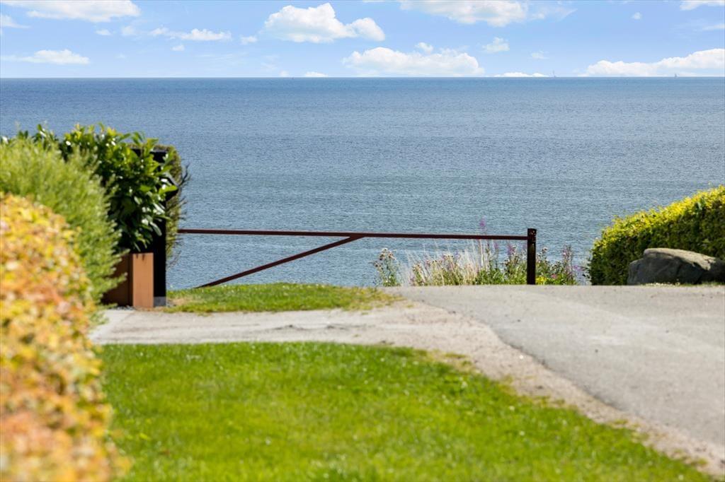 Der Außenbereich bietet eine wunderbare Terrasse, von der aus du den fantastischen Ausblick mit Meeresblick genießen kannst. Der große Garten mit einer geräumigen Rasenfläche ist ideal für Spiele, Aktivitäten und Sonnenbaden. Auf der Terrasse kannst du in den bequemen Sonnenliegen entspannen und den Alltagsstress hinter dir lassen. Die Terrasse bietet dir die Möglichkeit, den Blick auf das Wasser zu genießen. Bei deiner Ankunft kannst du das Auto in der Auffahrt direkt am Haus parken, sodass du trockenen Fußes ins Haus gelangen kannst. Hier gibt es genügend Platz, um das Leben und die frische Luft in vollen Zügen zu genießen.