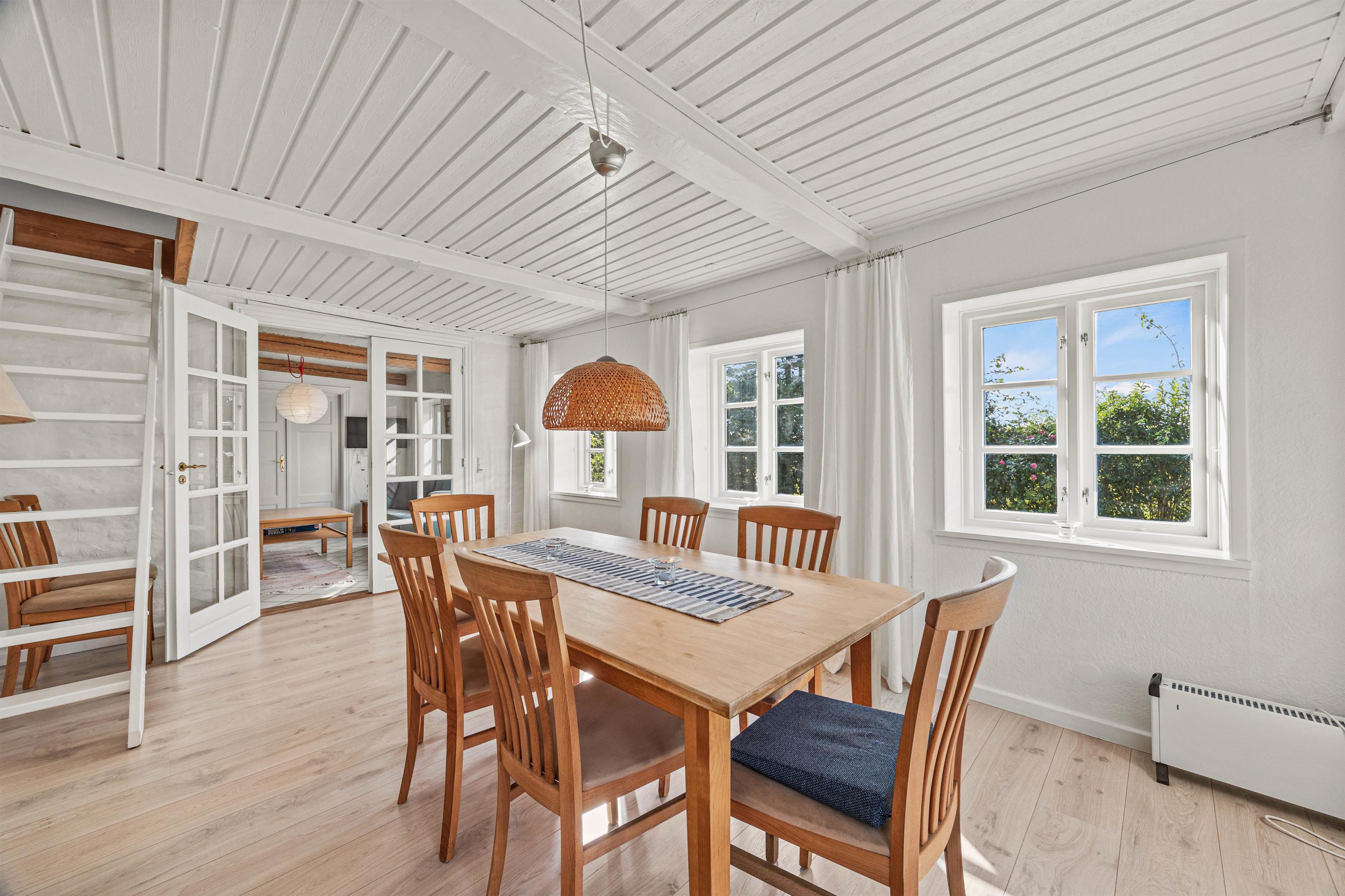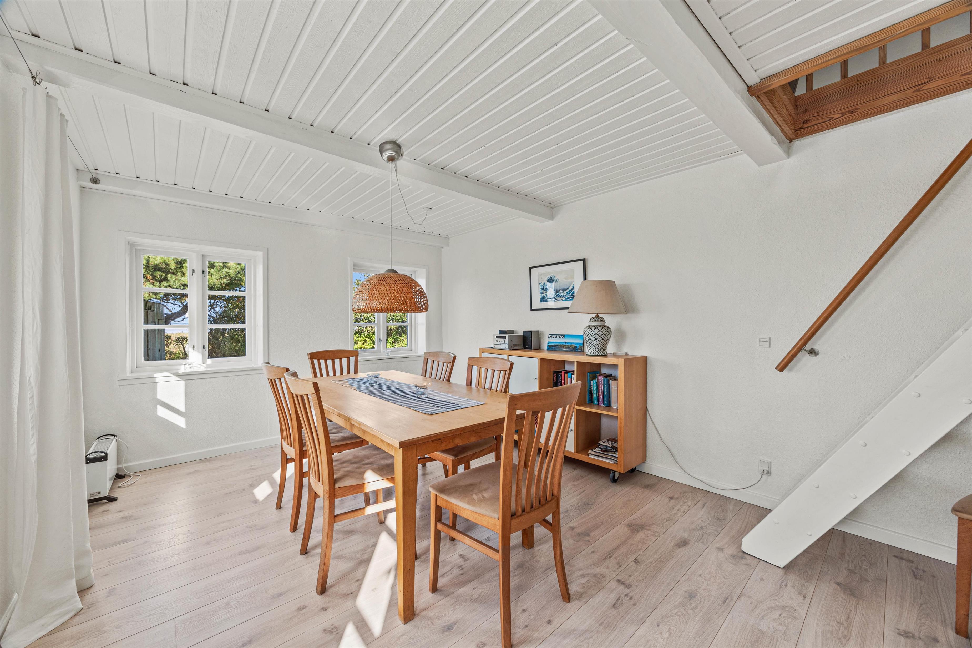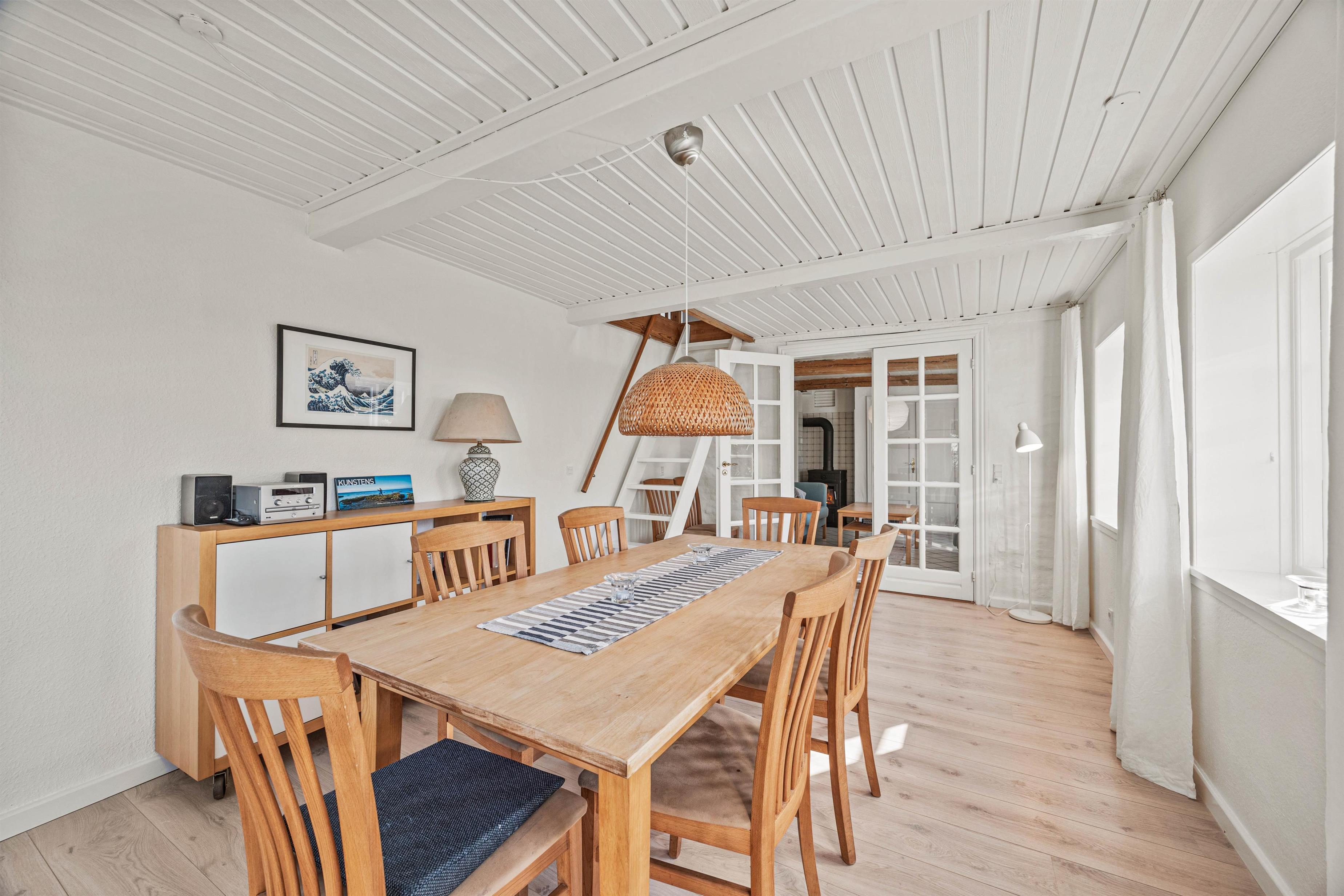 Open the front door and feel at home from the moment you arrive. The heart of this 179-square-metre holiday home is its living area. Here, the kitchen and living room flow together, with the wood-burning stove in the kitchen creating a cosy atmosphere. Beyond the essential kitchen equipment, there's also an additional chest freezer. The separate dining room is adjacent to the open-plan living area. In this exceptional holiday home, you can enjoy countless comfortable moments cooking together in the kitchen, playing fun games at the dining table, or gathering to watch a good film on the television.