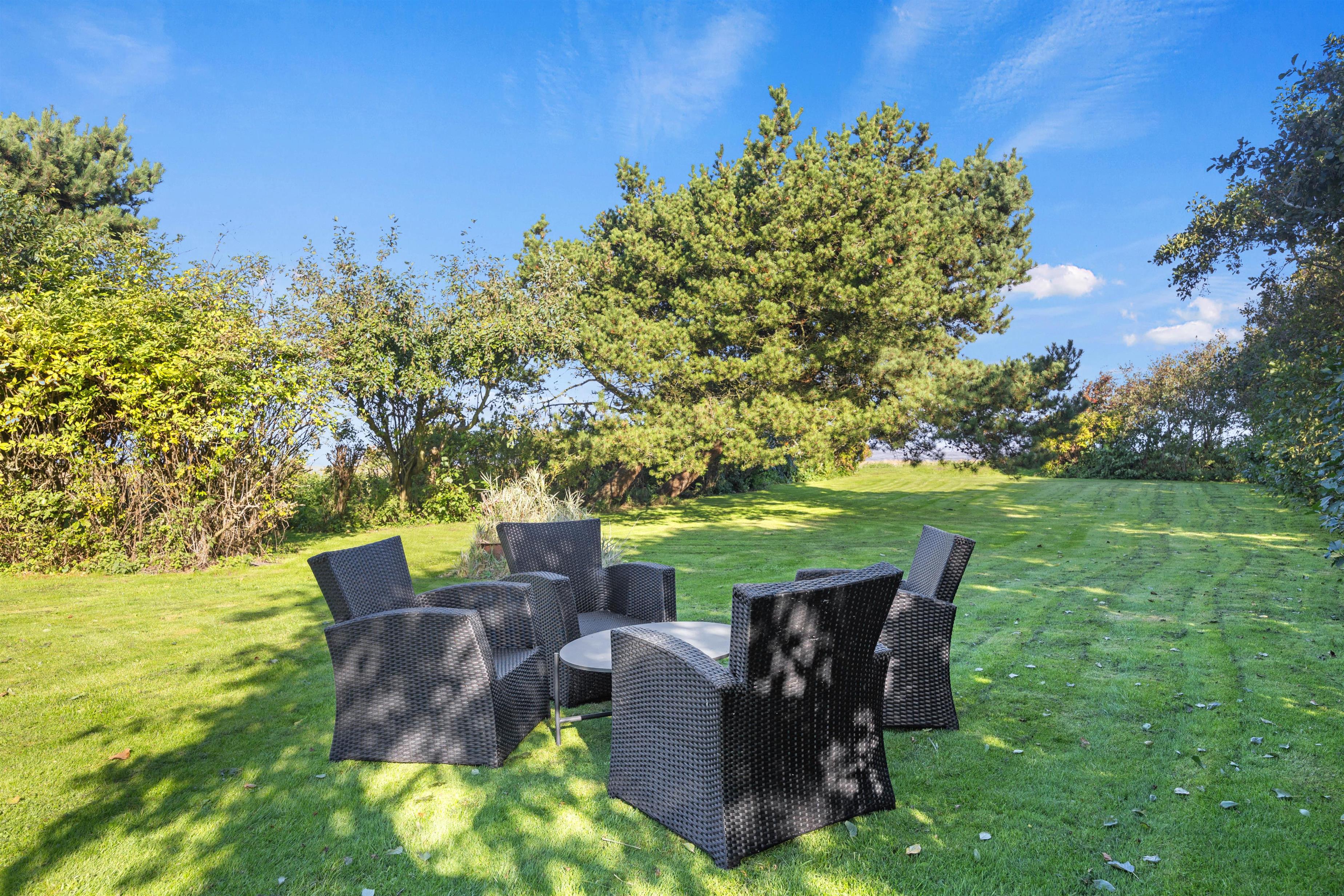 The holiday home sits within spacious grounds featuring extensive lawns. The terrace comes equipped with sun loungers, garden furniture and a barbecue. While you relax on your terrace, children can play on the large lawn.