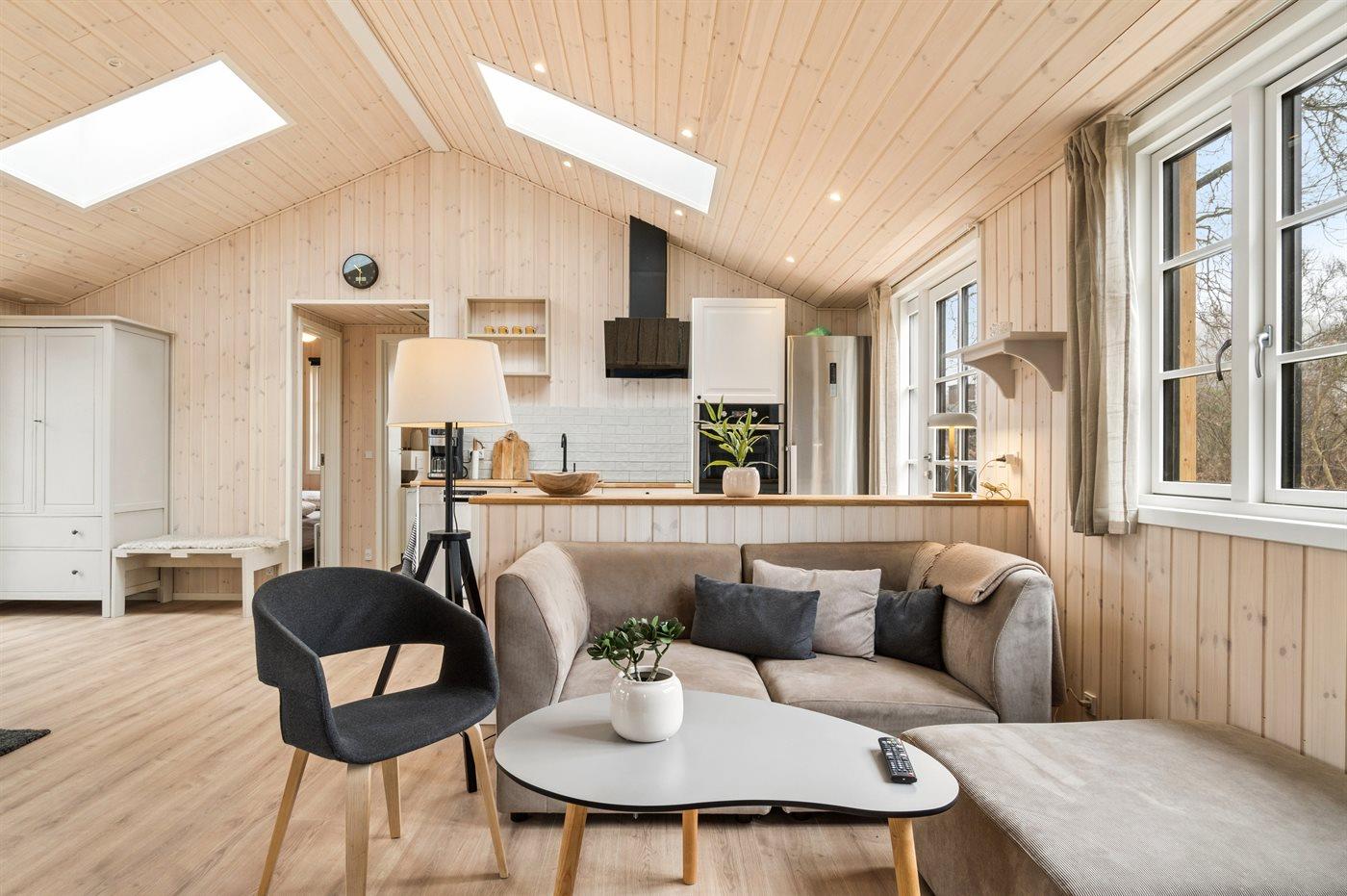Semesterstugan lämpar sig för 6 personer. 2 av sängplatserna är endast lämplig för större barn (4-11 år). Fritidsbostaden är på 74 m² och är byggd i 2026. Det är tillåtet at ta med 2 hus-djur. Fritidsbostaden har tvättmaskine. Torktumlare. Fryskapacitet på 70 liter. Det finns dessutom 1 vedeldad kamin.