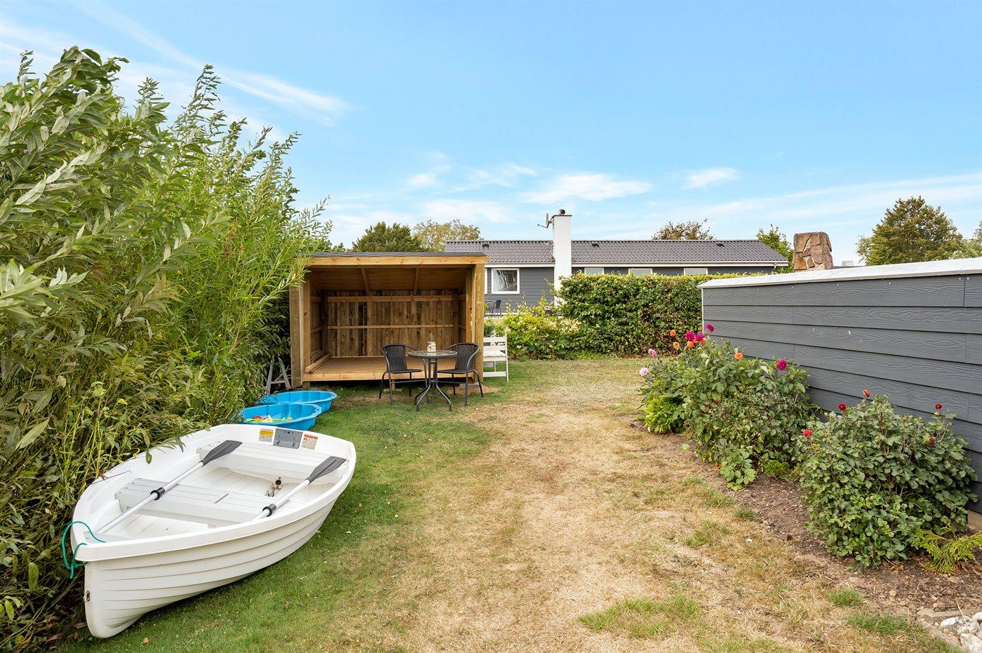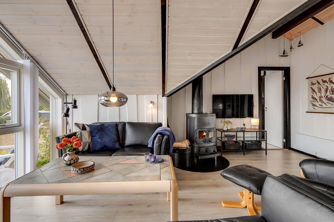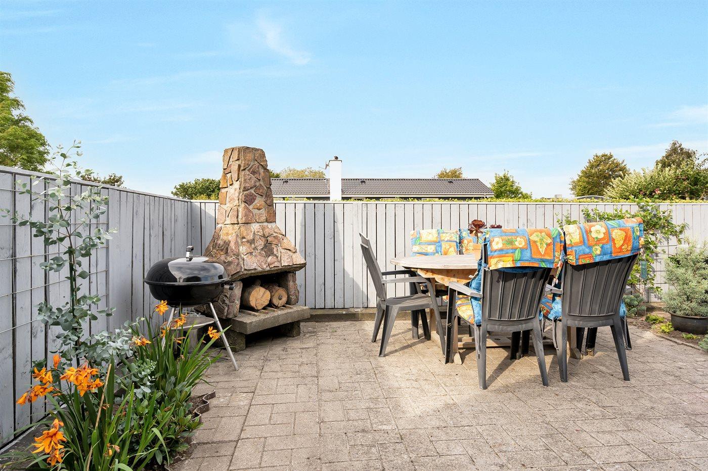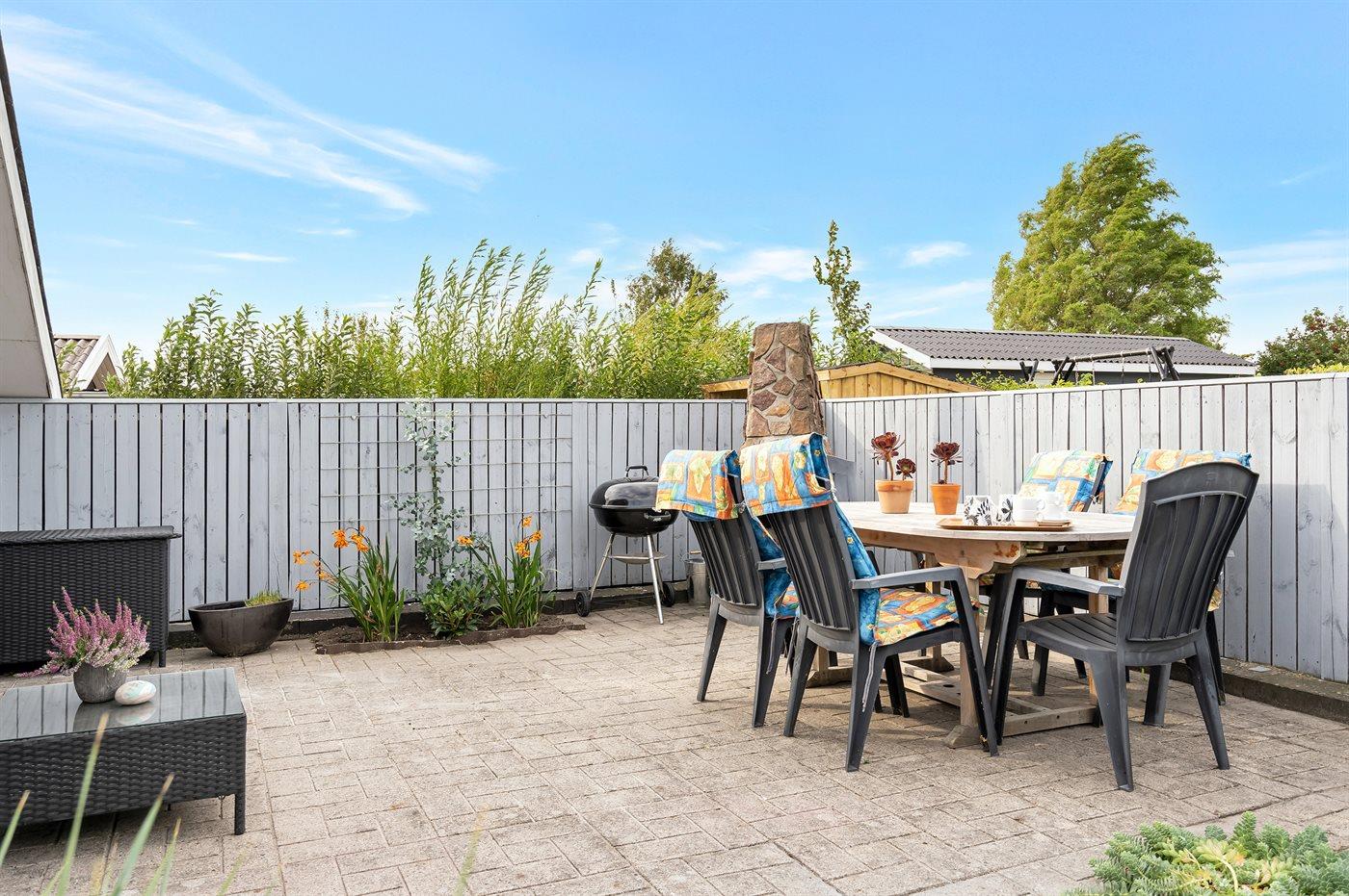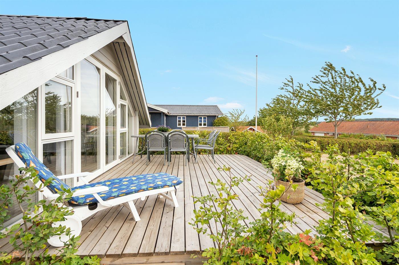 Fritidsbostaden ligger på en 952 m² stor anlagd trädgård. Avstånd till hav är 500 m. Närmeste affär ligger på ett avstånd av 300 m. Till fritidsbostaden hör 20 m² terrass.Under ljumna kvällar skapar en utomhus öppen spis en trevlig stämning. Det finns grill til förfogande. P-plats på tomten.