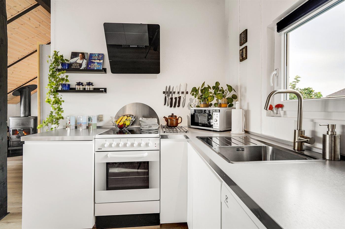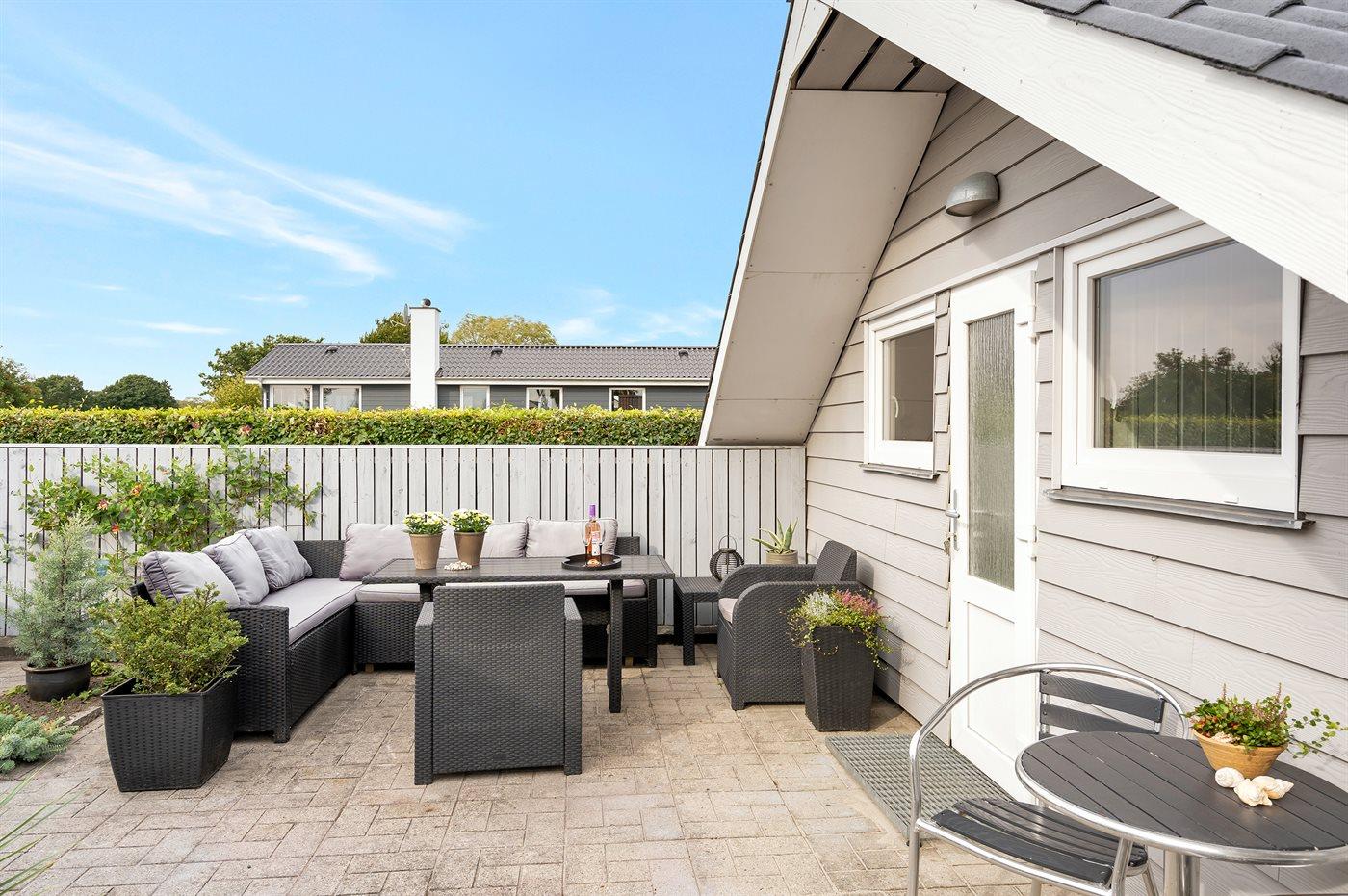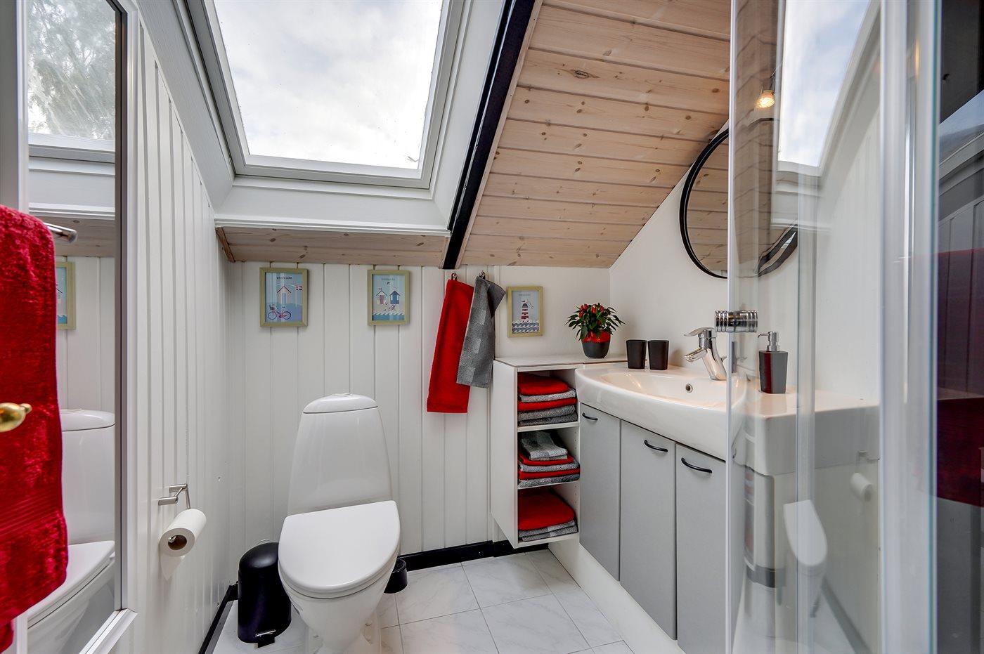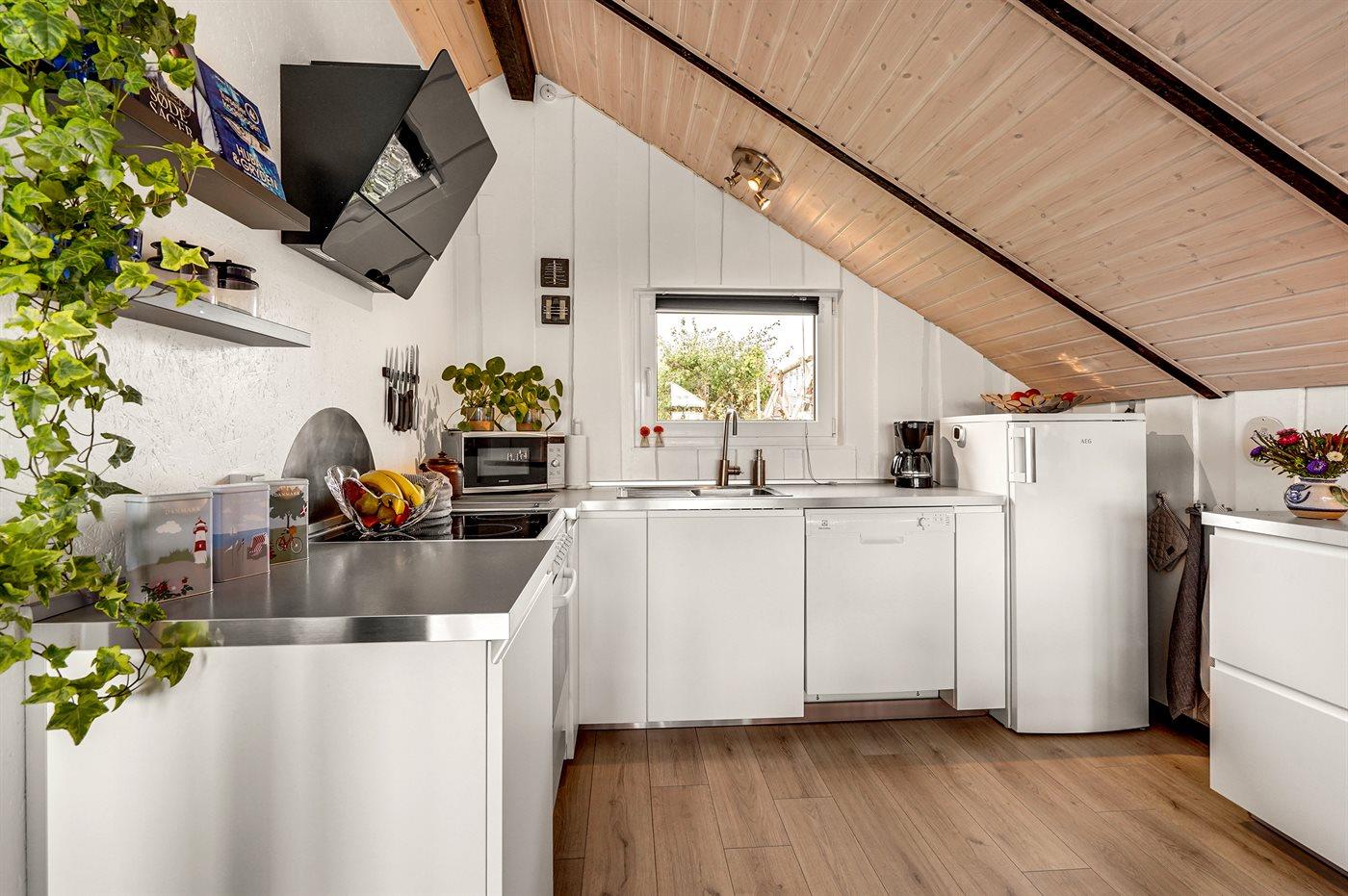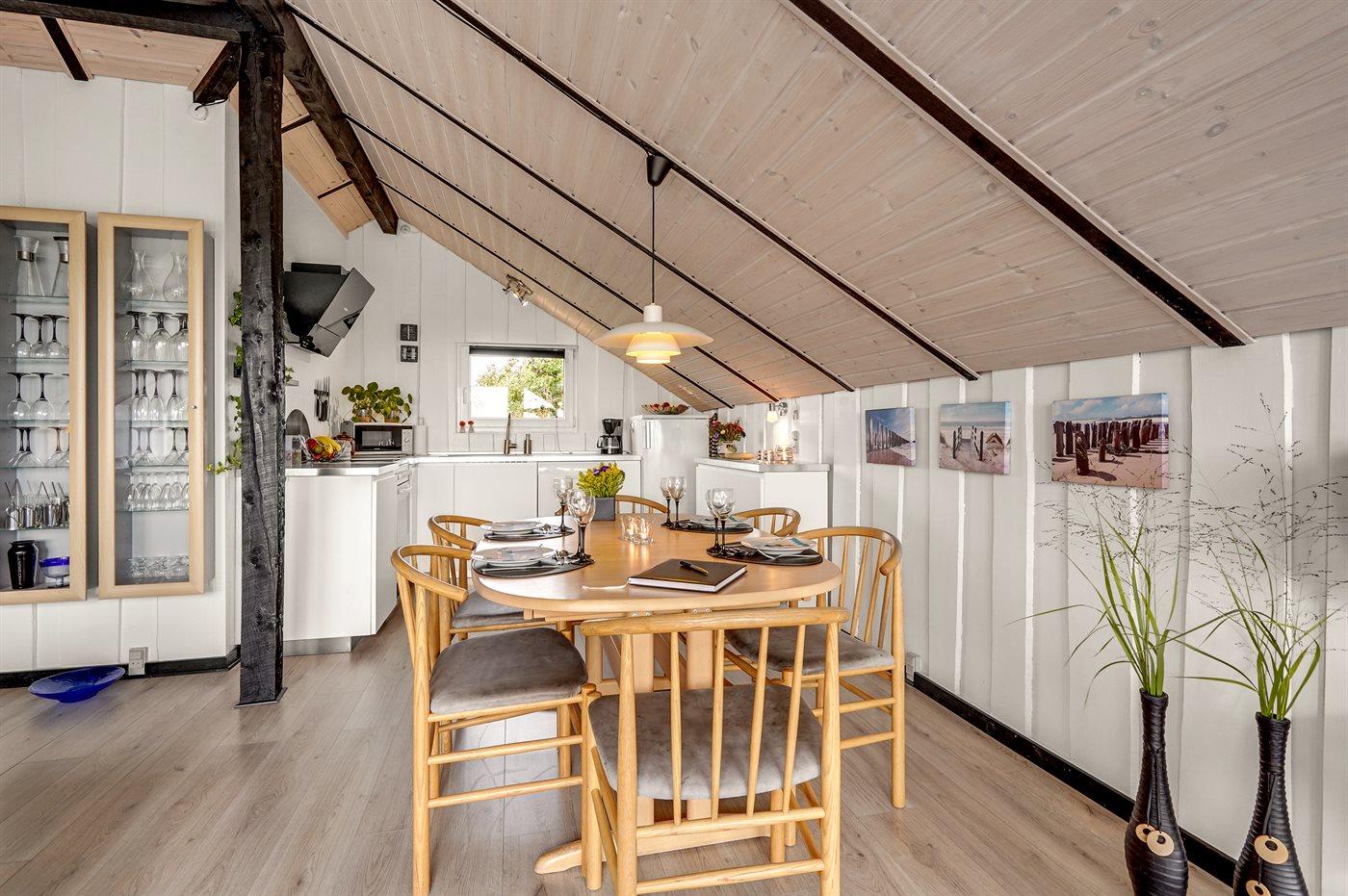 Fritidsbostaden ligger på en 952 m² stor anlagd trädgård. Avstånd till hav är 500 m. Närmeste affär ligger på ett avstånd av 300 m. Till fritidsbostaden hör 20 m² terrass.Under ljumna kvällar skapar en utomhus öppen spis en trevlig stämning. Det finns grill til förfogande. P-plats på tomten.