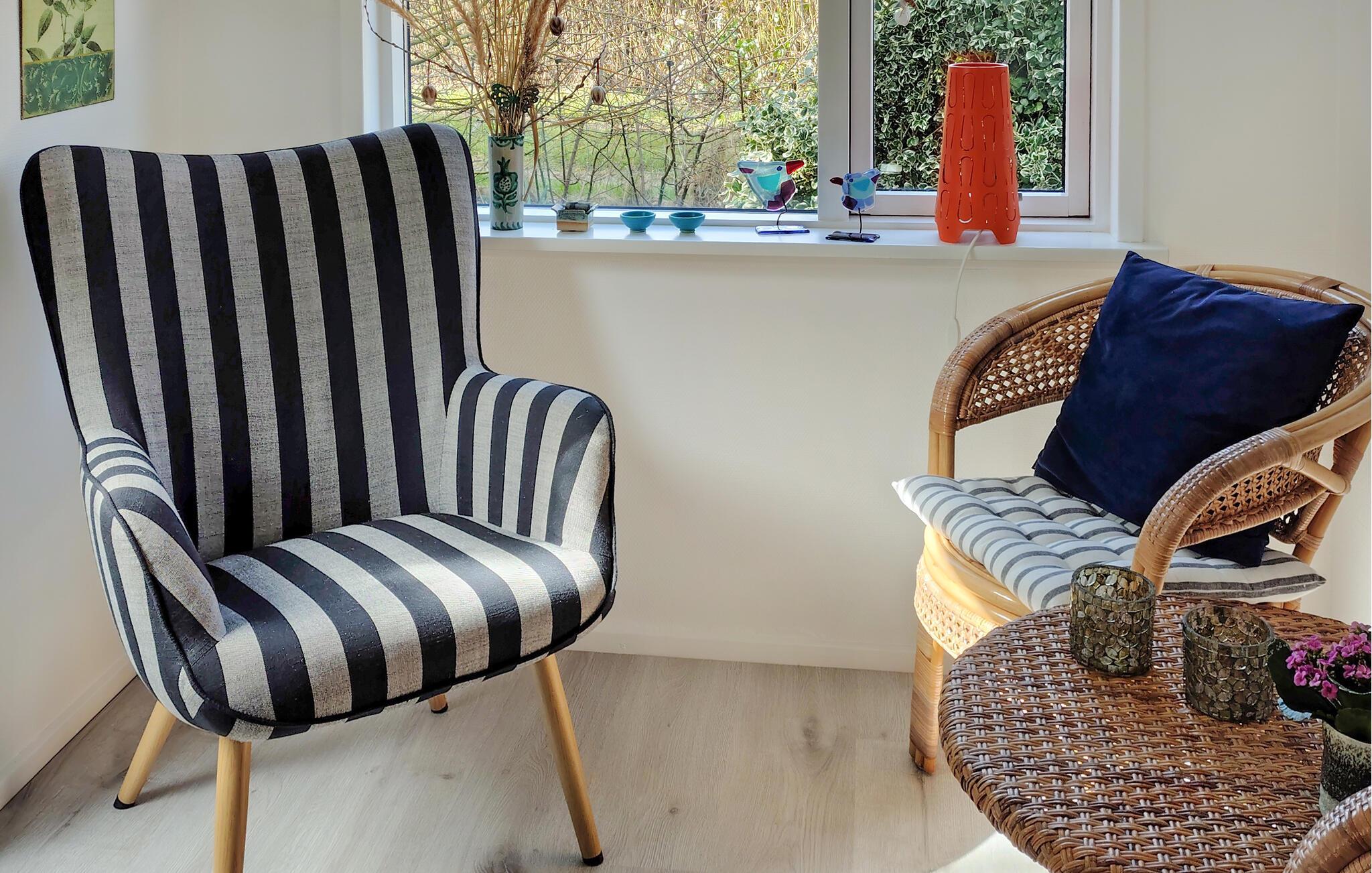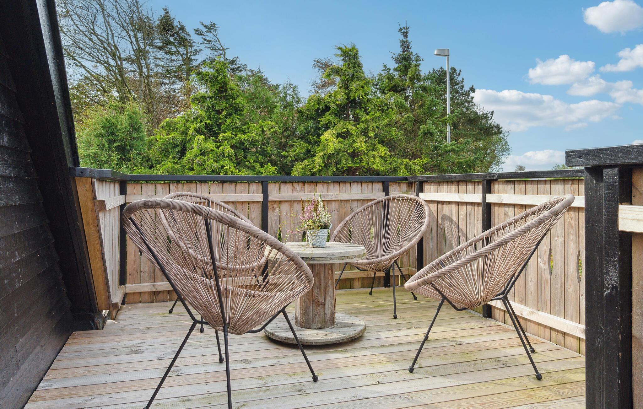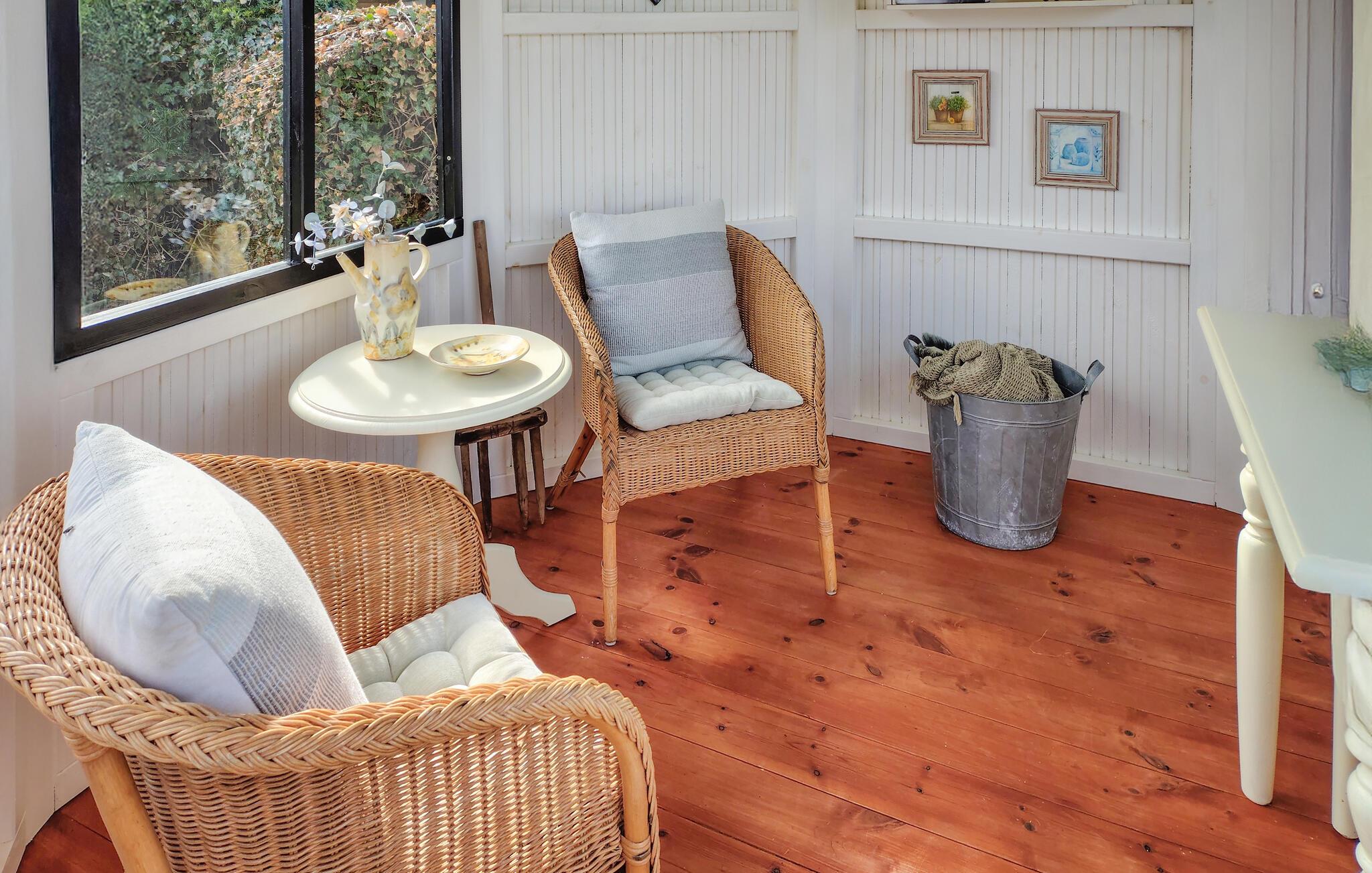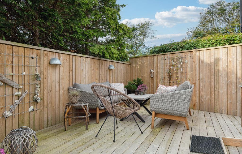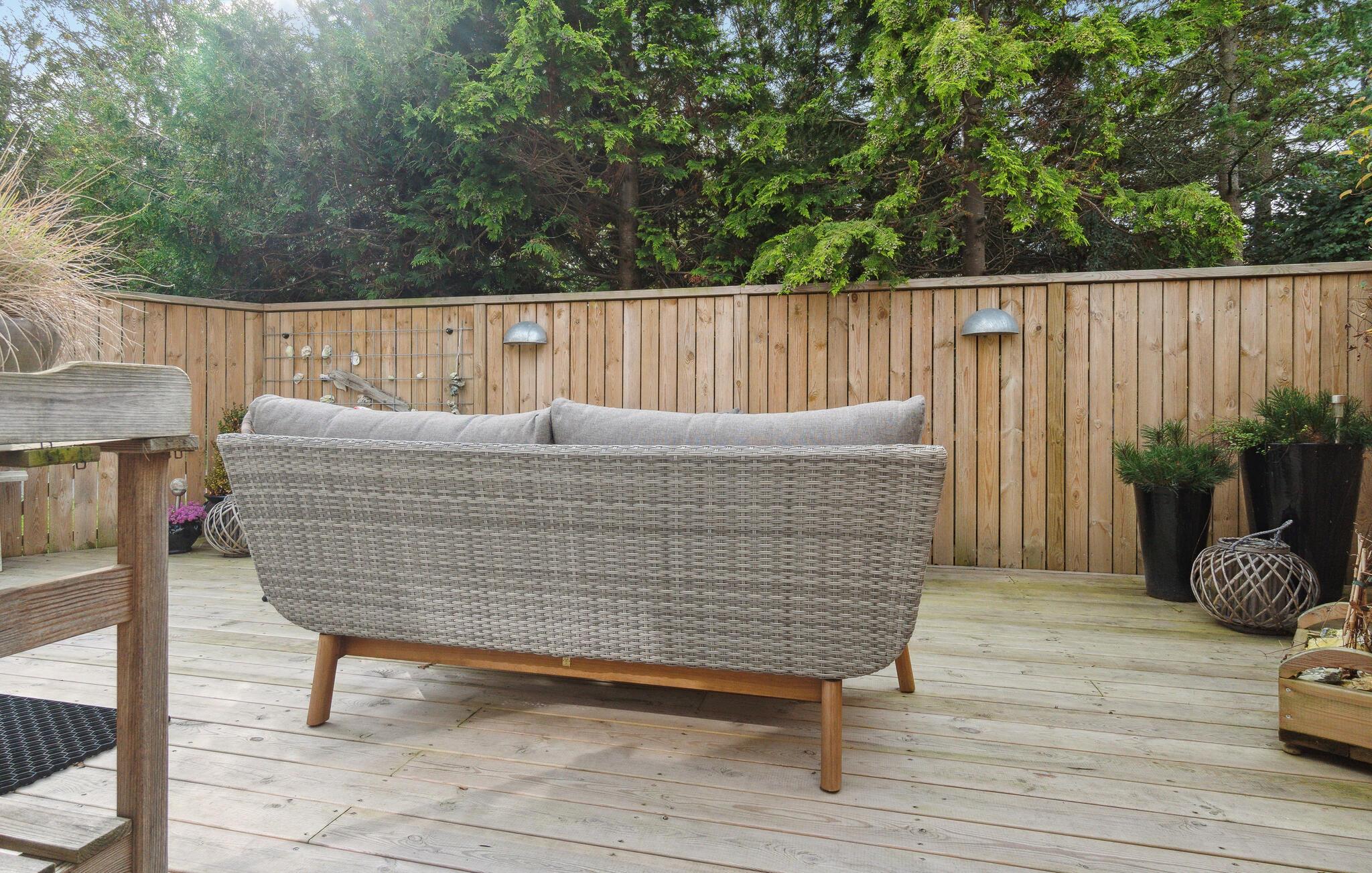 Koppla av på husets terrass i bekväma trädgårdsmöbler