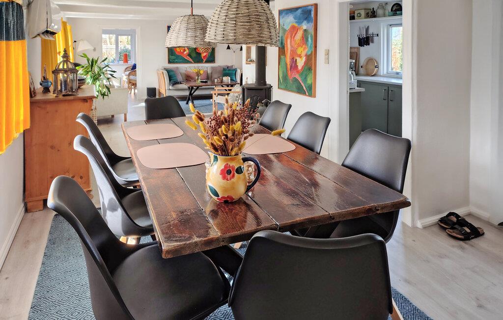 Tillbringa en härlig semester i detta inbjudande semesterhus, som är bekvämt inrett och ger den perfekta miljön för en vistelse som du kommer att minnas under lång tid framöver. En vacker utsikt över fjorden avrundar semesternöjet. Golvvärme ger mysig värme i badrummet. På kvällen kan ni mysa tillsammans vid den vedeldade kaminen och lyssna till de sprakande lågorna.