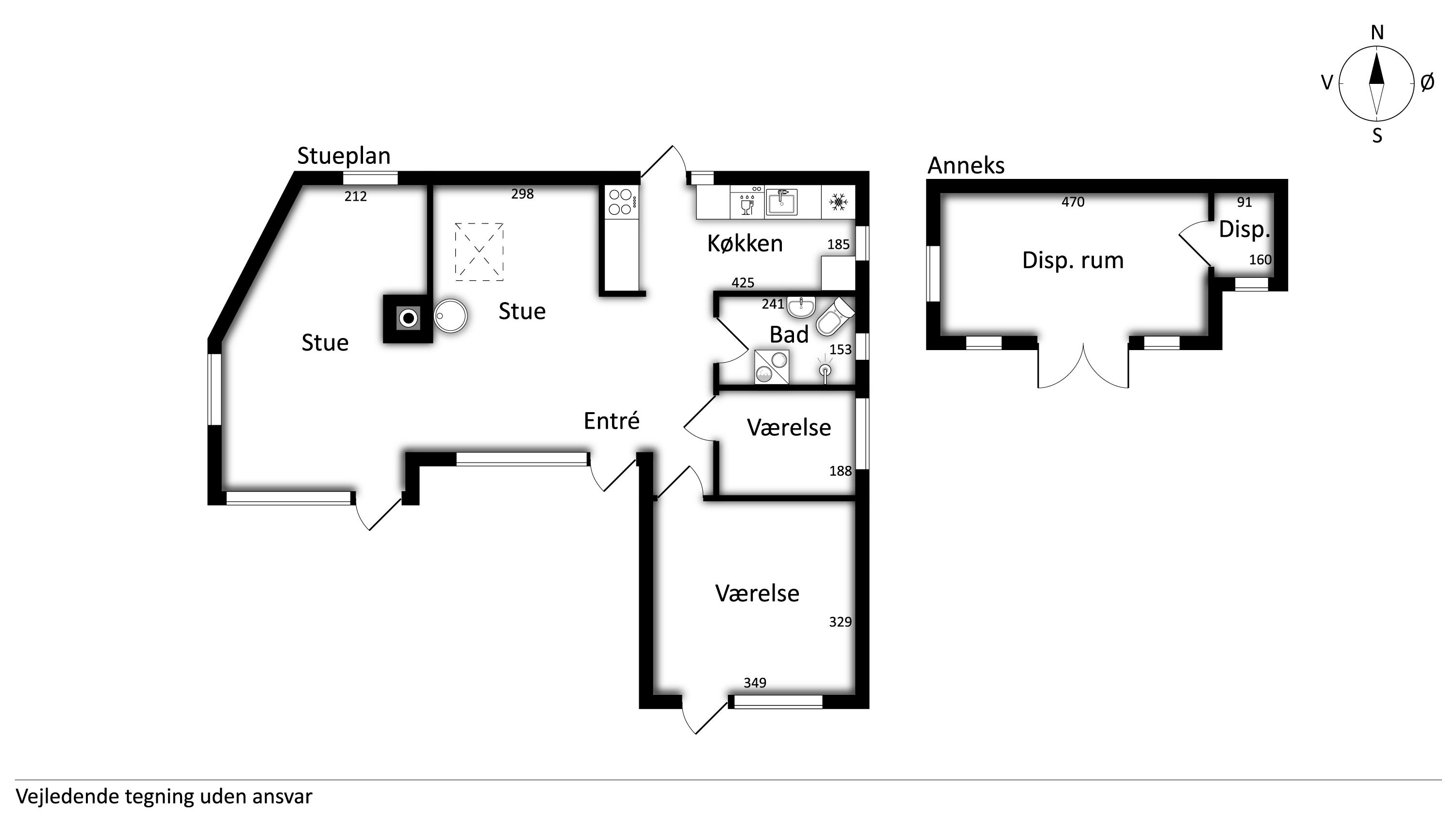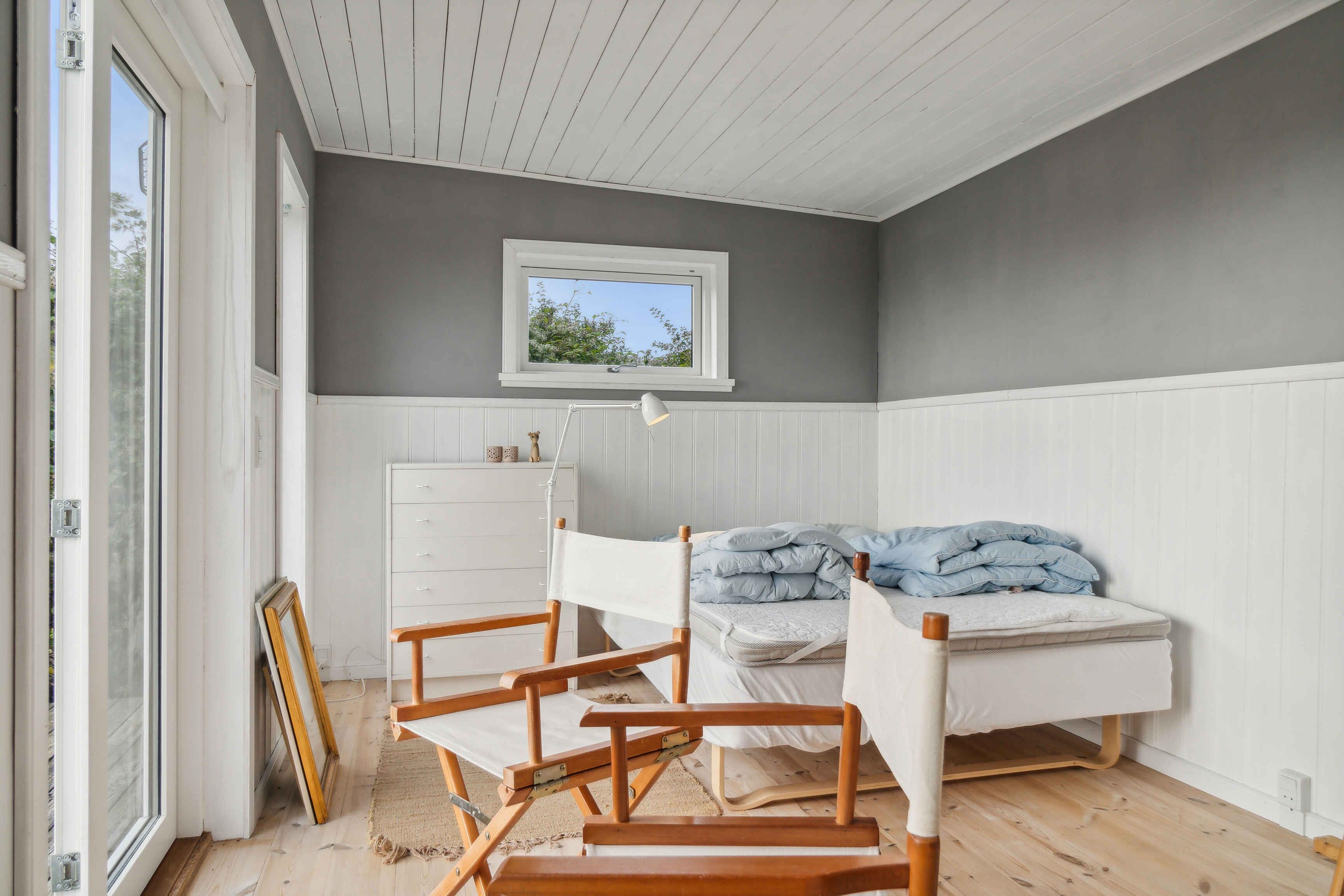This cozy, older but well-maintained holiday home of 74 m² with a view of the sea and nature offers a relaxing vacation experience with space for up to six people. The house has two bedrooms, a nook, and a lovely summer cottage atmosphere – perfect for smaller groups or families. Additionally, there is a 16 m² annex. The annex has four sleeping spaces, two folding chairs, and a small table, as well as room for luggage. There is water at the terrace. The toilet and shower are located in the main house, down a few steps. The annex is heated with an electric radiator but can only be rented from May to the end of October. With only 200 meters to the water, you can enjoy beautiful walks along the coast and the long sandy beach. The house offers a fantastic view of both the sea and the surrounding nature. With great opportunities for fishing, swimming, and kayaking, the area is ideal for those who want to enjoy the water in several ways. The scenic surroundings provide opportunities for hiking and cycling. You are close to charming towns like Assens and Fåborg, the Helnæs Peninsula with protected areas and walks in Bobakkerne, as well as beautiful manors. In the towns, you can experience old market town environments, small shops, and cozy cafés. In the town of Ebberup, 3.5 km from the house, you can buy everything at the local supermarket, and you can also charge your electric car both at the campsite 200 meters from the holiday home and in Ebberup. There are several restaurants within a radius of 500 meters to 8 km. The area around the holiday home is perfect for nature lovers – it’s the place for an adventurous vacation. Note: Not for commercial rental.