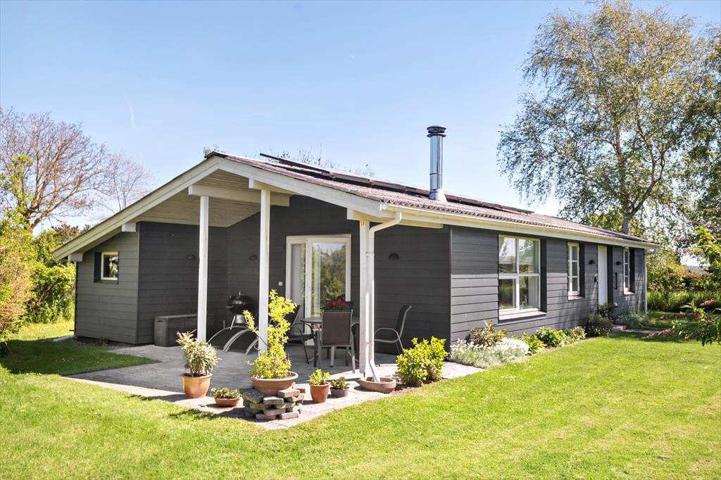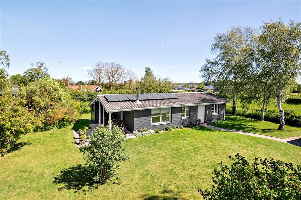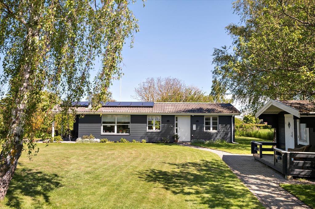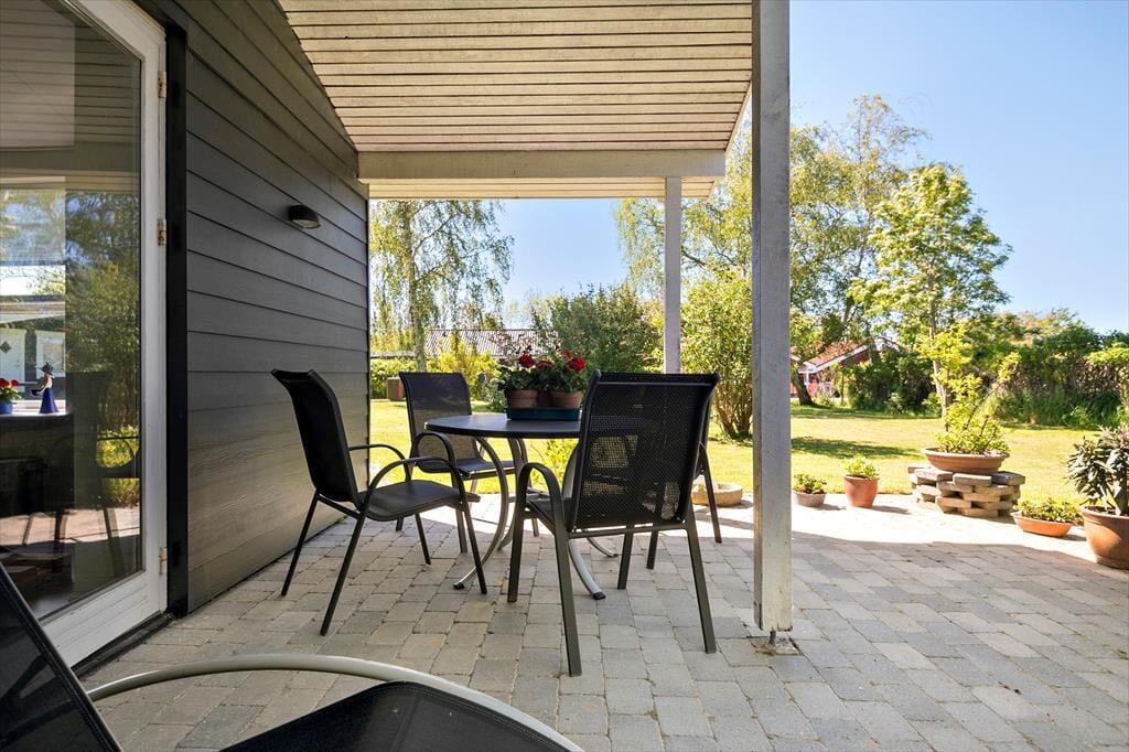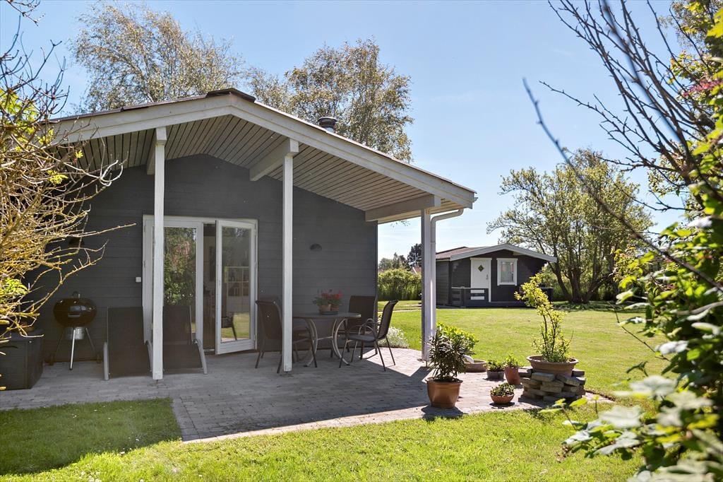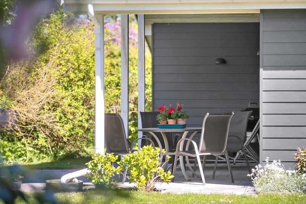 Sommerhuset er beliggende på en 1000 m2 grund med dejlig have, med flere hyggekroge. Der er en skøn delvis overdækket terrasse. Ved feriehuset er der havemøbler, grill, parasol og liggestole.