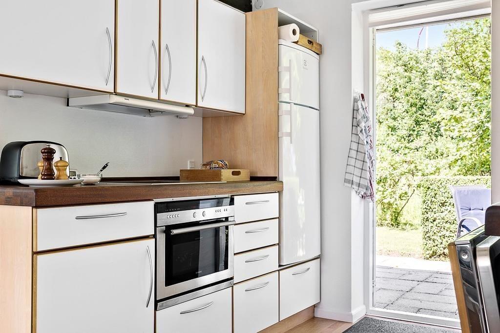 Feriehuset er indrettet med kombineret køkken og opholdsstue. Køkken med køleskab, fryser, komfur, mikroovn og opvaskemaskine. Lys opholdsstuen med brændeovn og tv med danske kanaler. Badeværelse med bruseniche, toilet, håndvask, vaskemaskine og gulvvarme. 2. soverum. 1 med dobbeltseng og 1 med 1 DBS. Huset opvarmes med brændeovn, elvarme og varmepumpe som også indeholder køl.