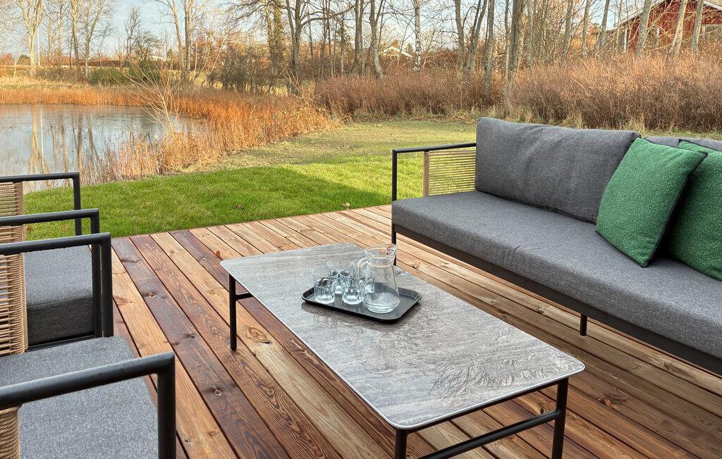 Gå ut på den skyddade innergården i trä och hitta din favoritplats utomhus. Tillbringa avkopplande timmar i loungemöblerna och njut av den fria utsikten över den lilla sjön och det omgivande landskapet. Dra nytta av det lugna läget för avkopplande kvällar och vilsamma timmar i det fria.