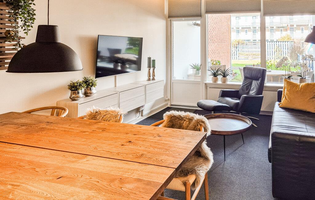 Modern rymlig semesterlägenhet med elegant och harmonisk inredning nära stranden.