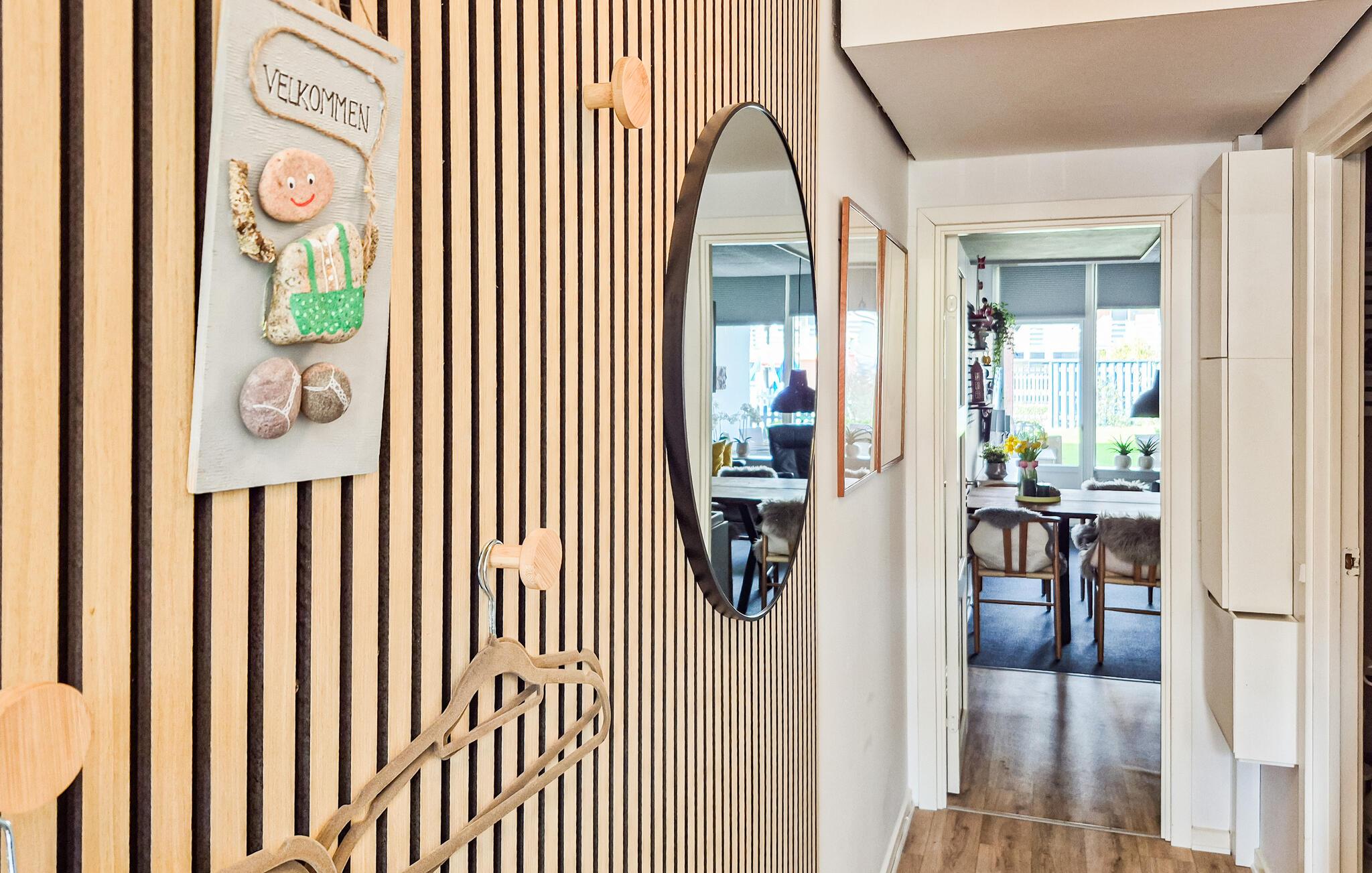 Om du vill tillbringa din semester i första raden till vattnet på en barnvänlig strand och ha faciliteter som går utöver det vanliga, då är detta semesterhus på Feriecenter Klinten det rätta valet.