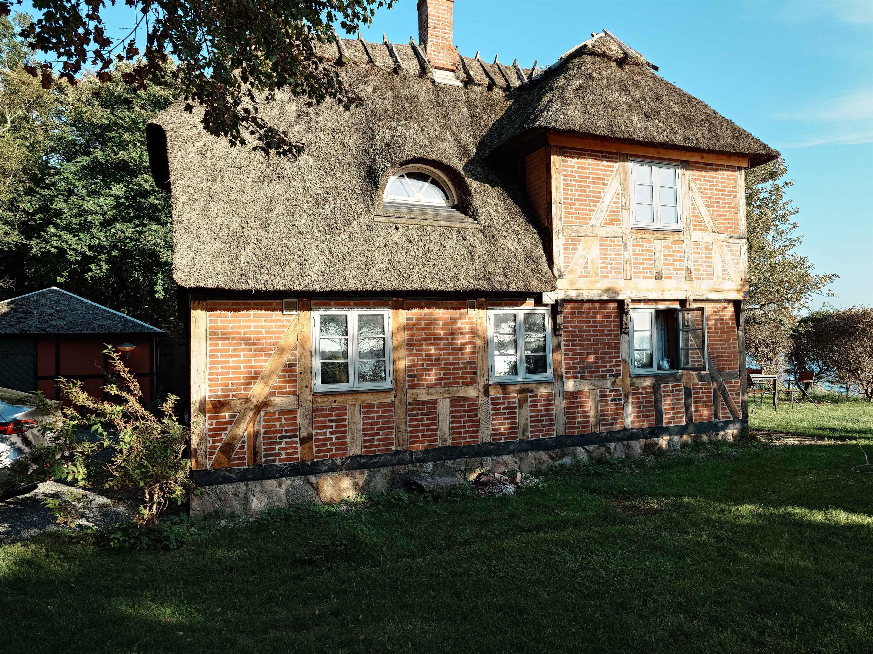 If you dream of a holiday filled with peace, history and nature right outside your door, this holiday home is a truly special place to stay. Here, you will find character, tranquillity and closeness to the water – perfect for those looking for a getaway beyond the ordinary. This thatched half-timbered house from 1770 offers 72 m², 3 bedrooms and space for 6 guests. The focus here is not on luxury, but on atmosphere, togetherness and a holiday experience full of charm in authentic surroundings. Inside, you are welcomed by a living room in traditional farmhouse style, with an atmosphere that almost feels like a small open-air museum. The house has kept its distinctive character and history, which is exactly what makes a stay here so different and memorable. At the same time, the practical comforts are in place. There is underfloor heating, a heat pump, fibre internet and always hot water thanks to an instant water heating system. The exterior has recently been carefully restored, so the historic setting is ready for many new holiday stays. The location is truly something special. The house stands alone in a protected area with no neighbours, where silence, light and nature are allowed to take centre stage. Here, you can really feel the pace slow down and holiday calm settle in. The water is close by and quickly becomes a natural focal point of the day. Start the morning with a peaceful walk, take a refreshing swim, or end the day with the evening sun and views across the coast. The area is also an excellent choice for anglers, as the coastline is known as an attractive sea trout hotspot. Here, it is easy to combine relaxation with active hours spent in nature. This is the holiday home for those who value location, peace and atmosphere over polished perfection and predictability. A place that makes room for togetherness, nature experiences and a holiday with real substance.