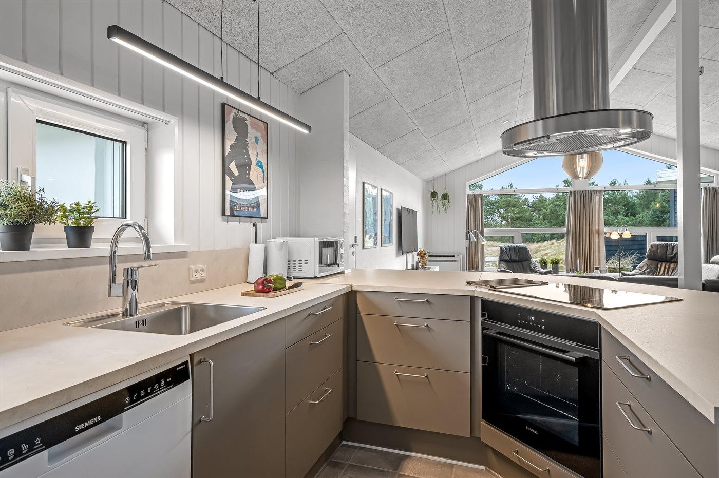 Köket är utrustad med 1 kylskåp Det finns 4 keramiska spishällar, varmluftsugn, mikrovågsugn samt diskmaskin.