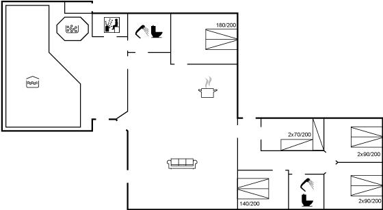 Semesterstugan lämpar sig för 10 personer. Fritidsbostaden är på 192 m² och är byggd i 1992. År 2026 genomgick fritidsbostaden en delvis renovering. Det är tillåtet at ta med 1 hus-djur. Fritidsbostaden är utrustad med energieffektiv värmepump. Fritidsbostaden har tvättmaskine. Torktumlare. Fryskapacitet på 105 liter. Det finns dessutom 1 vedeldad kamin.