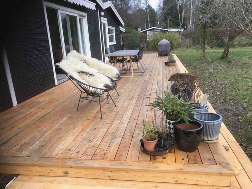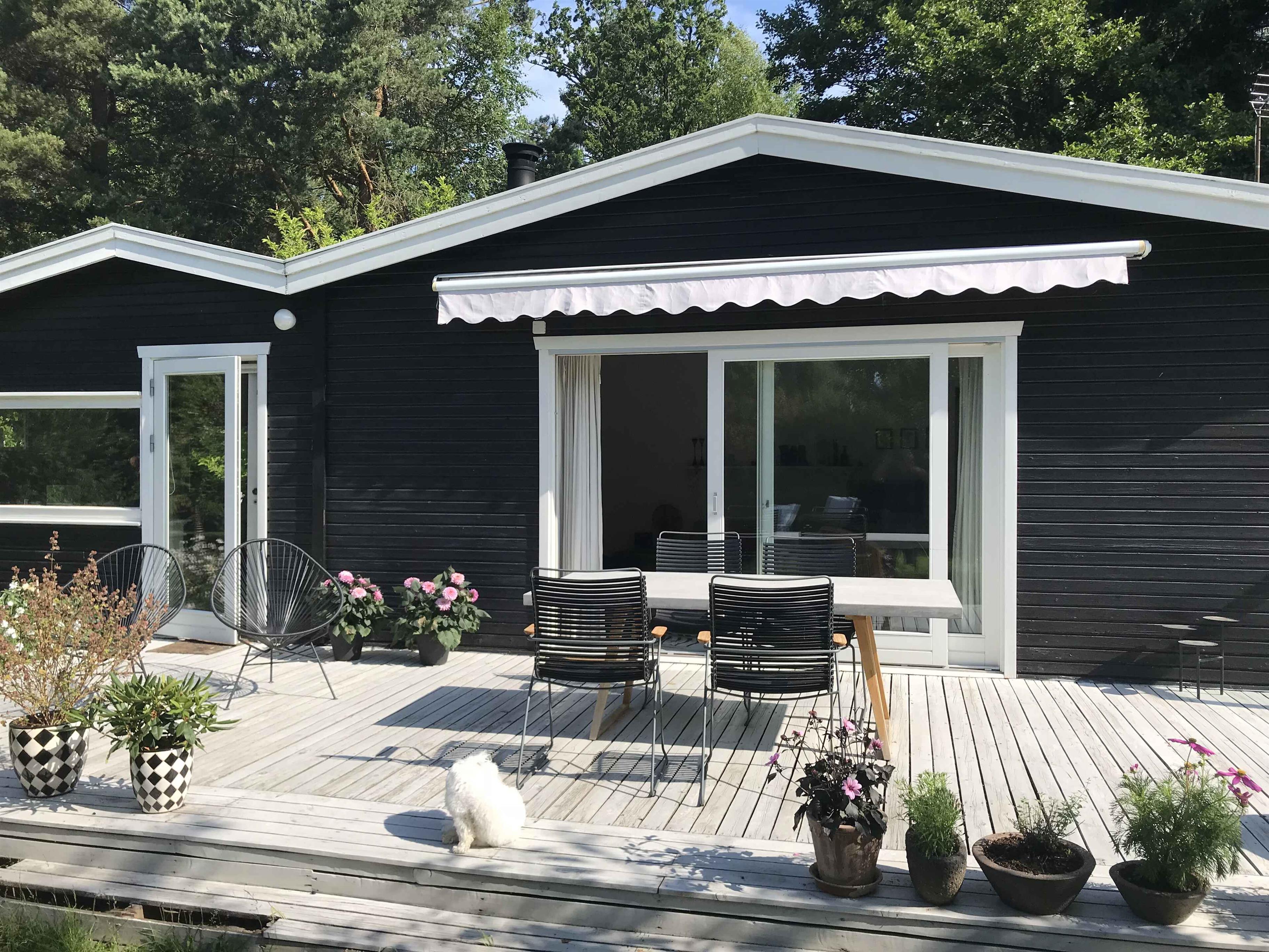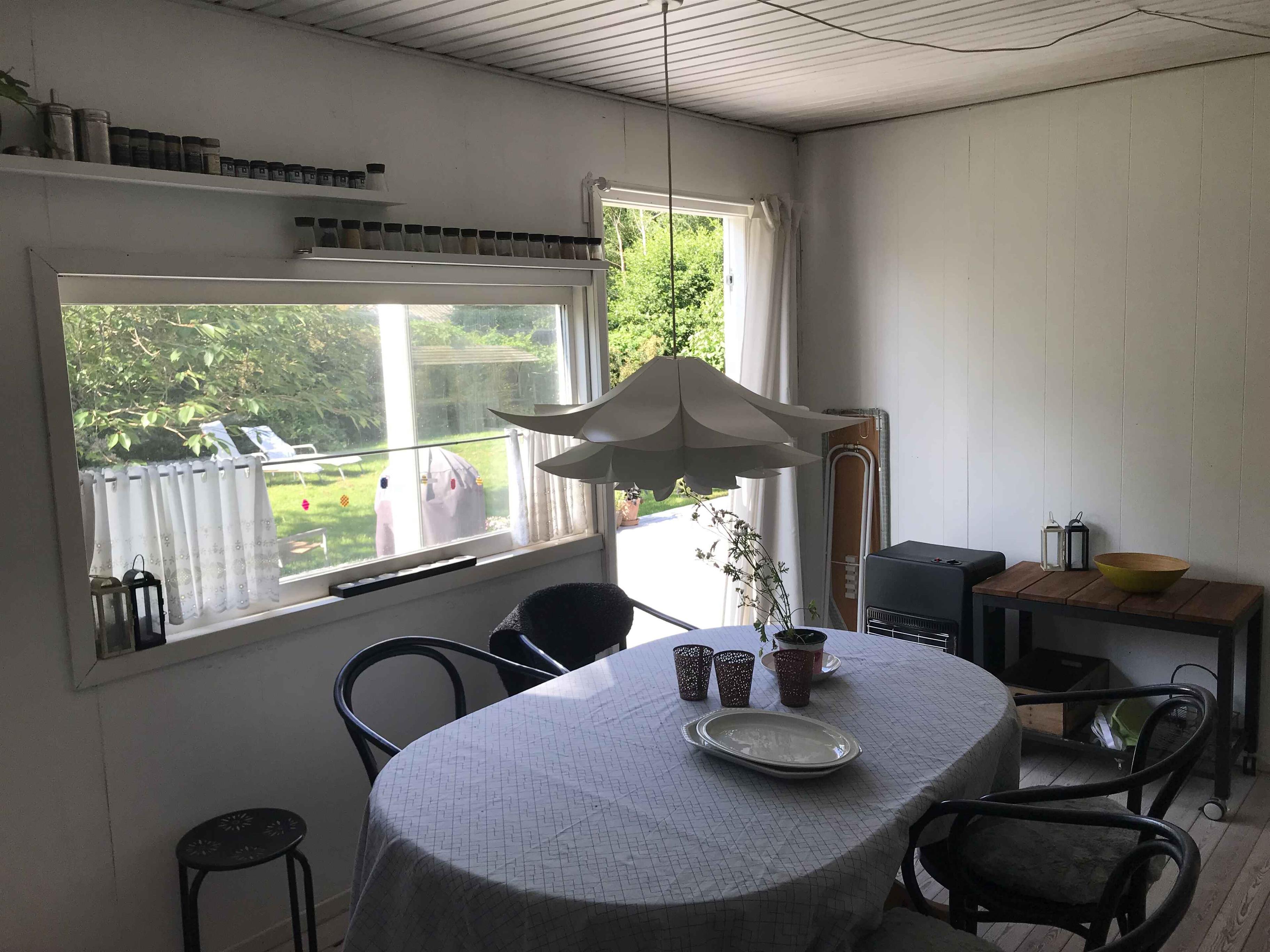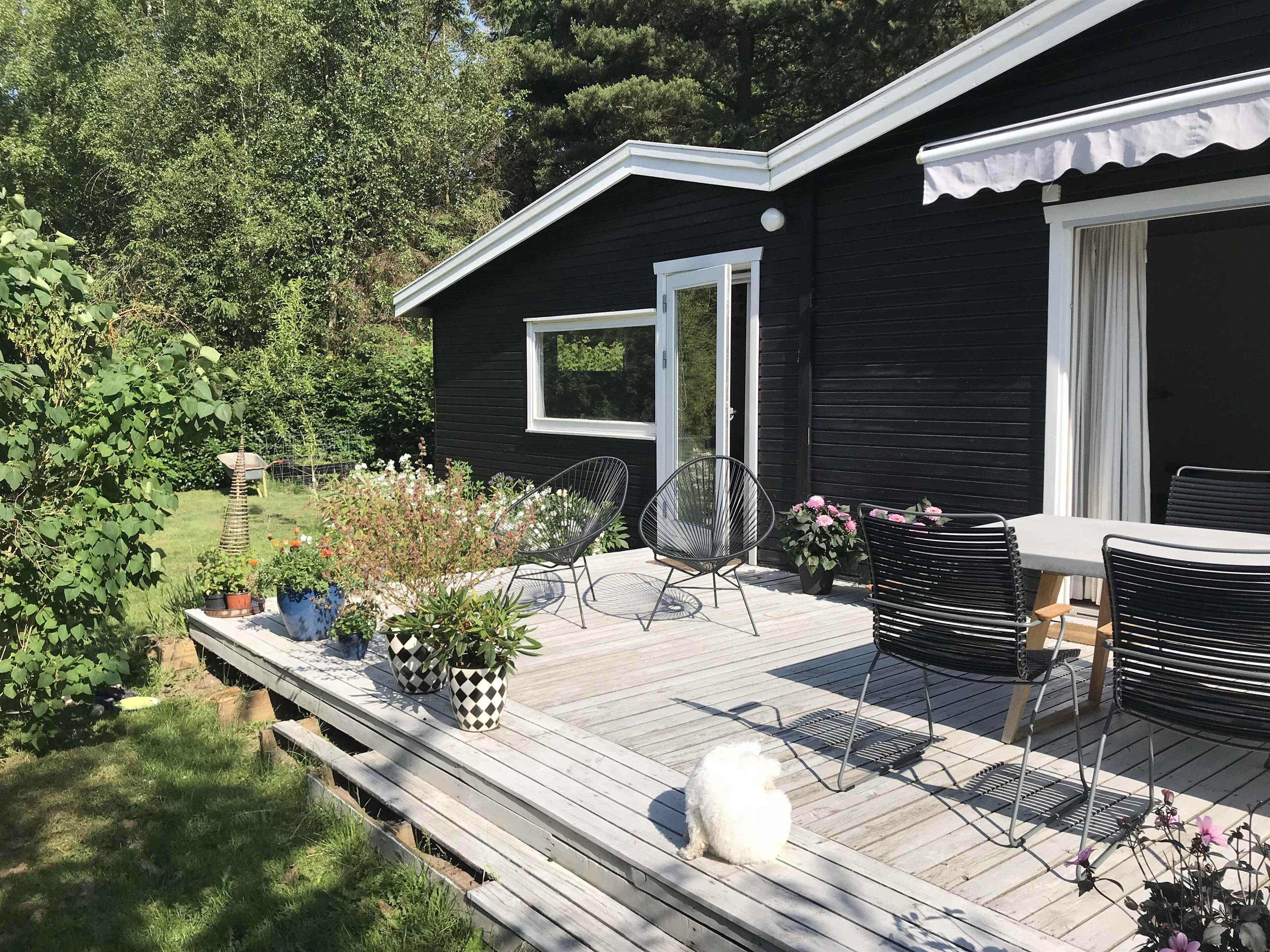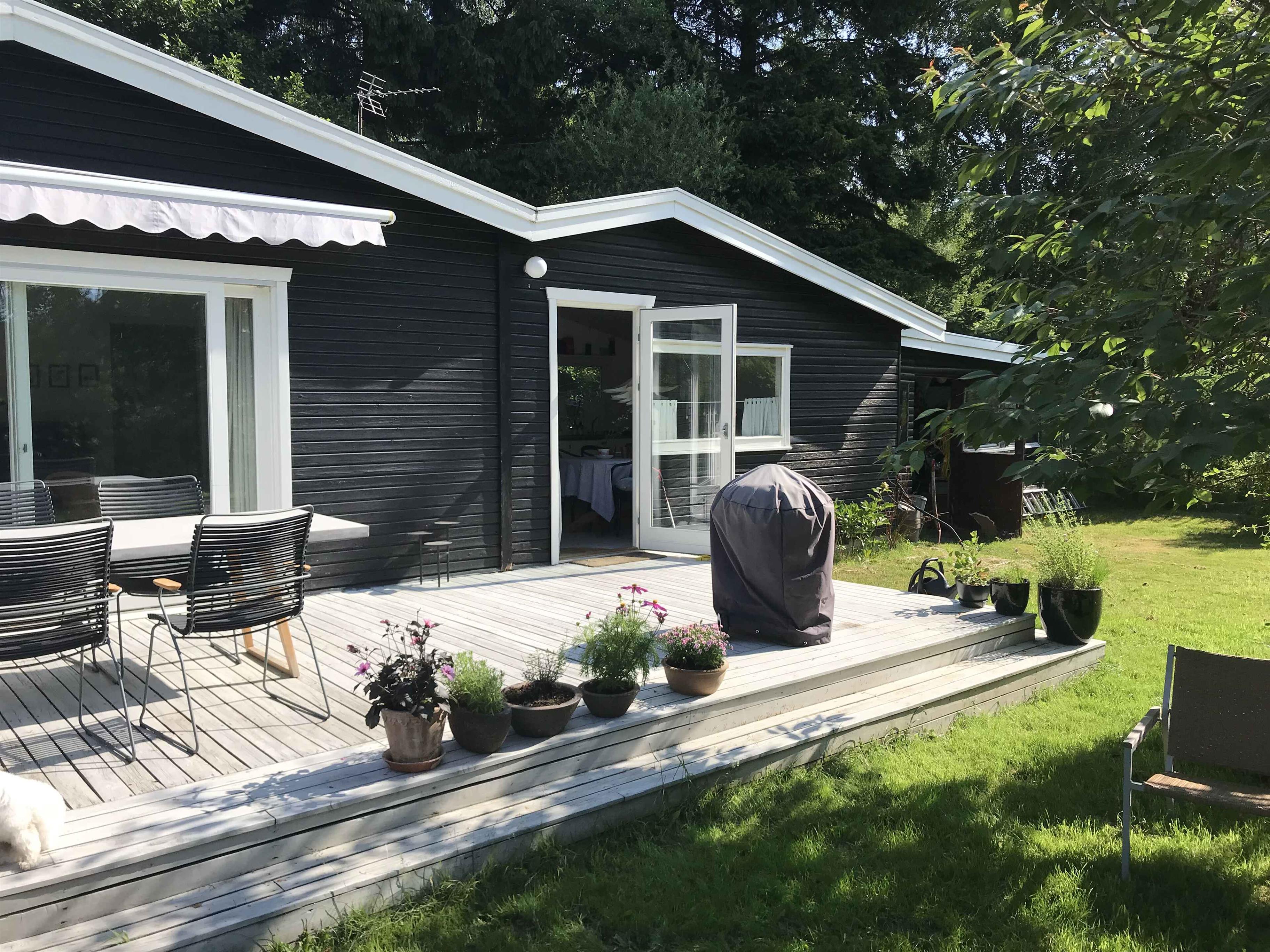 The living room is cozily furnished, featuring a wood-burning stove and double sliding doors that open onto a lovely large terrace with garden furniture, plant pots and a barbecue. The terrace can be partially covered with an awning. From here you have a pleasant view of the garden. There is 1 bedroom with a double bed, and the living room offers the possibility to make up a bed for two people. There is also a guest bed. The kitchen is well equipped and has everything you need if you want to cook your own meals. However, there is a restaurant only 400 metres away if you prefer dining out. Krudtværksmuseet, Frederiksværk Harbour, Asserbo Golf Club and Grønnehavegård Visiting Farm are possible excursion destinations near the holiday home. Note: Not for commercial rental.
