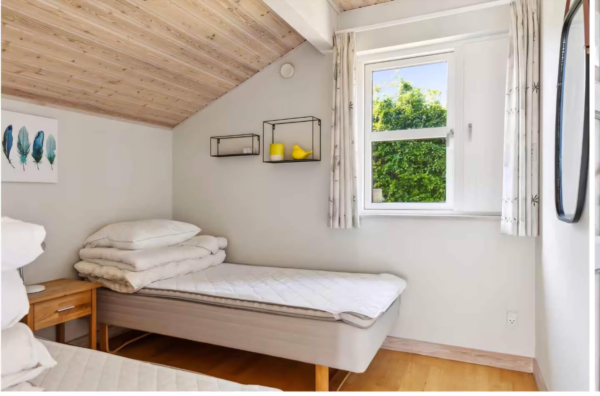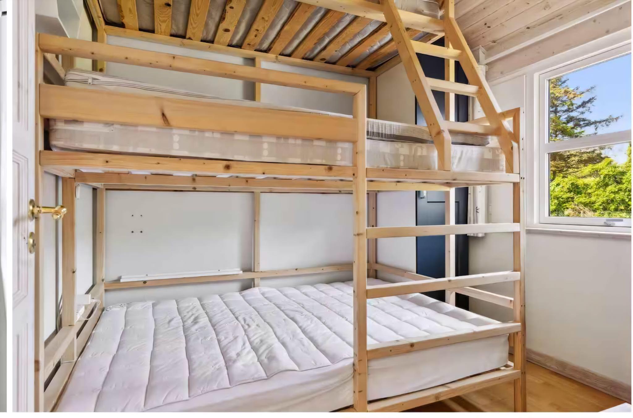 This 116 m² holiday home sleeps eight people in three bedrooms. One room has three bunk beds, ideal for children. There are two bathrooms, one of which contains both a spa and a sauna. The house is from 2005 and equipped with underfloor heating, so it can be used all year round. The heat pump was replaced in 2025, which is why the house is extremely energy efficient and you can expect low heating costs. The spacious garden is designed for play and relaxation. It offers a trampoline, large grill, and a shelter where you can spend the night listening to the sound of the sea. A small path leads directly through the garden to the beach, just 300 meters away. The area is known for its calm surroundings close to the coast. The shallow beach is child-friendly, perfect for swimming and long walks. There are also great cycling and hiking trails that allow you to explore the landscape at your own pace. Nearby you’ll find small harbors, cafés, and farm shops offering local products and freshly caught fish. In summer the area is lively, while in the off-season it offers peace and wide-open views. A functional holiday home with space for togetherness, relaxation, and activities – the ideal base for a seaside holiday.