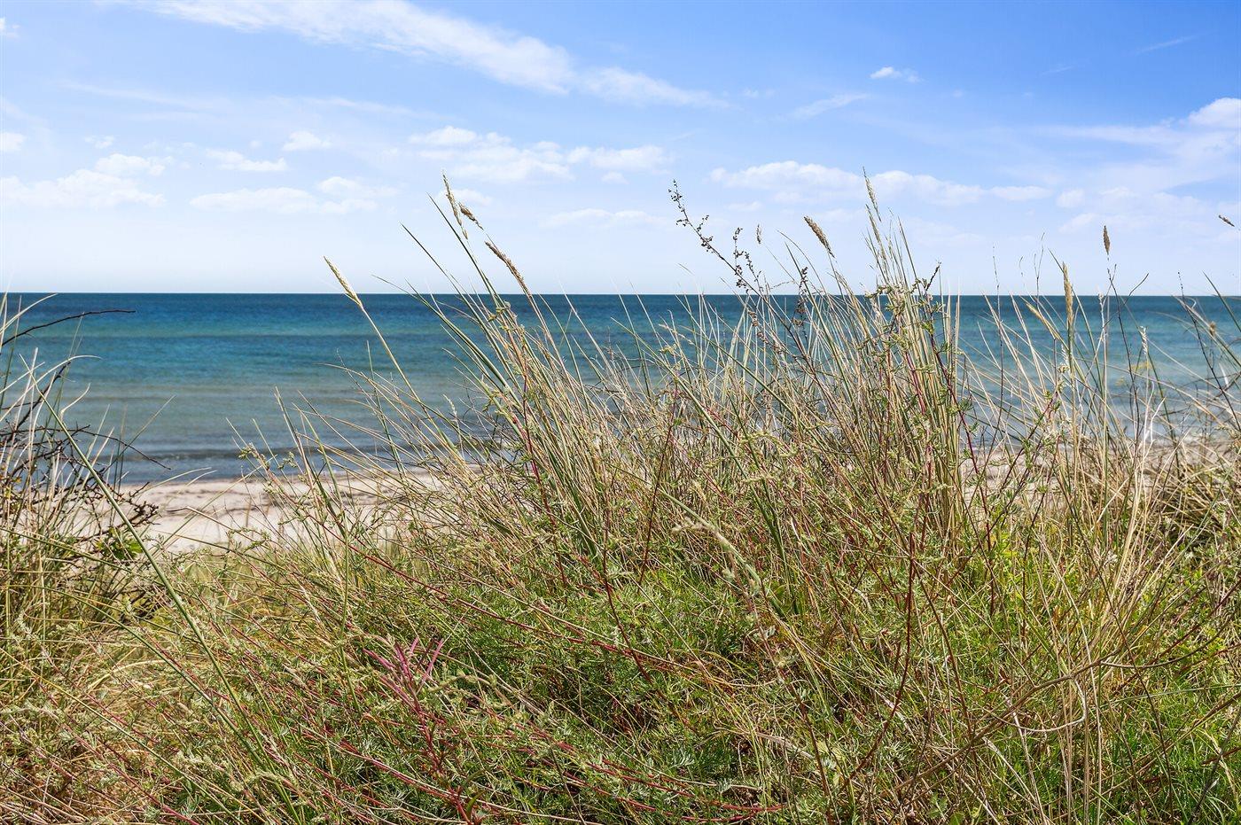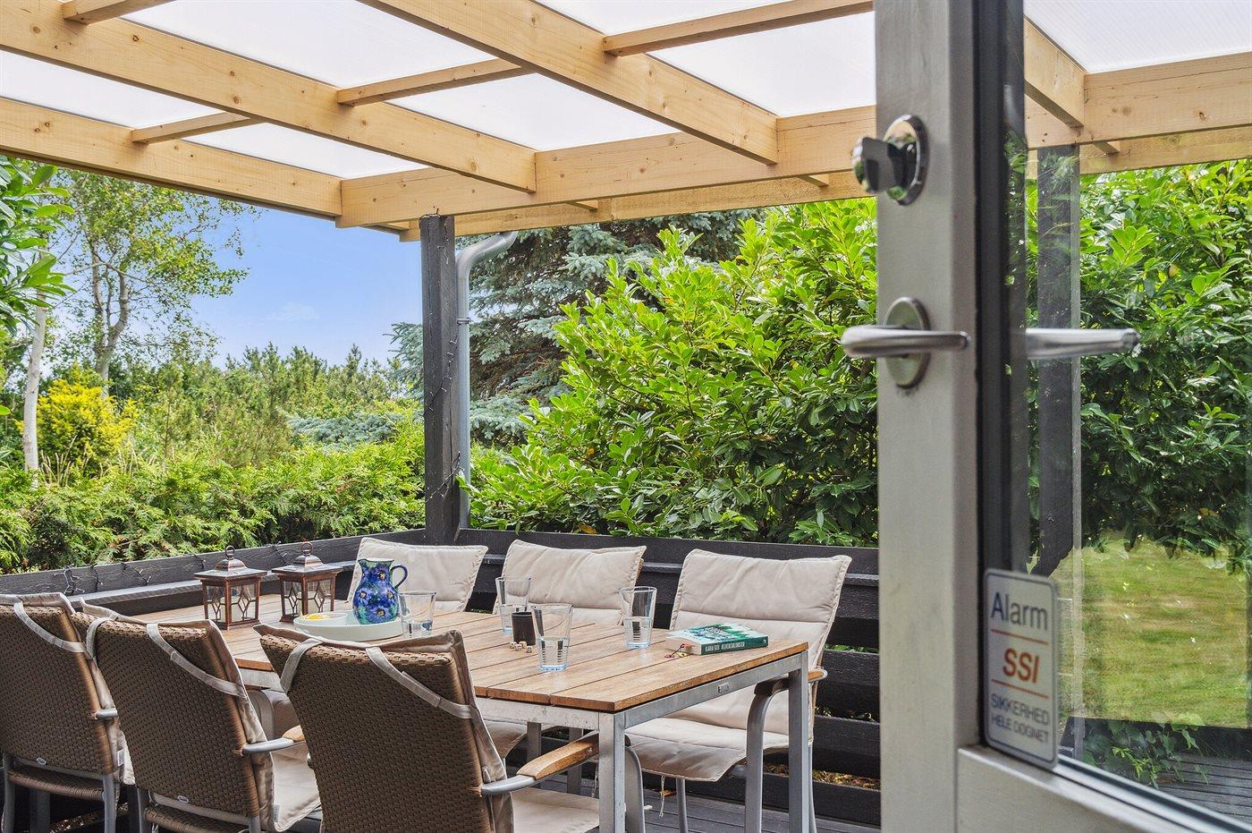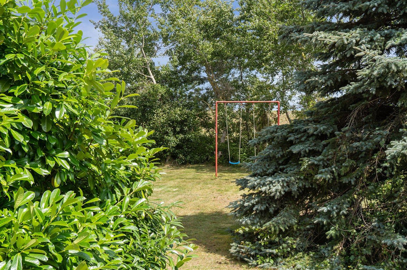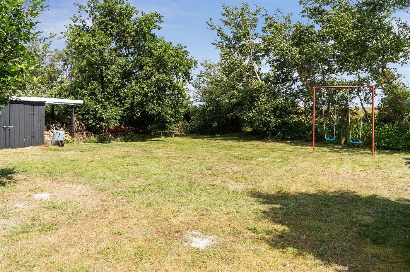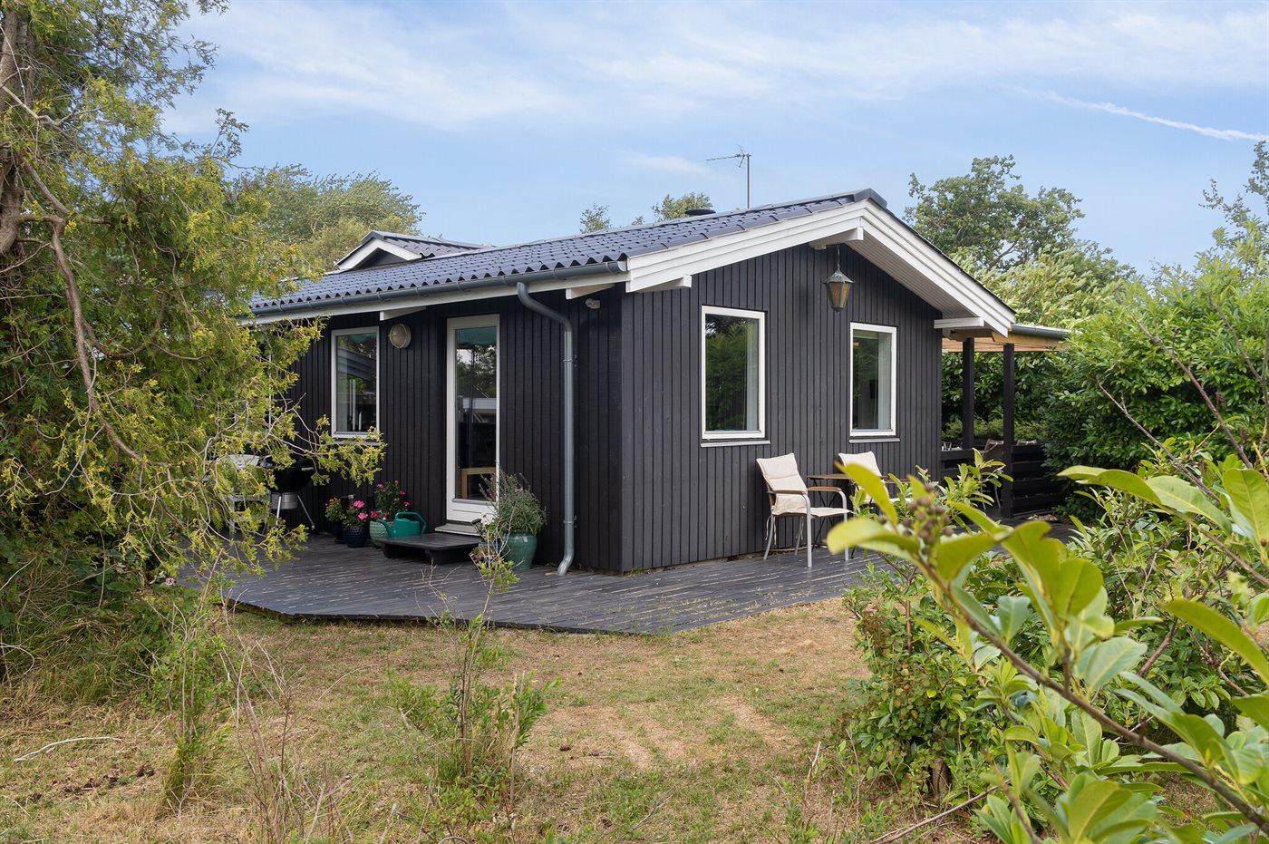 Fritidsbostaden ligger på en 1021 m² stor anlagd trädgård. Avstånd till hav är 10 m. Närmeste affär ligger på ett avstånd av 5000 m. Till fritidsbostaden hör 20 m² terrass. Dessutom finns det 14 m² övertäckt terrass. Gunga. Det finns grill til förfogande. P-plats på tomten.