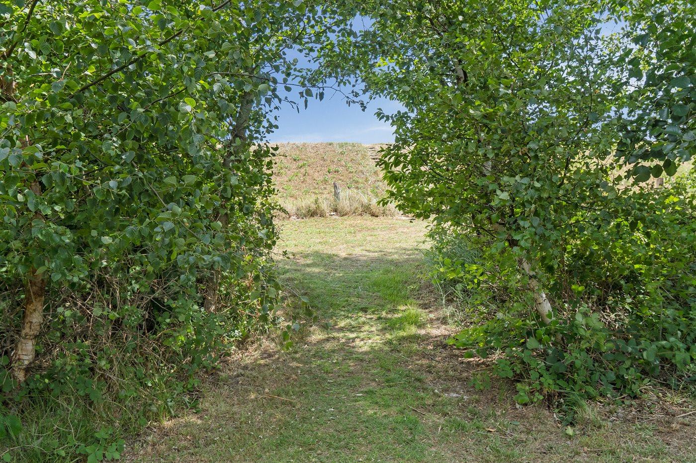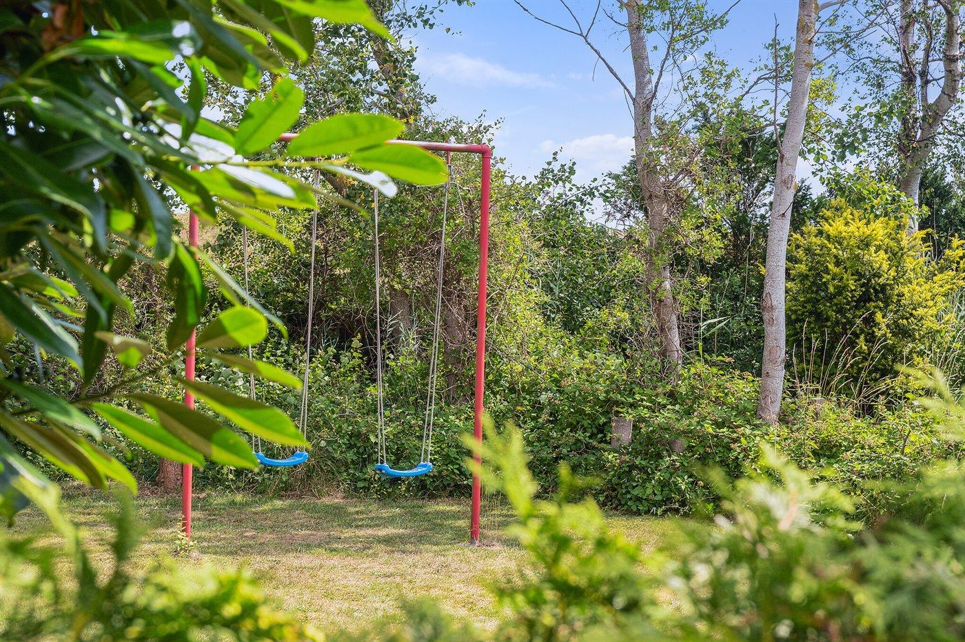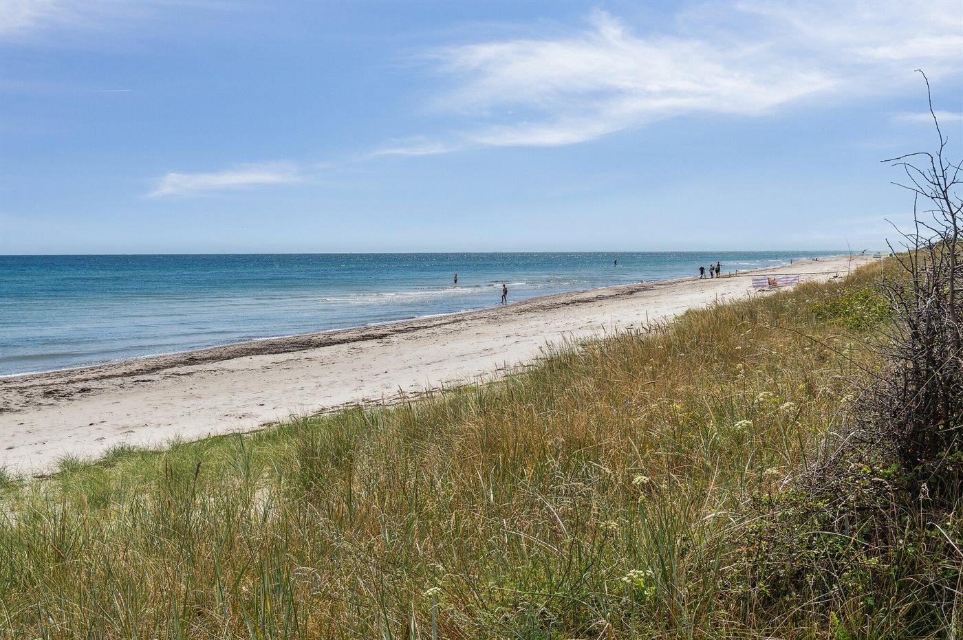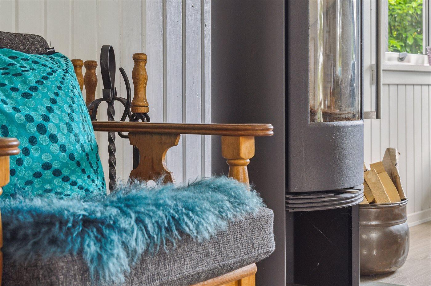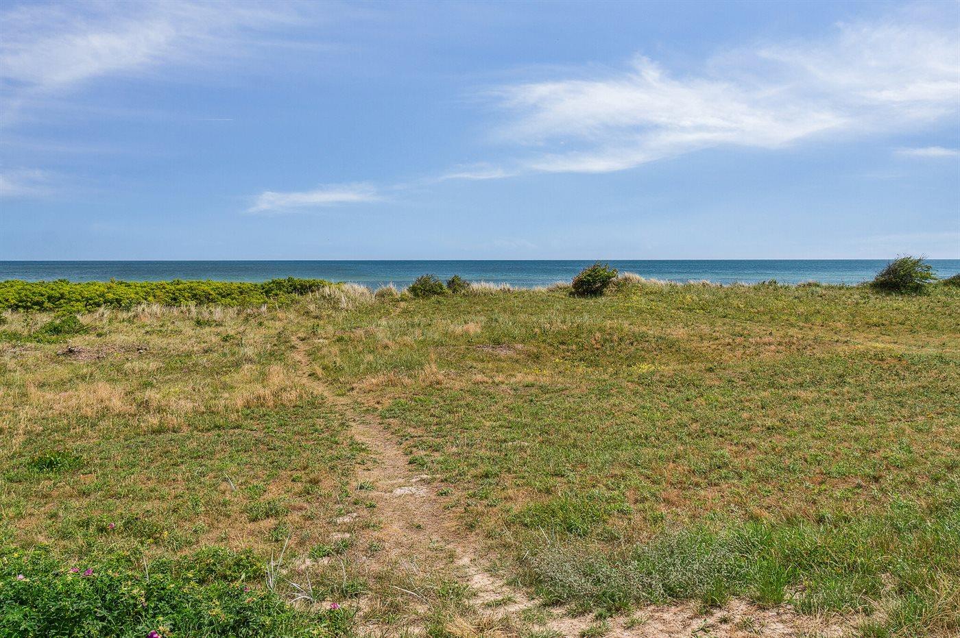 Fritidsbostaden ligger på en 1021 m² stor anlagd trädgård. Avstånd till hav är 10 m. Närmeste affär ligger på ett avstånd av 5000 m. Till fritidsbostaden hör 20 m² terrass. Dessutom finns det 14 m² övertäckt terrass. Gunga. Det finns grill til förfogande. P-plats på tomten.